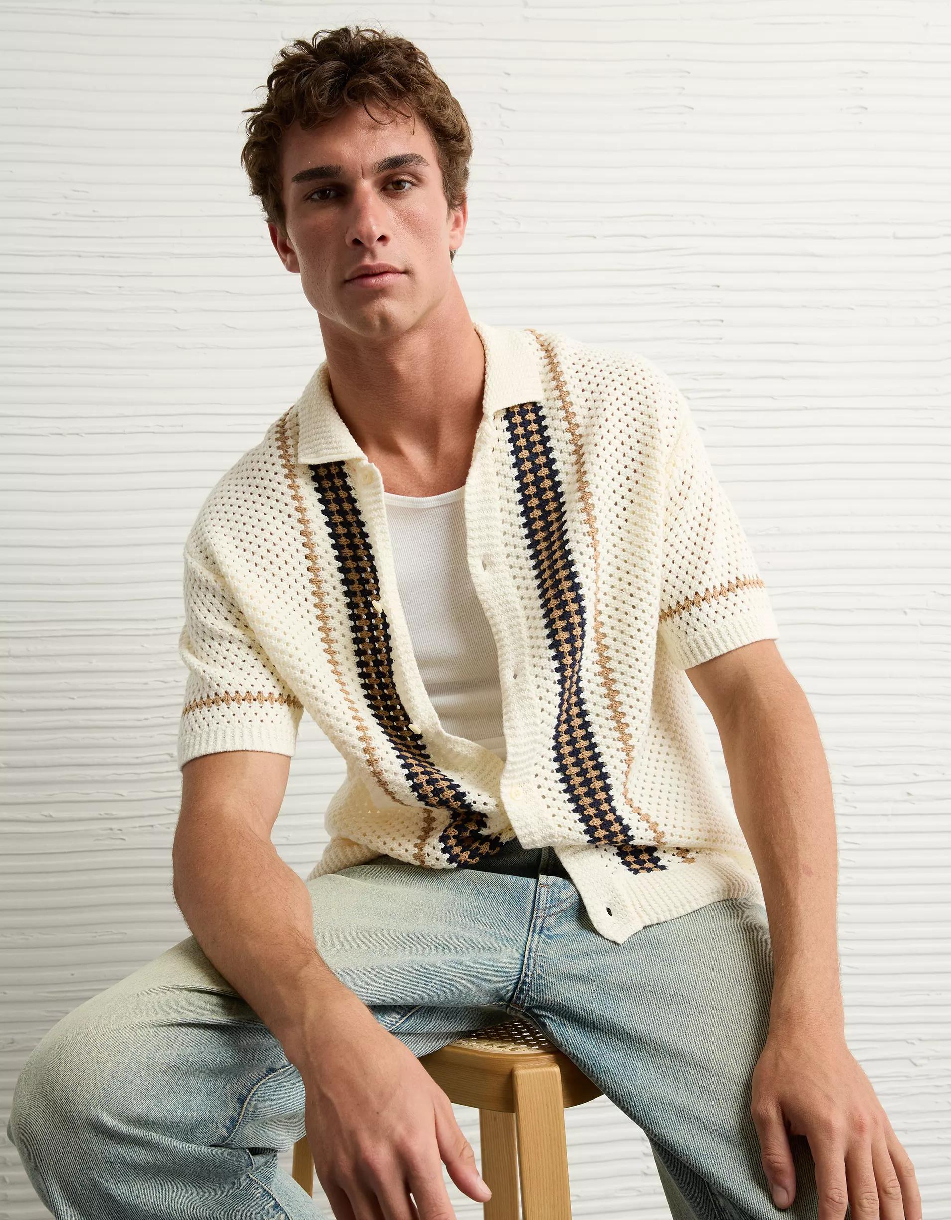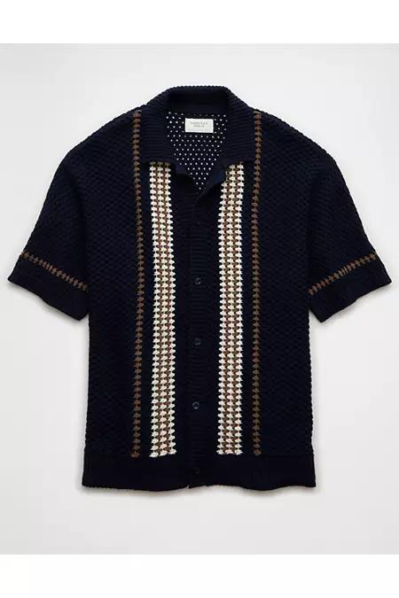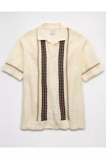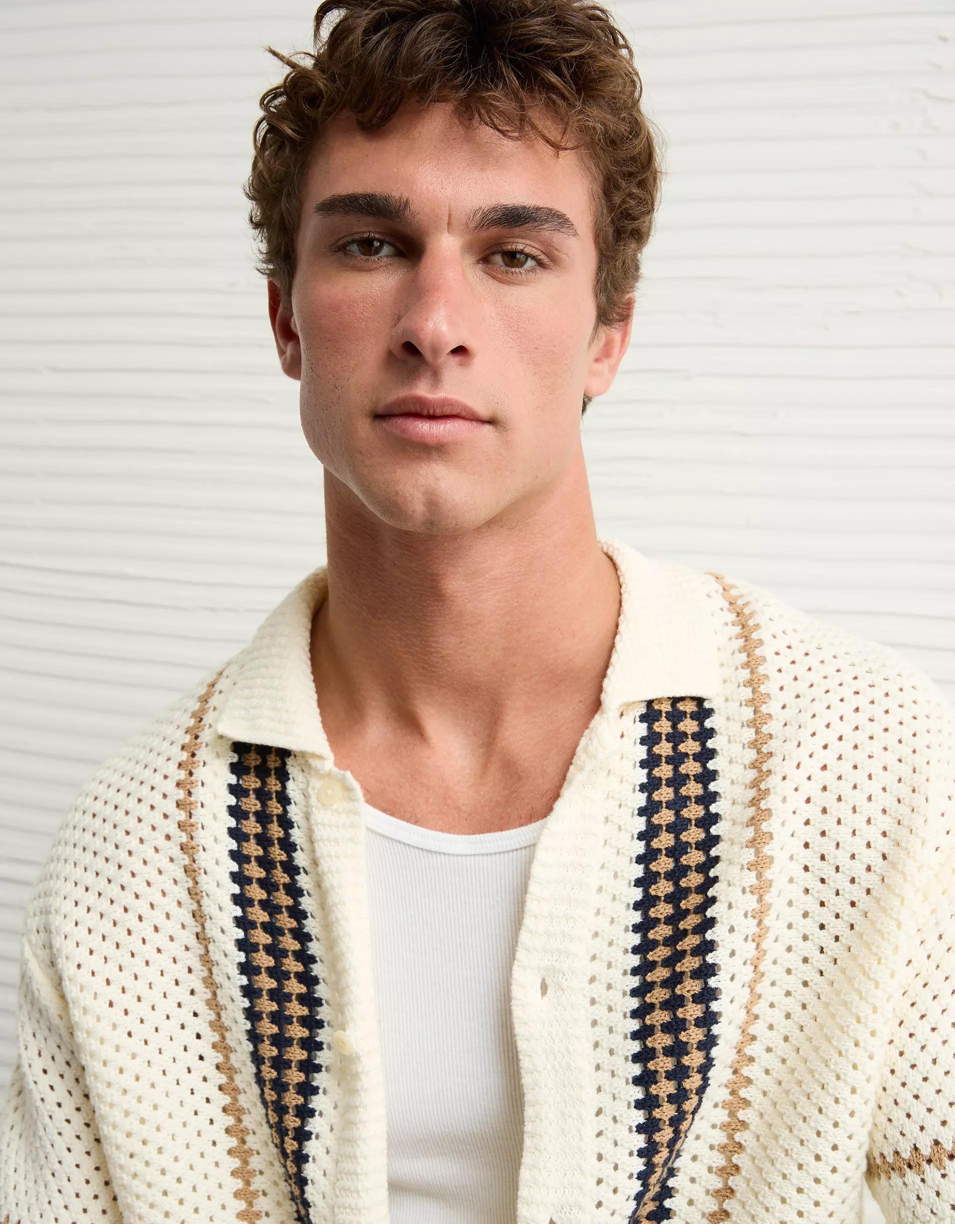AE Weekend Crochet Button-Up Sweater Polo Shirt