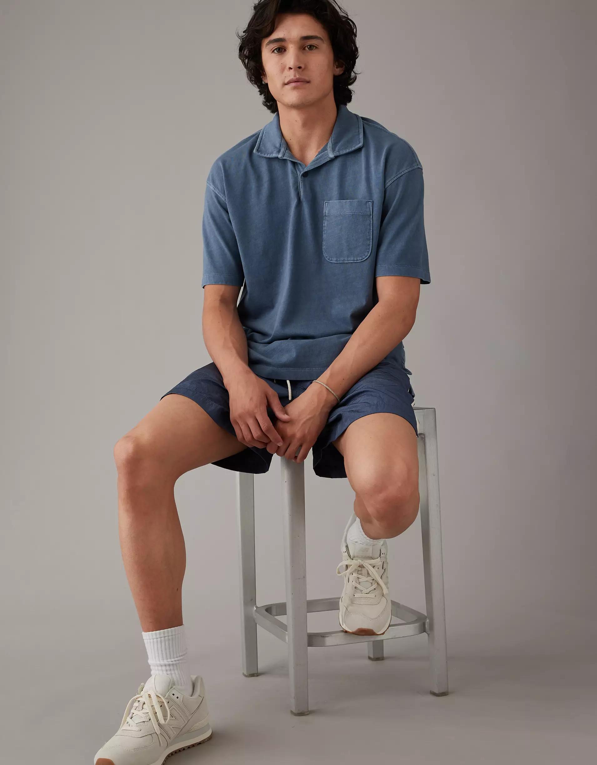 AE Weekend Washed Button-Up Sweater Polo Shirt Men's