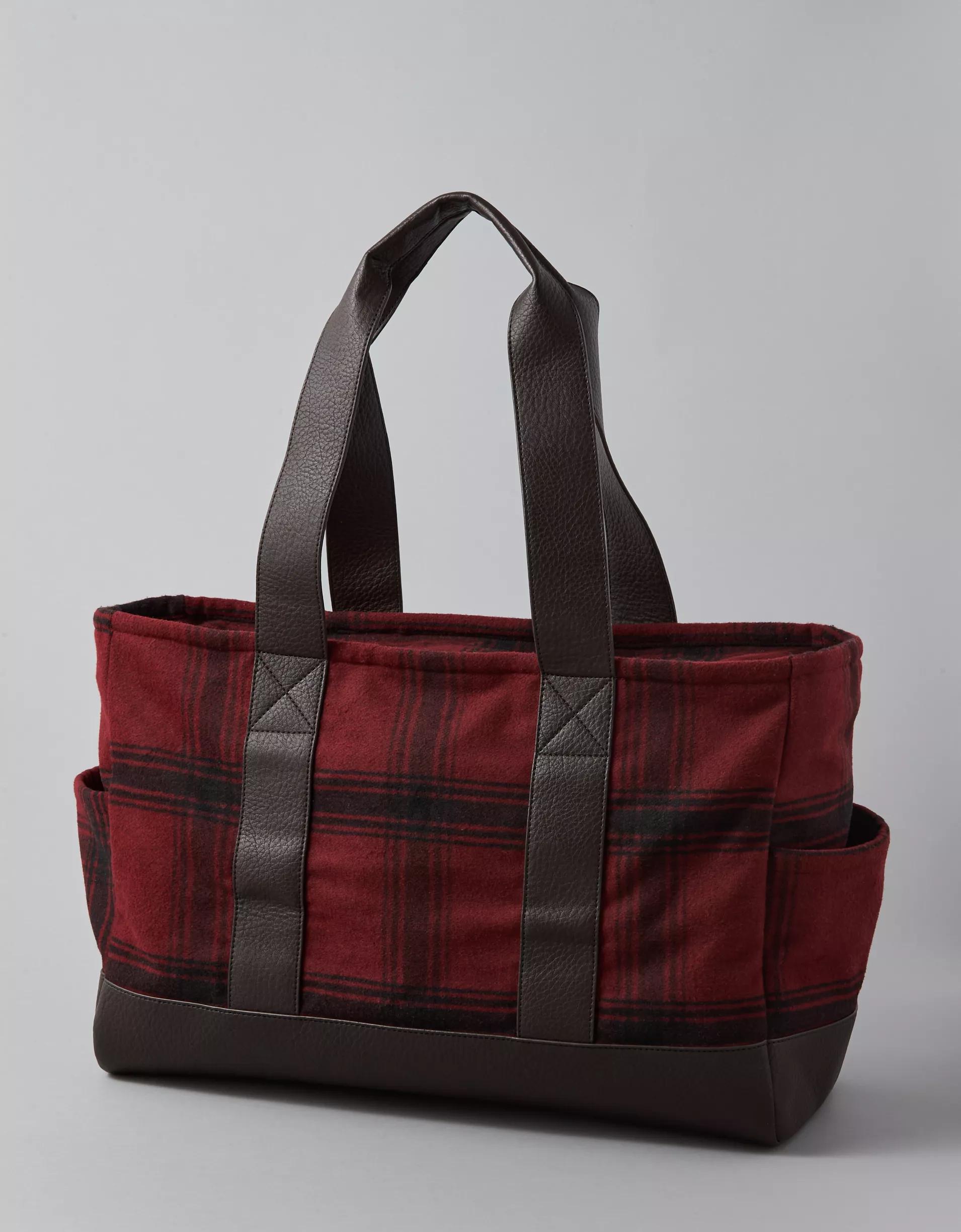 Plaid exterior/Durable shoulder straps/Side pockets for extra storage