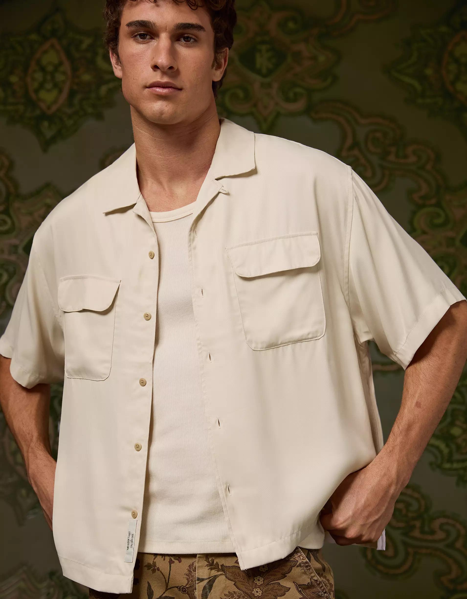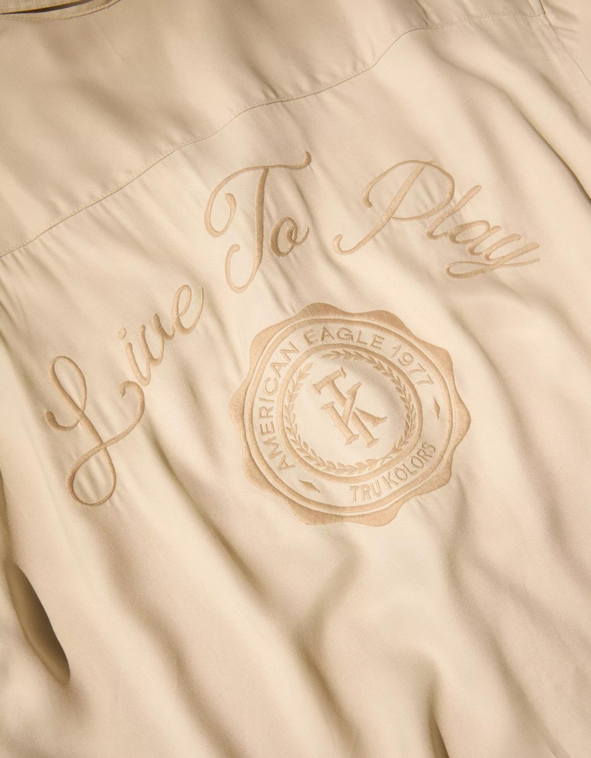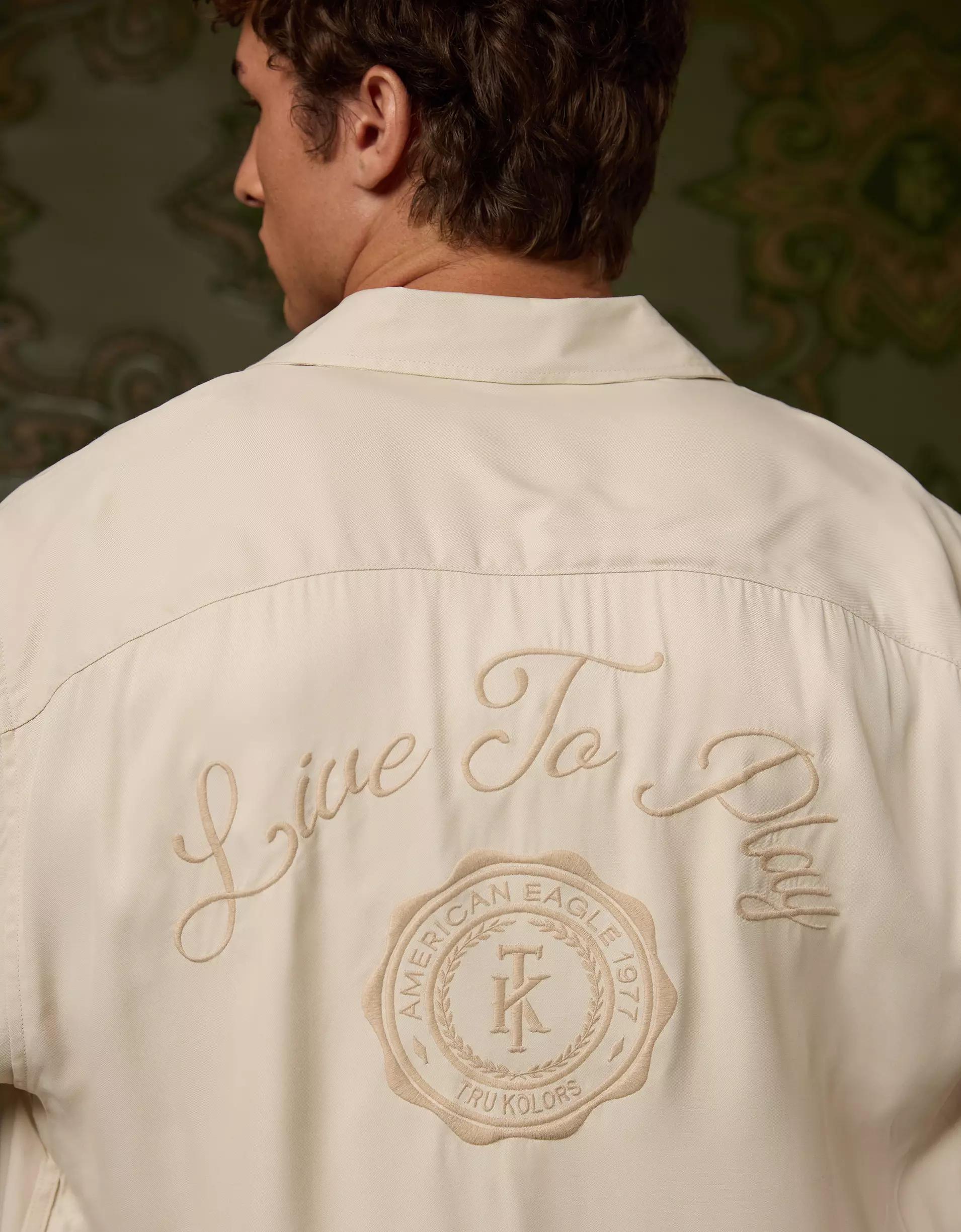 Manifest your mindset in this boxy camp shirt, featuring signature "AE x Tru Kolors" embroidery and a silky hand feel for a luxe look.