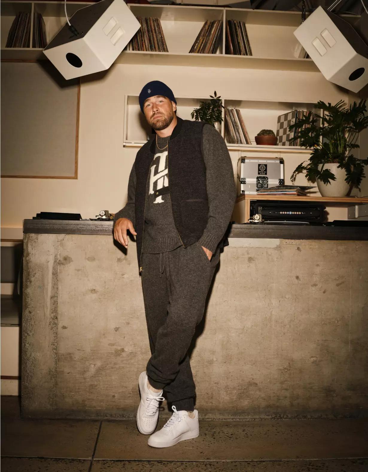 Part of our exclusive limited-edition collab with Tru Kolors by Travis Kelce/Wool-cashmere knit blend/Ribbed waistband with functional drawstring closure and faux stitched fly/Angled front pockets/Open hem