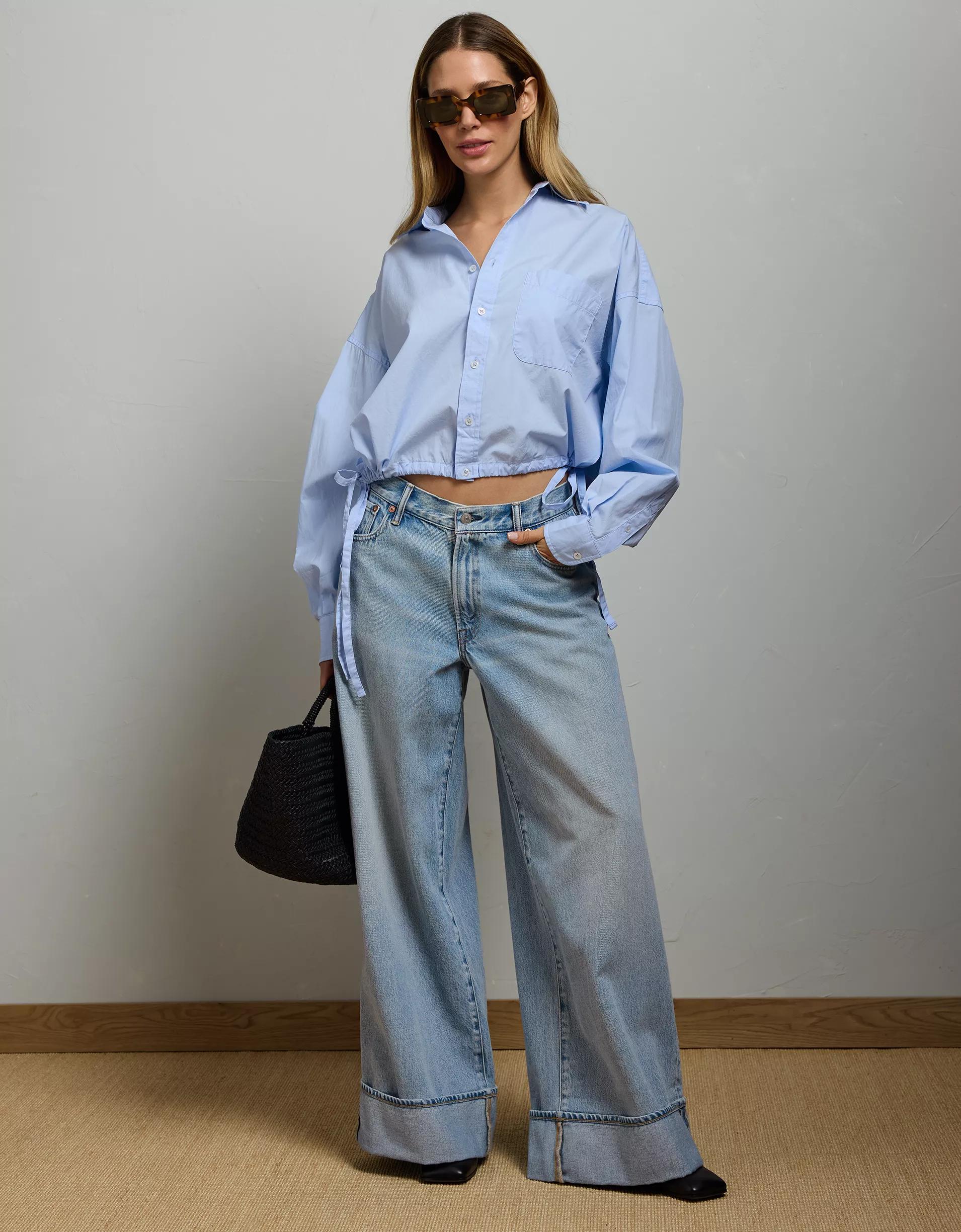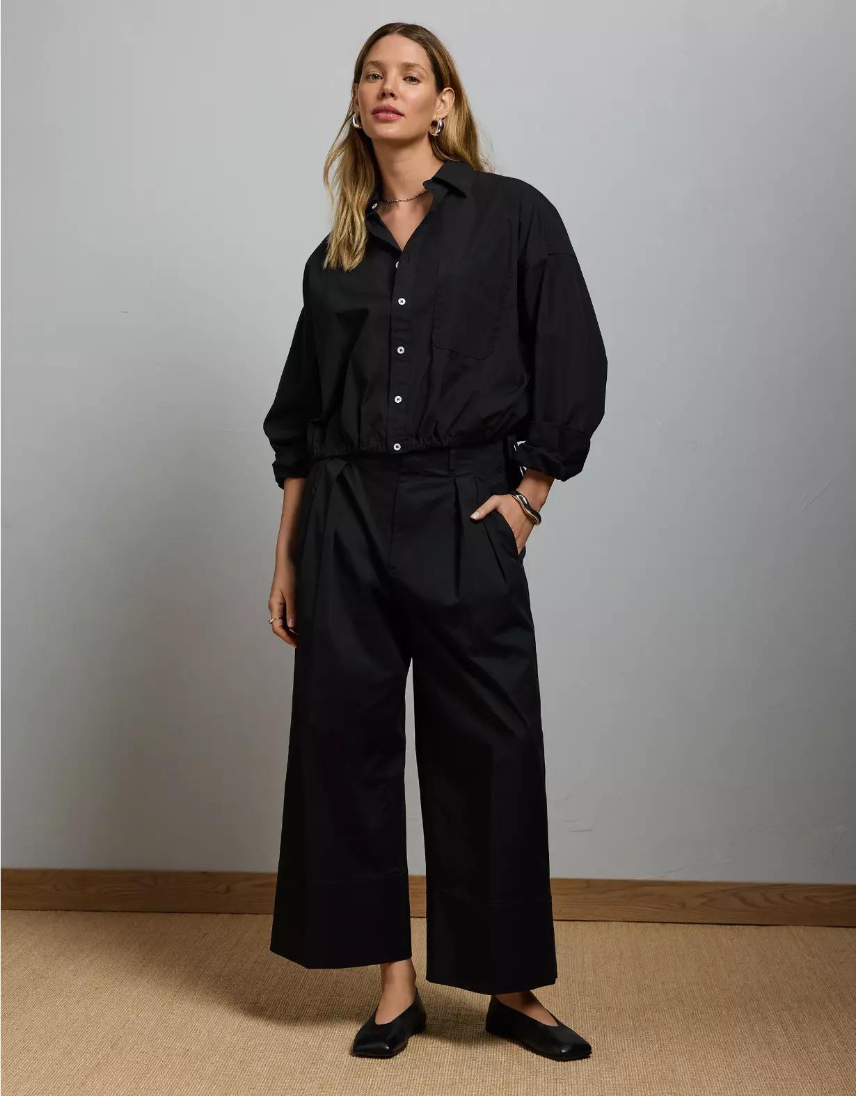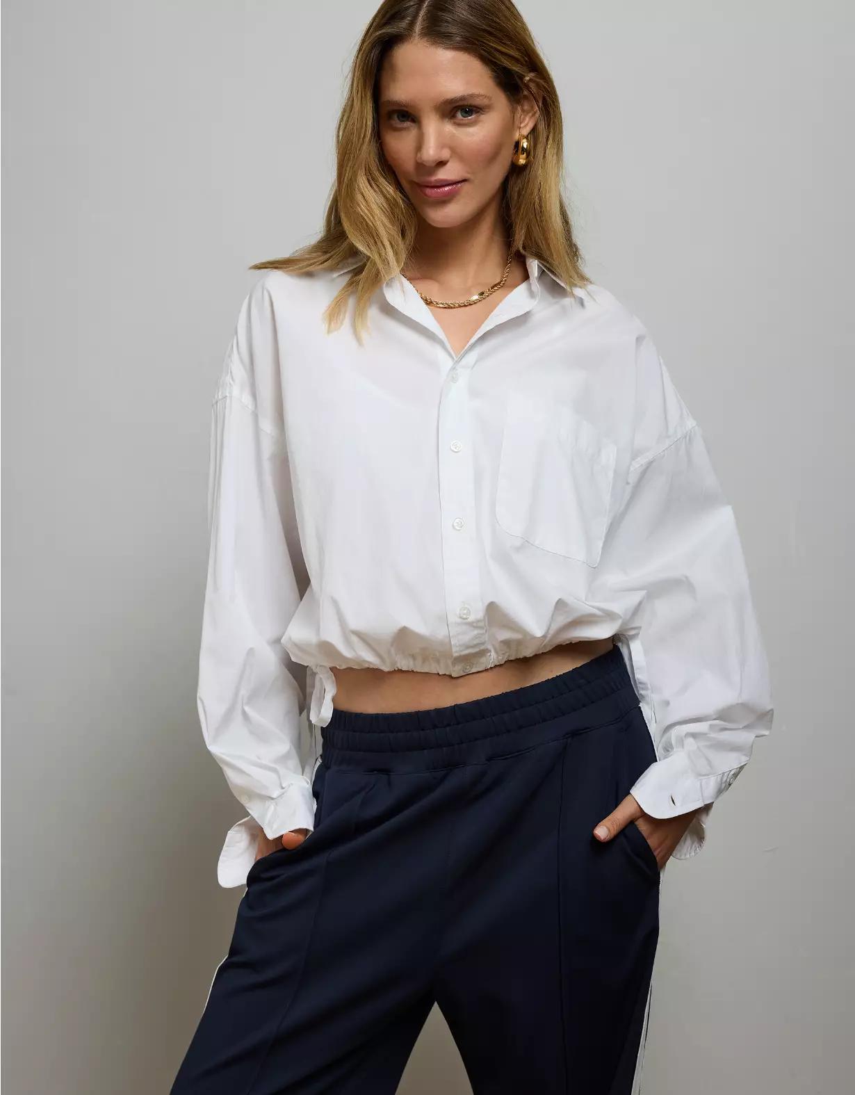 AE77 Premium Poplin Long-Sleeve Button-Up Bubble Shirt