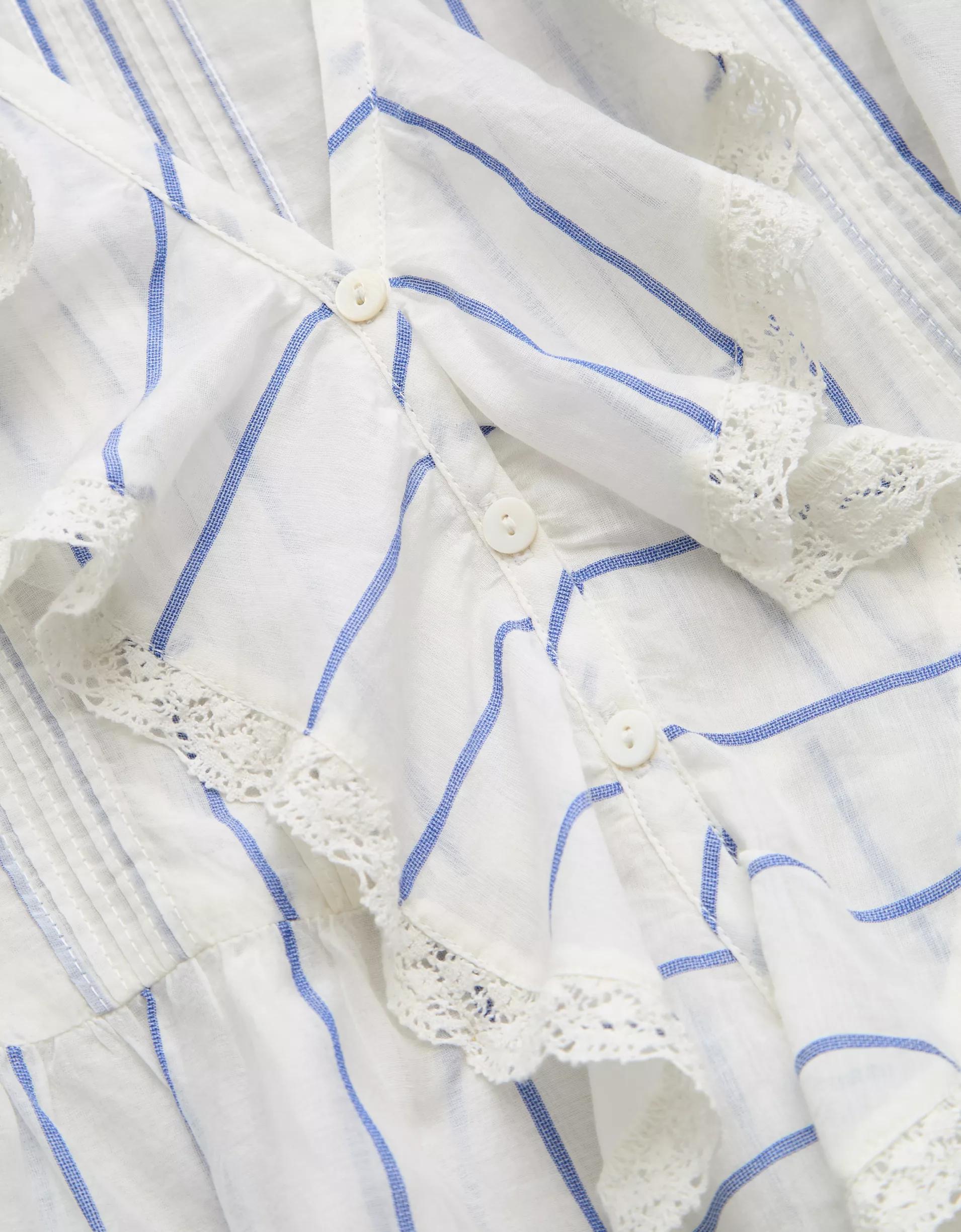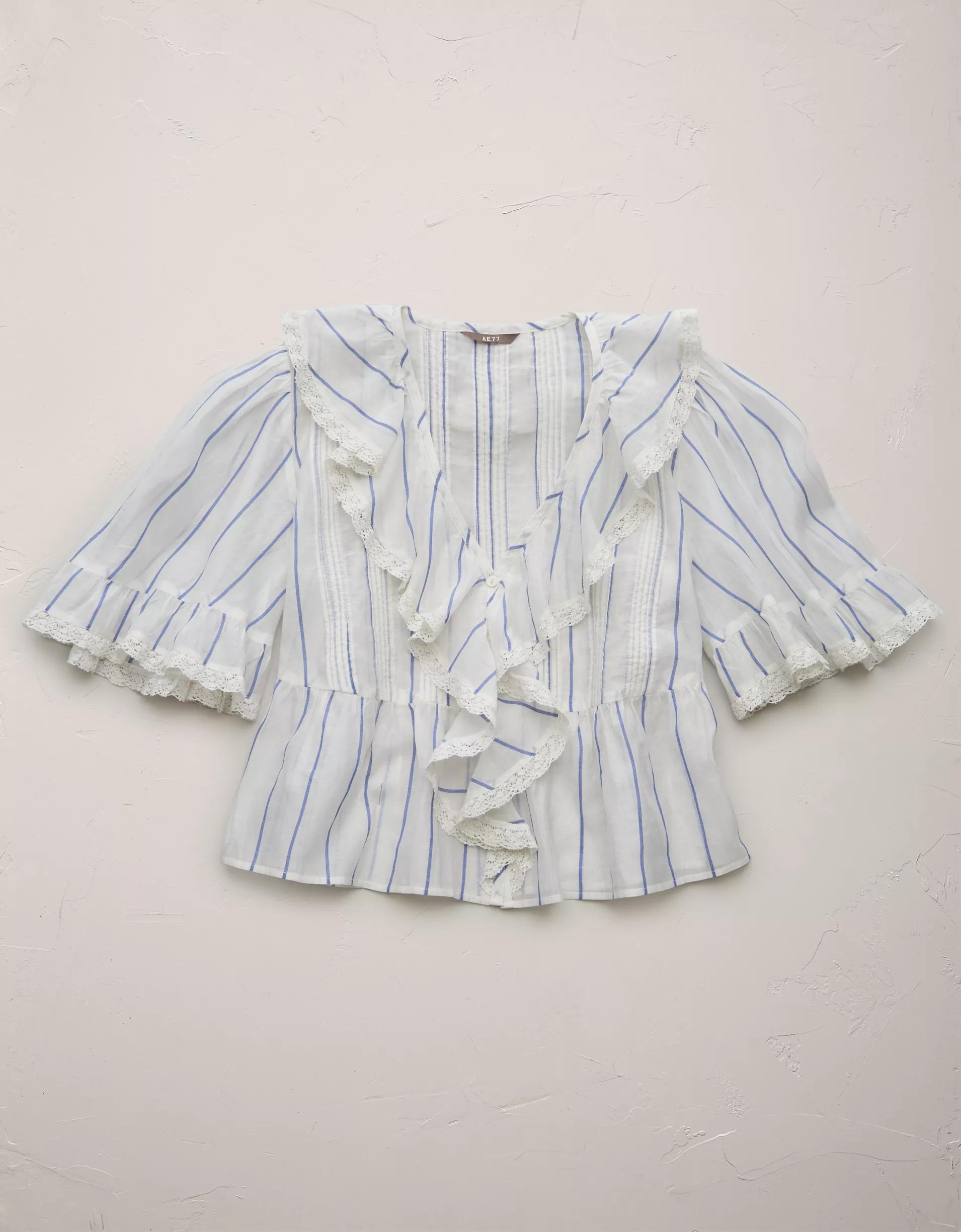 AE V-Neck Ruffle Button-Up Blouse Women's