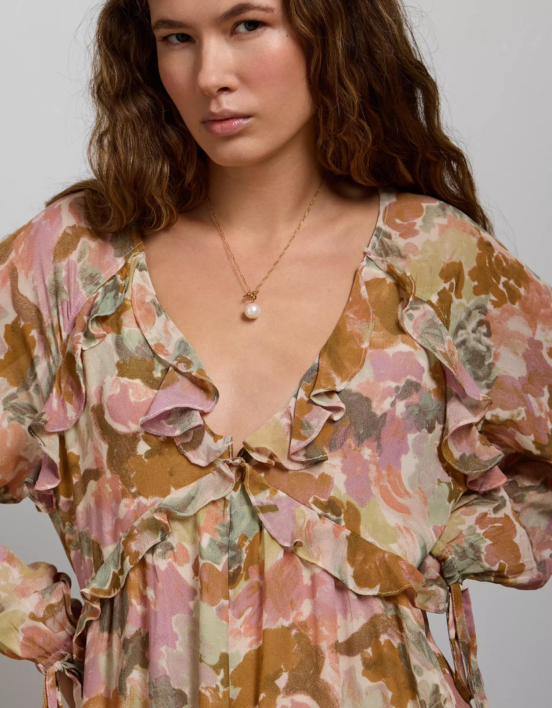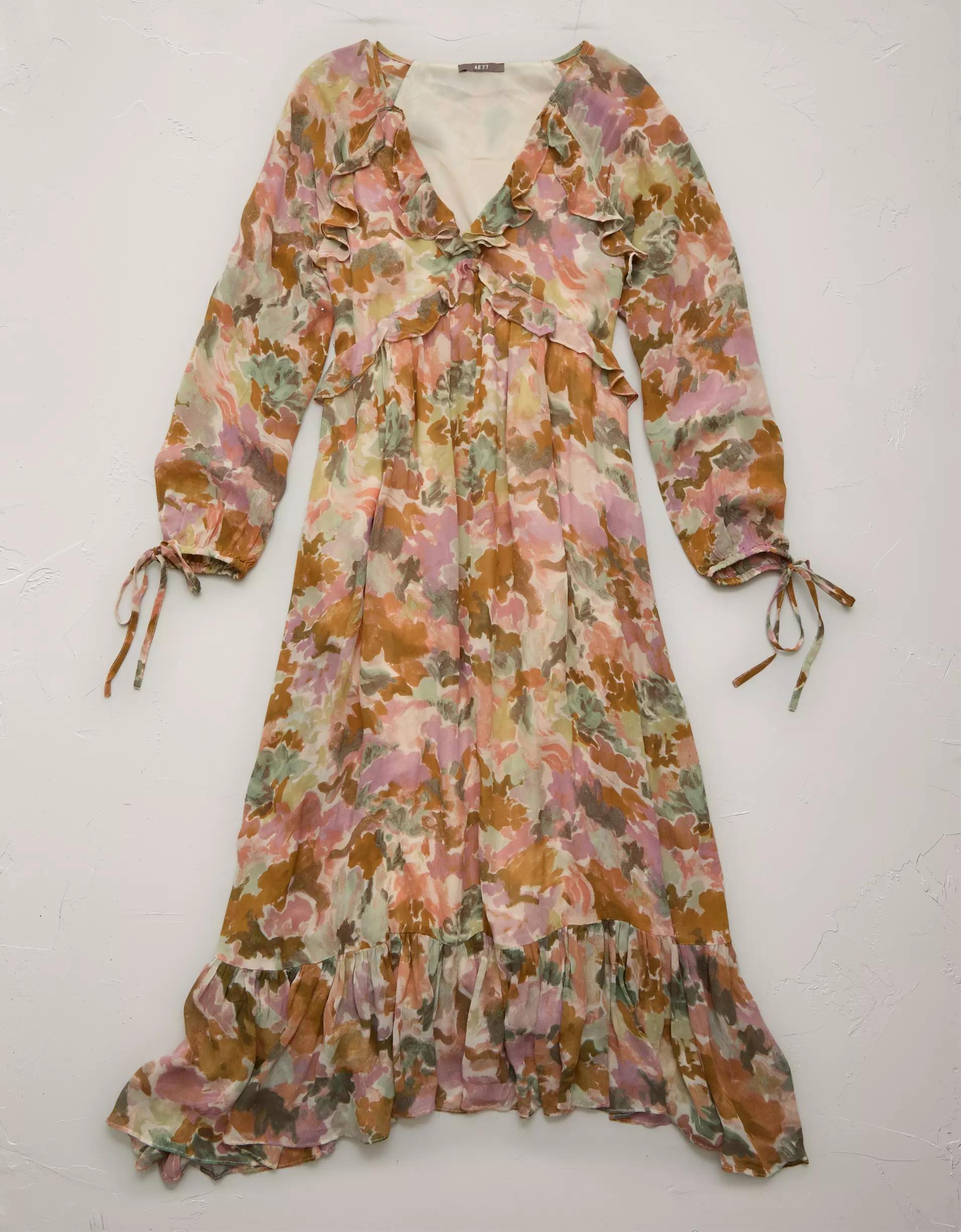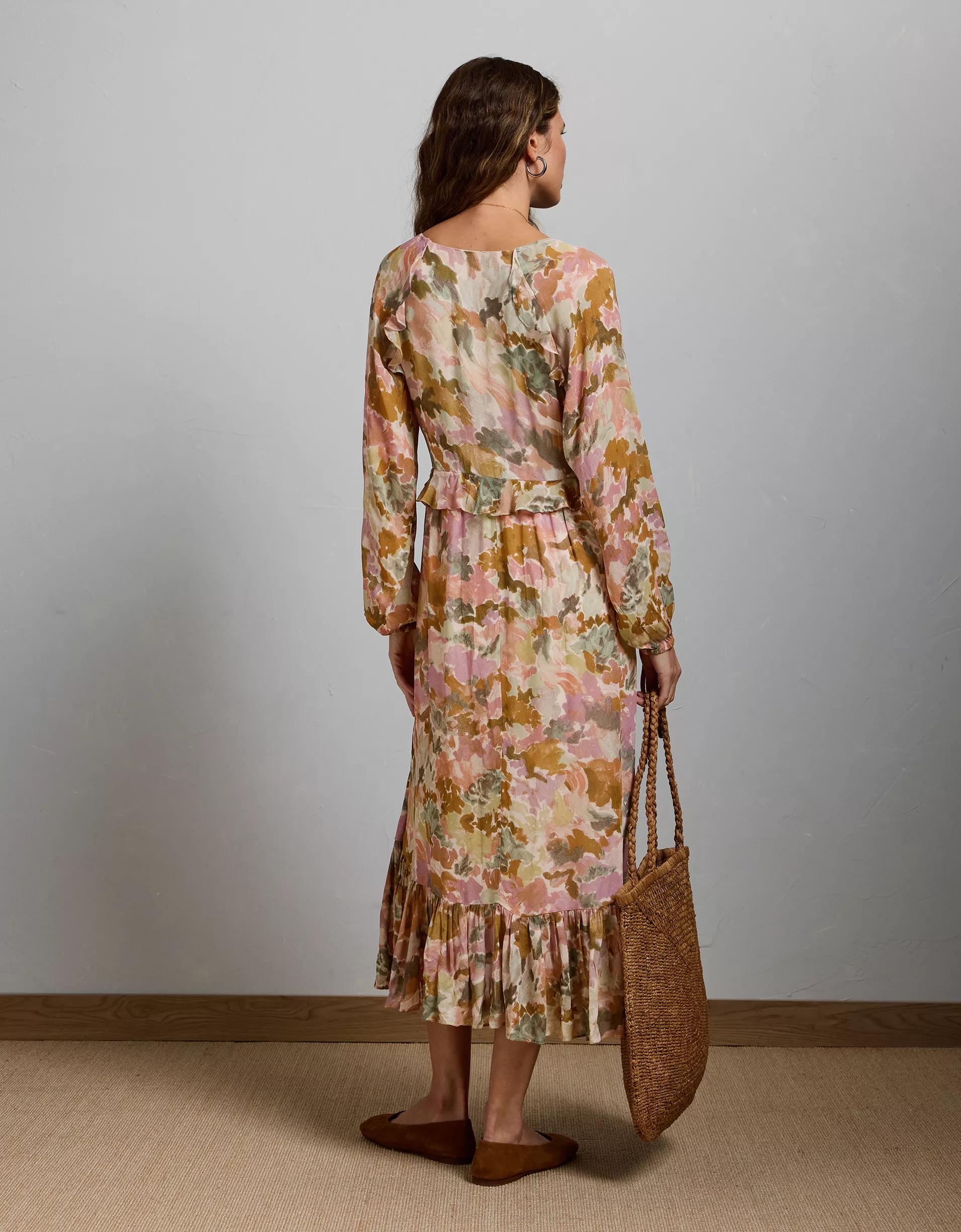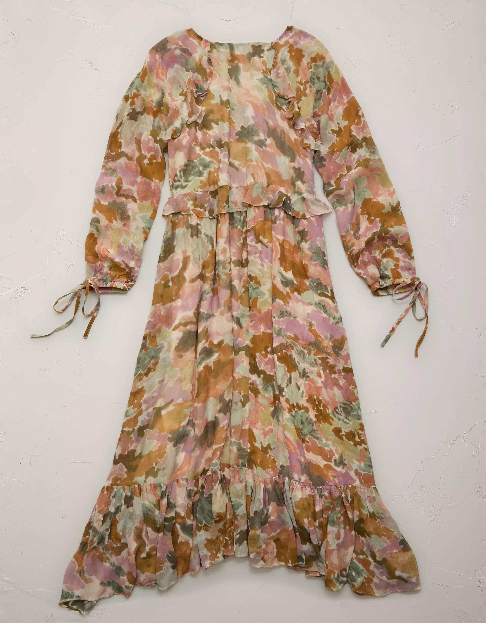 AE77 Premium Ruffled Chiffon Midi Dress