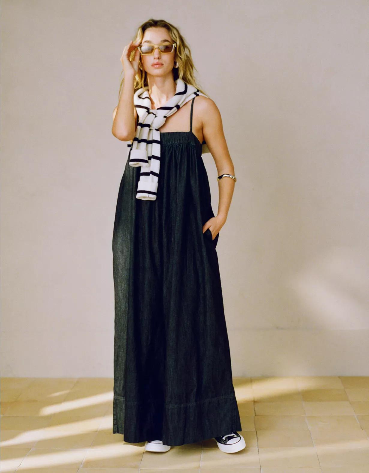 AE77 Premium Wide-Leg Denim Jumpsuit