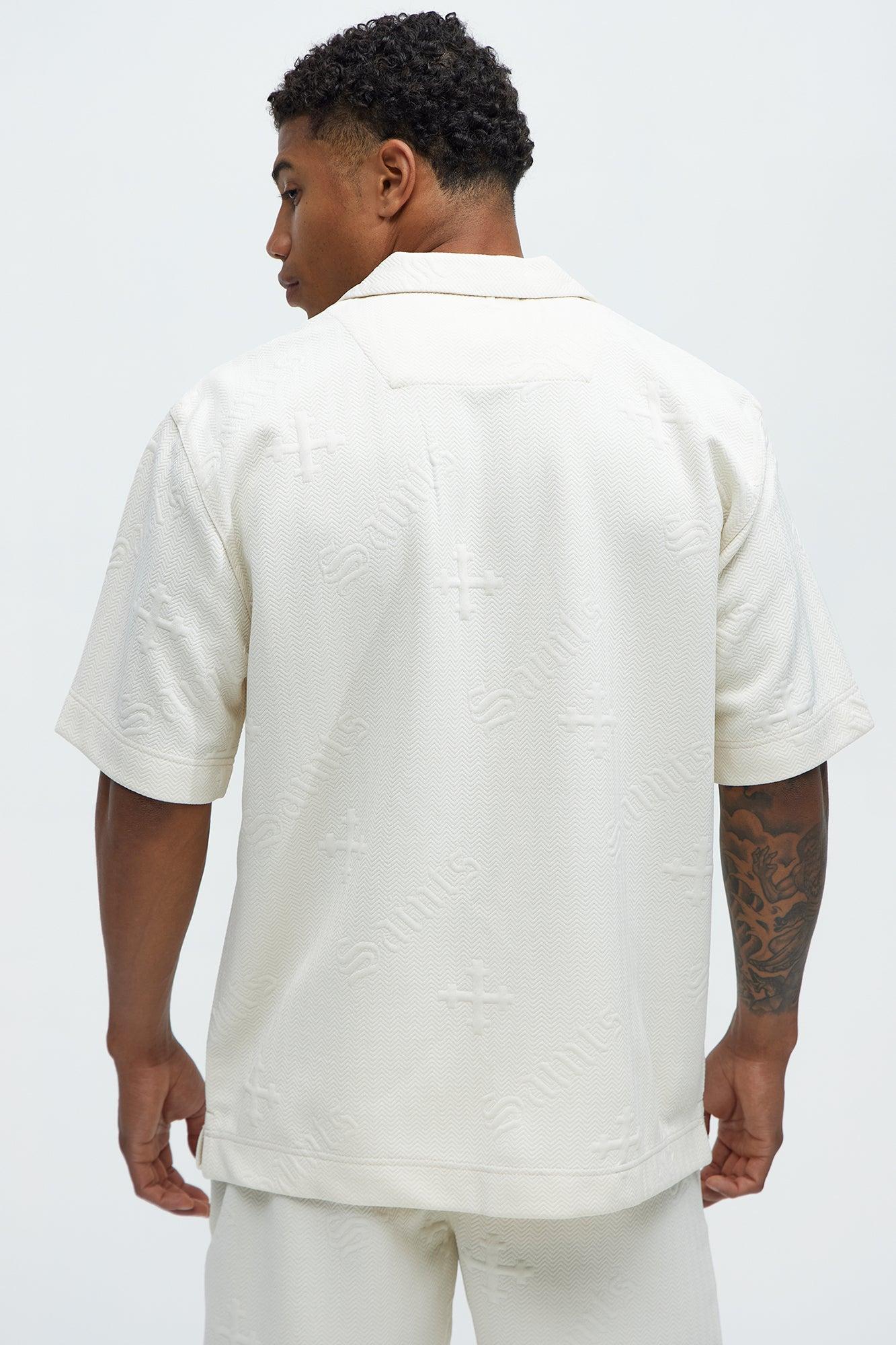 Aegis Cross Embossed Short Sleeve Button Up - Off White