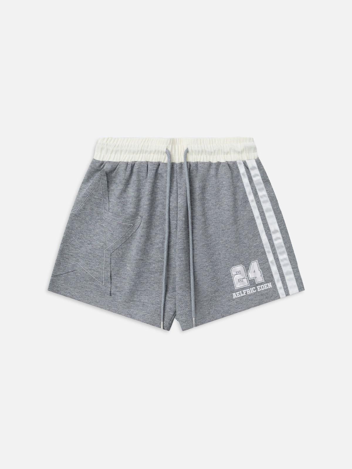 Presale: This product is hot selling, the estimated shipping time is May. 12-14, 2025. Follow us on Instagram @aelfricedenofficial for the latest updates. Casual shorts with embroidered “24” and stars for a sporty look. These shorts have stripes on the side for a sporty look and a comfortable, loose fit. Perfect for everyday wear or casual style. Material: 52% Polyester, 42% Cotton, 6% Spandex. Clothing details: Patchwork. SIZE GUIDE