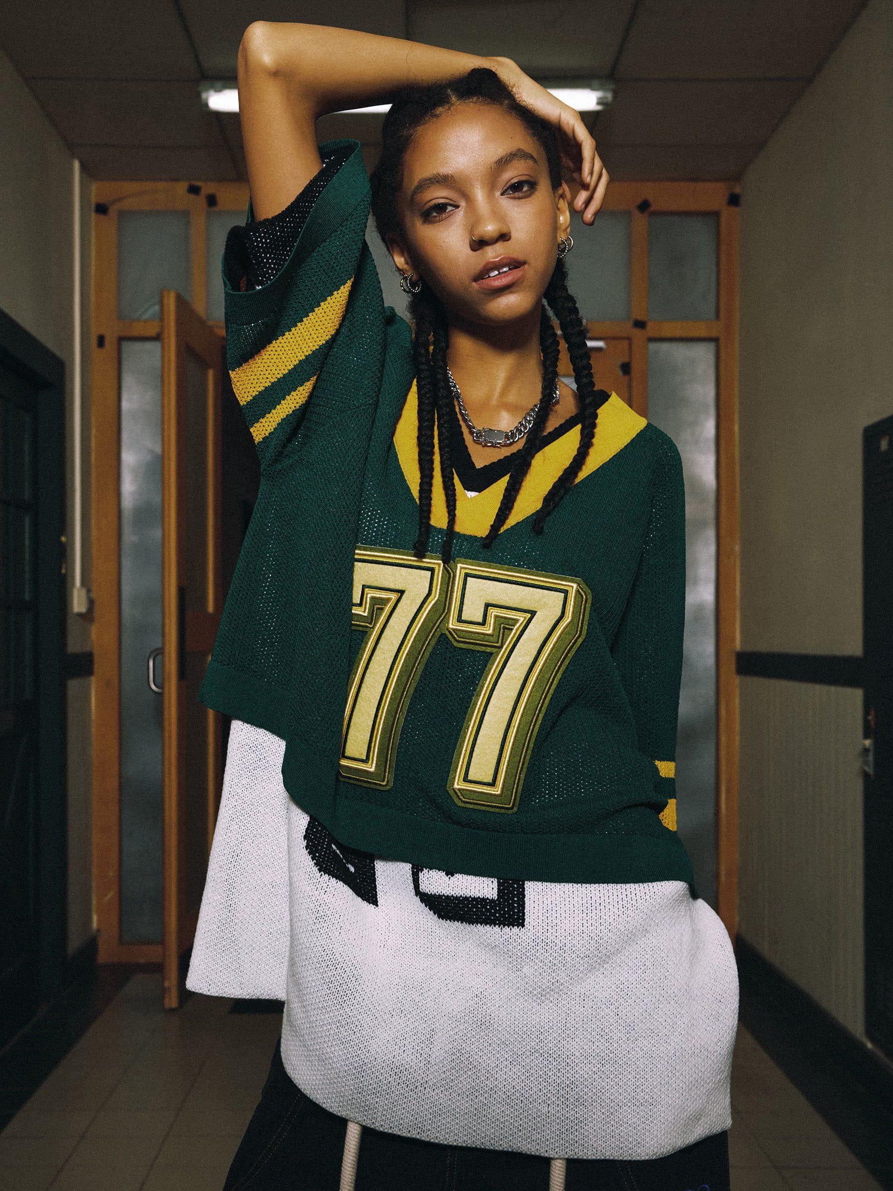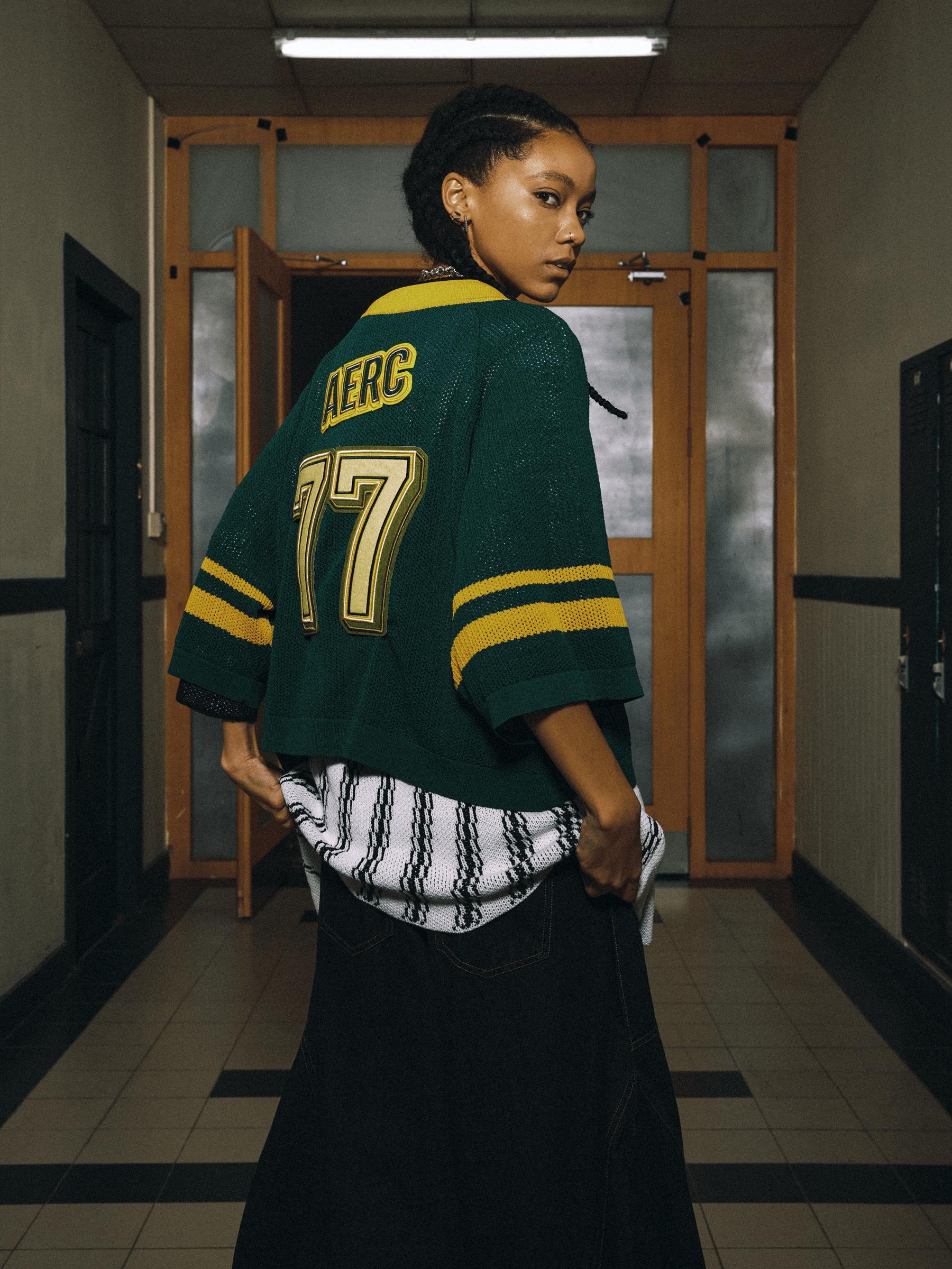 Presale: This product is hot selling, the estimated shipping time is Jul. 10-12, 2025. Follow us on Instagram @aelfricedenofficial for the latest updates. Bright yellow meets deep green in a striking contrast that captures the energy of a sunny field — fresh, natural, and full of life. The breathable knit fabric with stretch-enhancing perforations offers freedom in every move, while the V-neck adds a touch of effortless ease. Material: 60% Polyester 40% Viscose. Clothing details: Embroidery. SIZE GUIDE