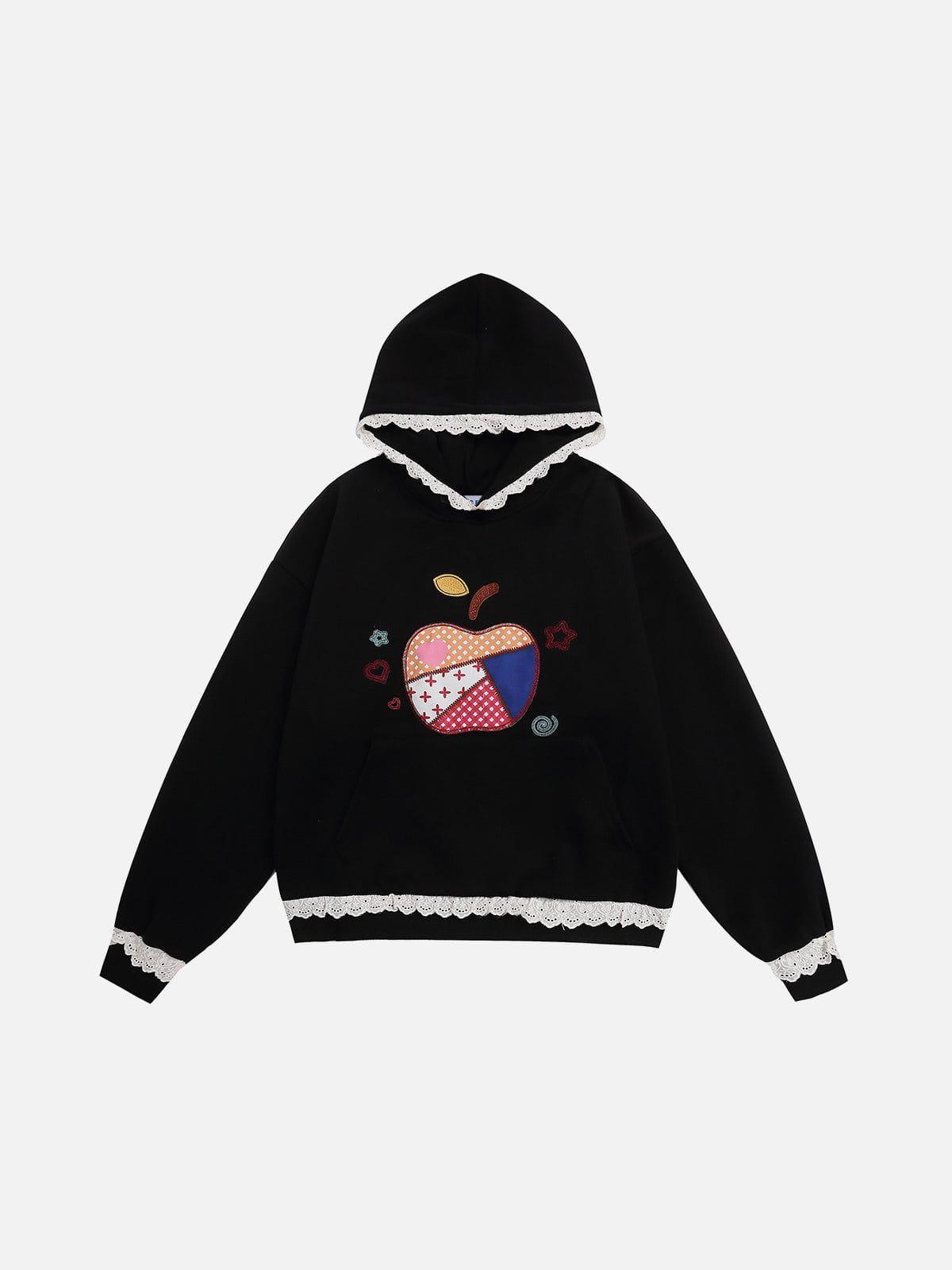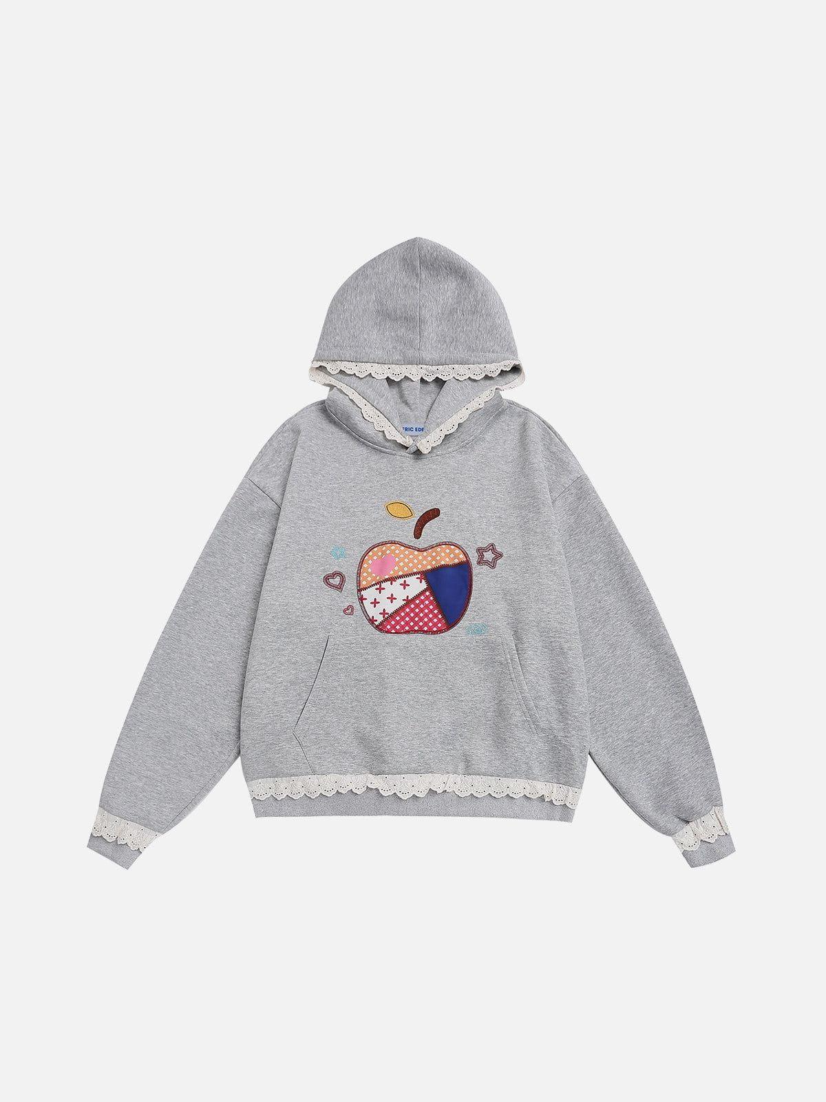 The Aelfric Eden Applique Apple Lace Pullover Hoodie combines unique patchwork design with delicate lace appliqué, creating a stylish fusion of textures. This hoodie stands out with its eye-catching details and comfortable fit, perfect for those who want to express individuality while staying cozy. Elevate your casual wardrobe with this distinctive blend of edgy and feminine elements.Material: 100% Cotton.Clothing details: Plaid Apple.SIZE GUIDE