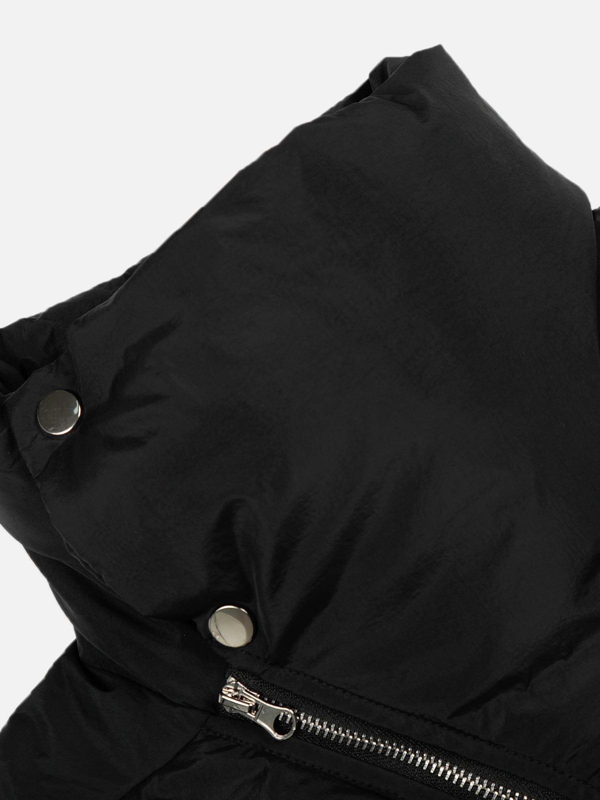A clean, structured coat built around a sharp asymmetric zip that cuts across the front for a modern edge. The high stand collar adds a sculptural feel and blocks out the wind, while the padded build keeps the silhouette warm without losing its sleek lines. A minimal, street-ready outer layer that elevates everyday styling with one bold detail. Material Shell: 100% Nylon. Lining: 100% Polyester. Clothing details: Asymmetric Zip Up. SIZE GUIDE
