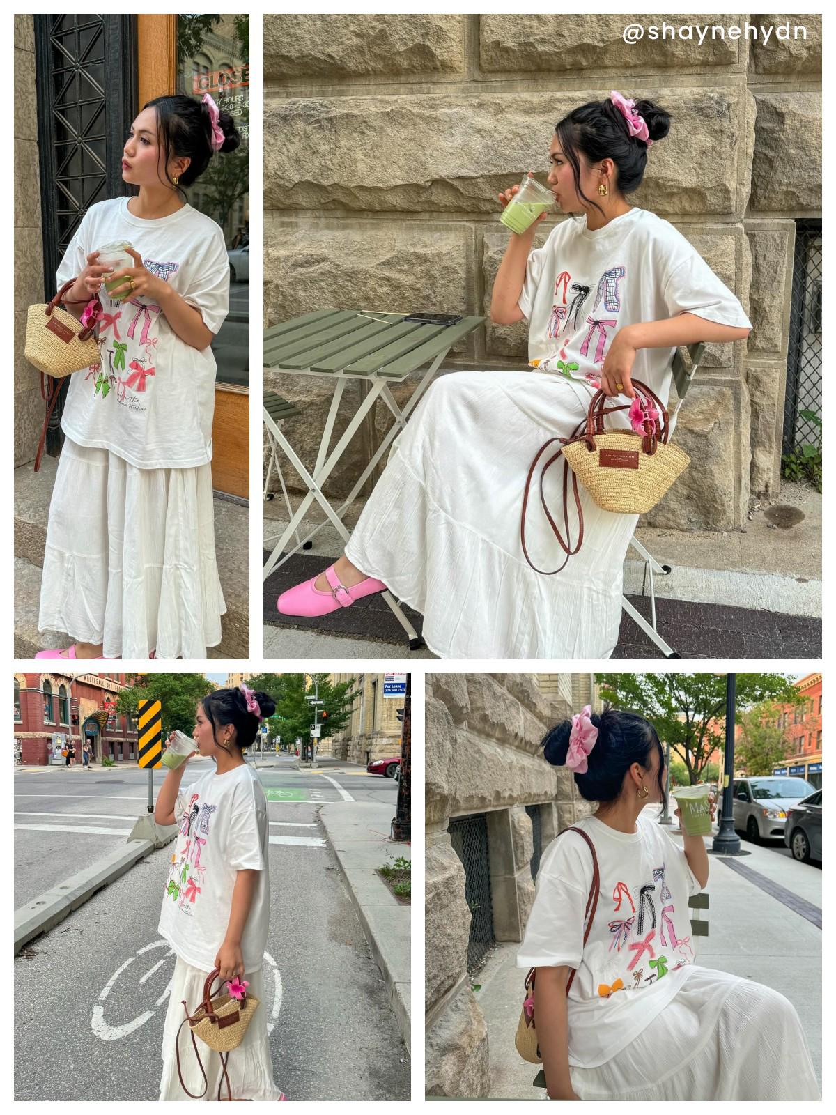 The Aelfric Eden Colorful Bow Tee is a vibrant T-shirt made from premium cotton for a soft, comfortable fit. Featuring a playful, colorful bow design on the front, it adds a whimsical touch to any outfit. Perfect for brightening up your wardrobe, this tee pairs effortlessly with jeans, shorts, or skirts for a fun, stylish look. Material: 100% Cotton. Clothing details: Bow Print. 在 Instagram 查看这篇帖子 Shayne Hydn (@shaynehydn) 分享的帖子 SIZE GUIDE