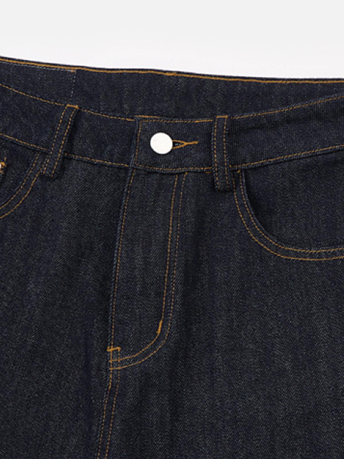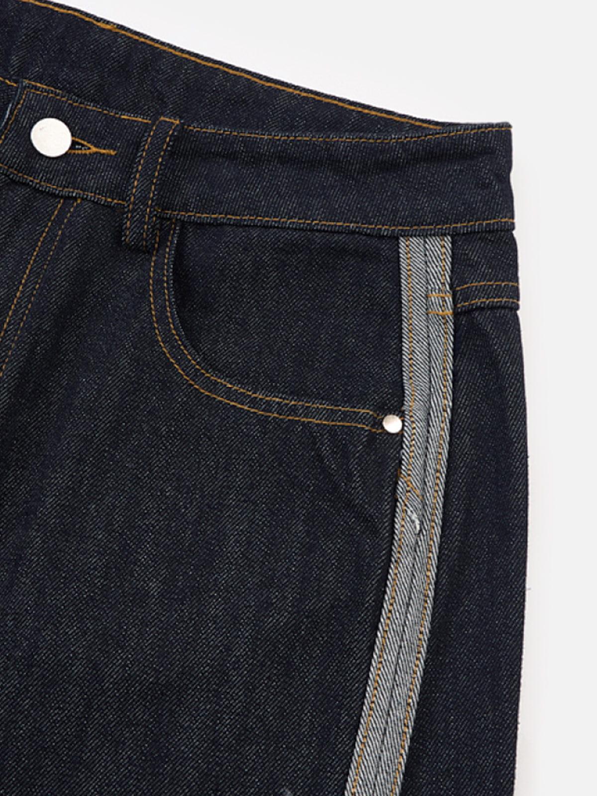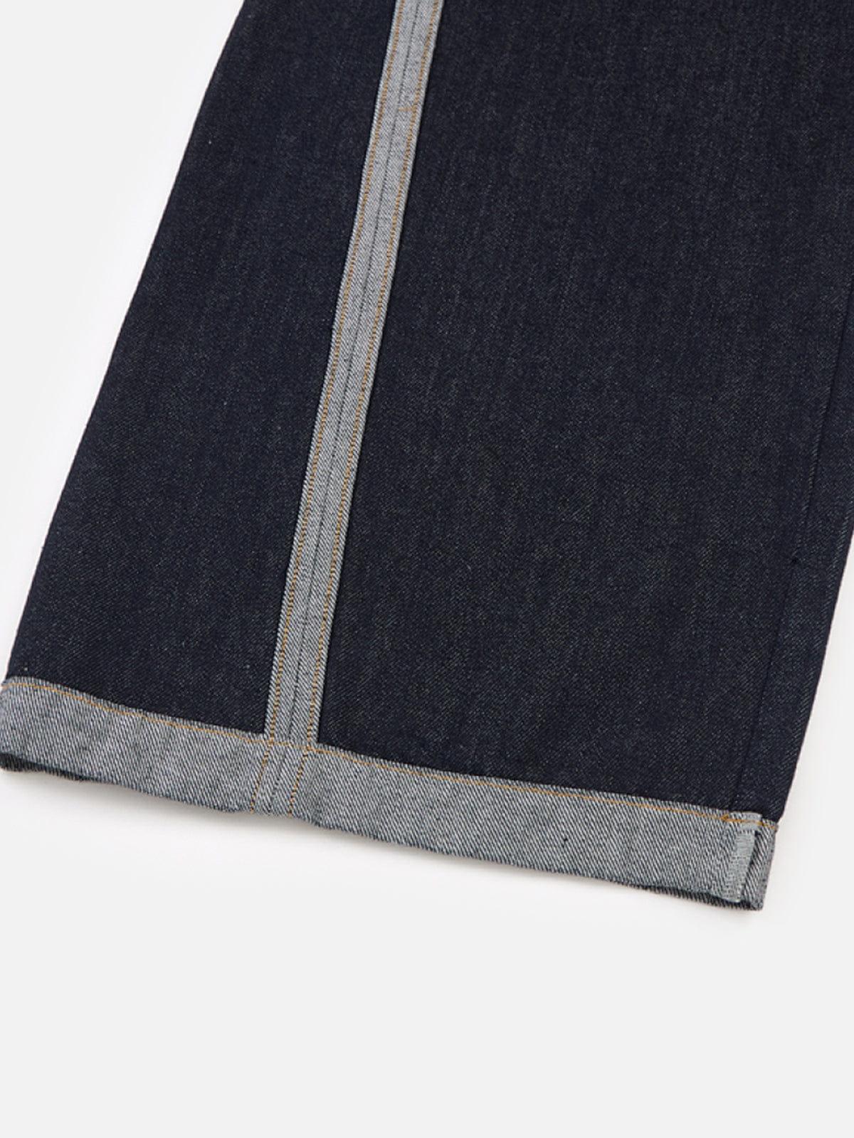 A relaxed baggy silhouette finished with a contrast turn-up hem that defines the look. The dark denim body flows into a lighter cuffed edge, creating a sharp visual break at the ankle while keeping the overall shape loose and grounded. Clean lines, heavy drape, and a subtle contrast that elevates everyday denim. Material: 81.2% Cotton, 17.5% Polyester, 1.3% Other. Clothing details: Turn-Up. SIZE GUIDE