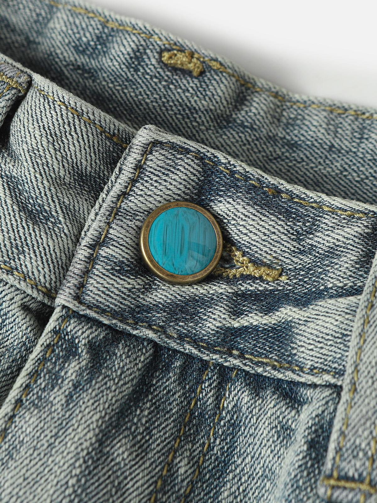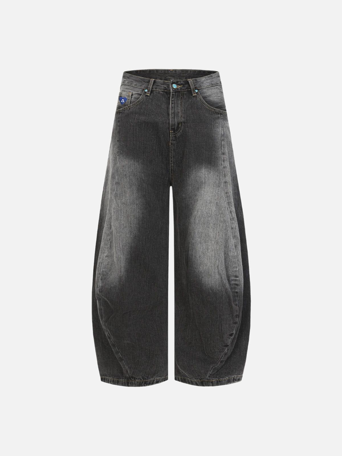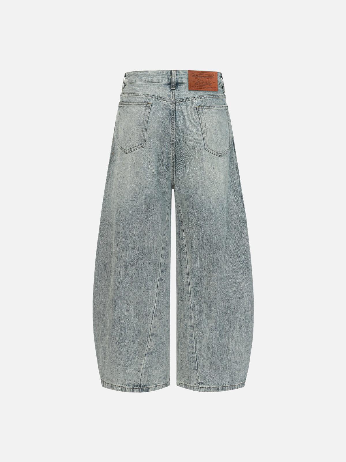 Designed with a baggy barrel silhouette, these jeans build volume through a curved leg structure that widens naturally from the thigh. Sculpted seam lines reinforce the rounded shape, while subtle turquoise hardware details add a refined accent that breaks up the washed surface. Clean finishing and classic construction keep the focus on shape and detail balance.Material: 95% Cotton 5% Other.Clothing details: Curved Seam.SIZE GUIDE