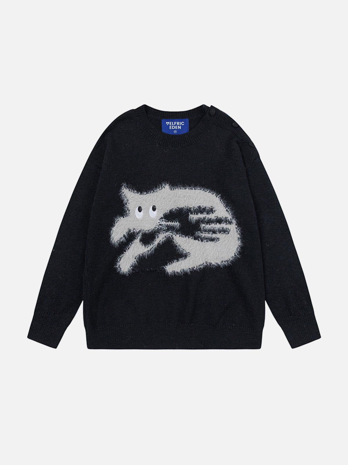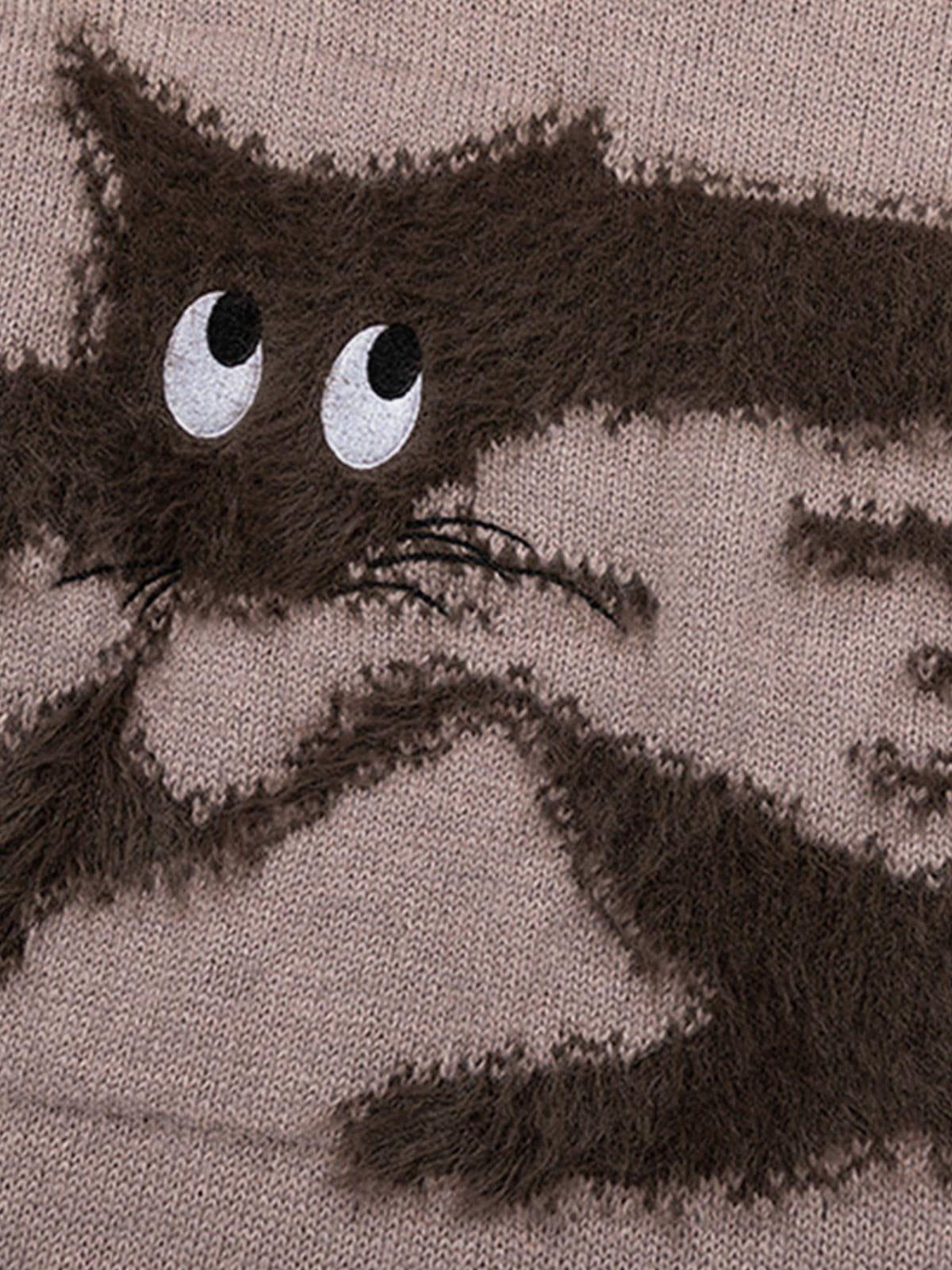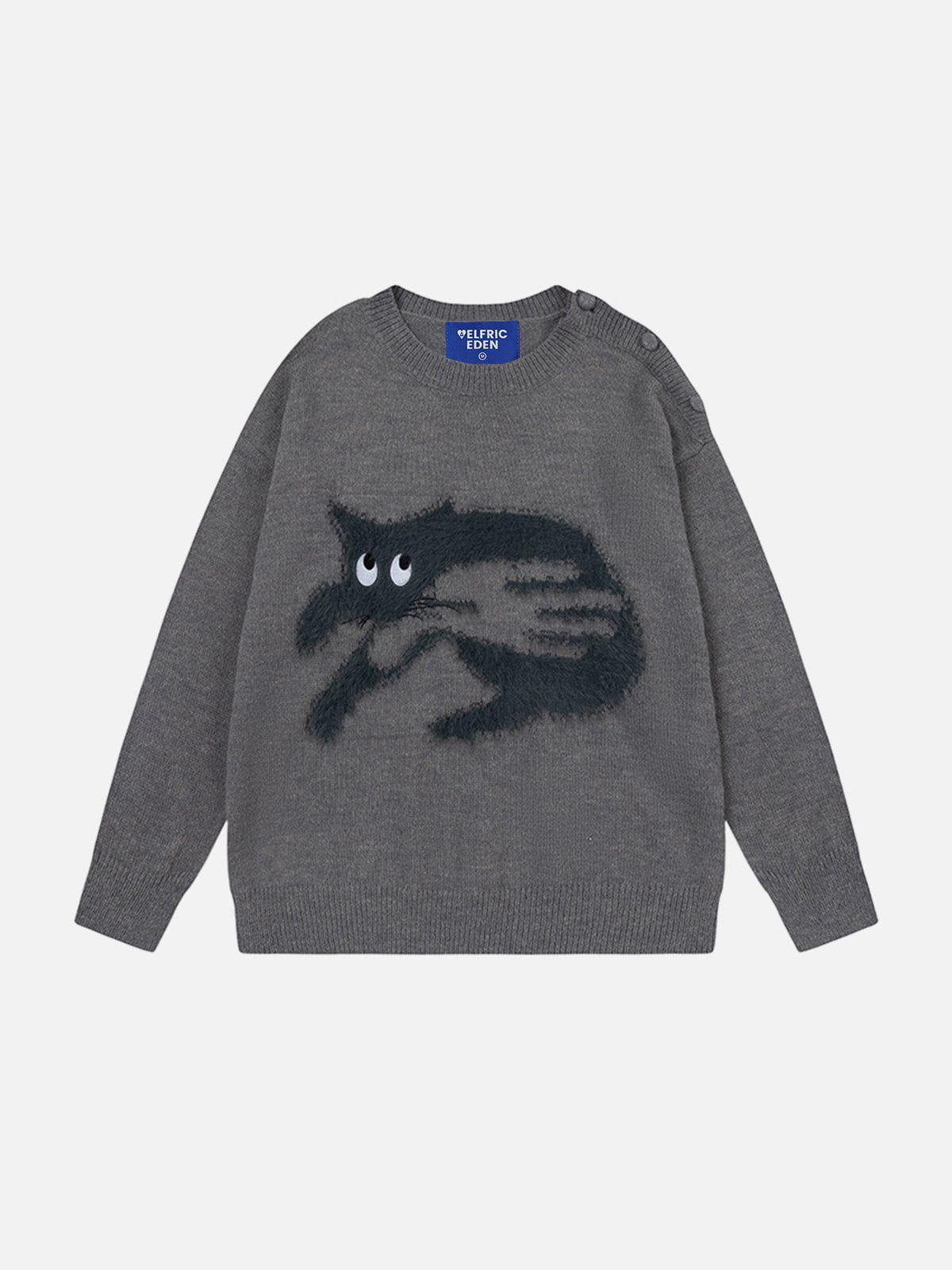 Featuring a playful cat print and textured furry design, it adds a fun and cozy touch to your look. Shoulder button detailing adds a unique element that makes it easy to match and layer. Material: 52% Acrylic, 28% Nylon, 20% PBT. Clothing details: Button Shoulder. SIZE GUIDE