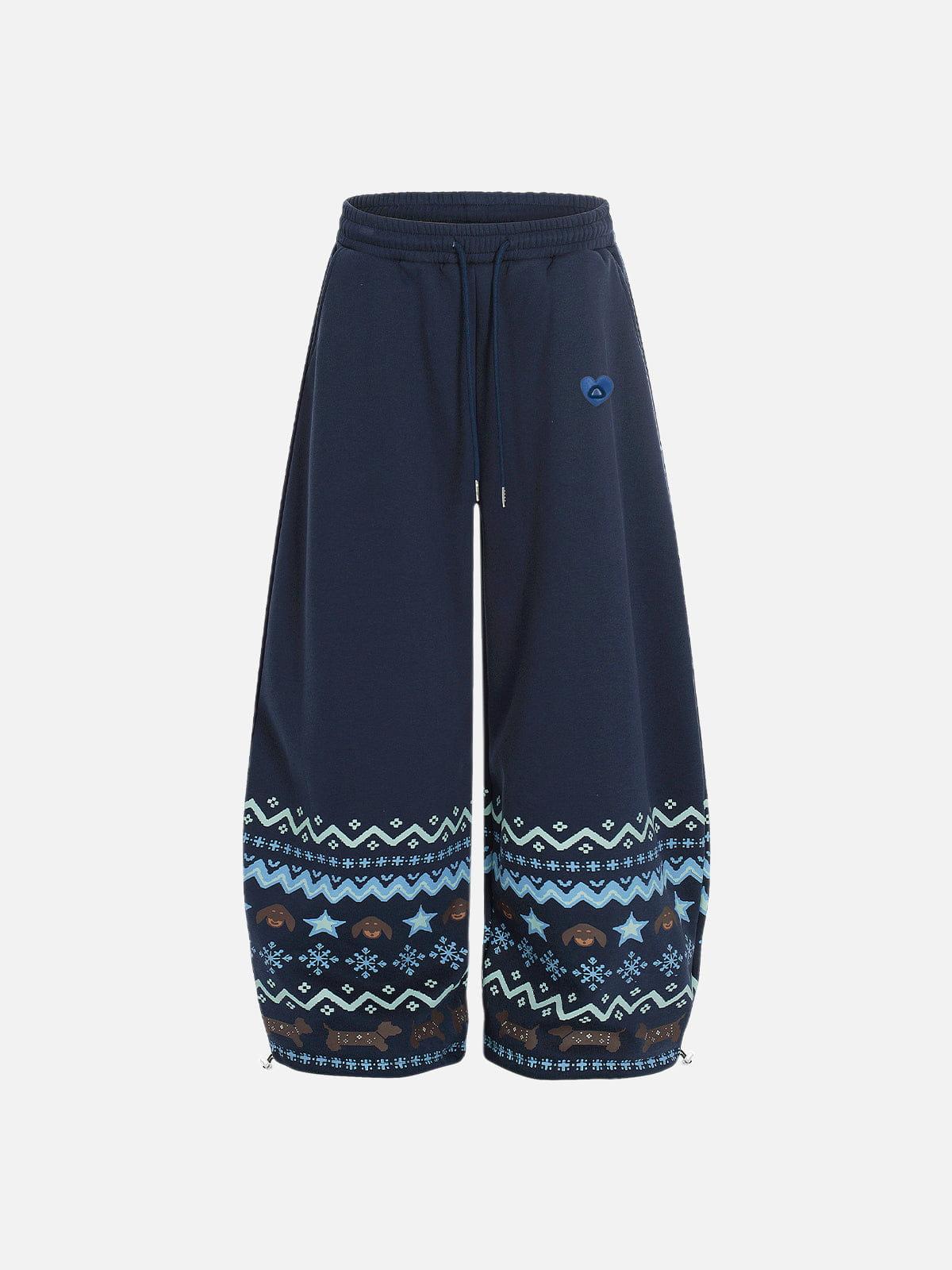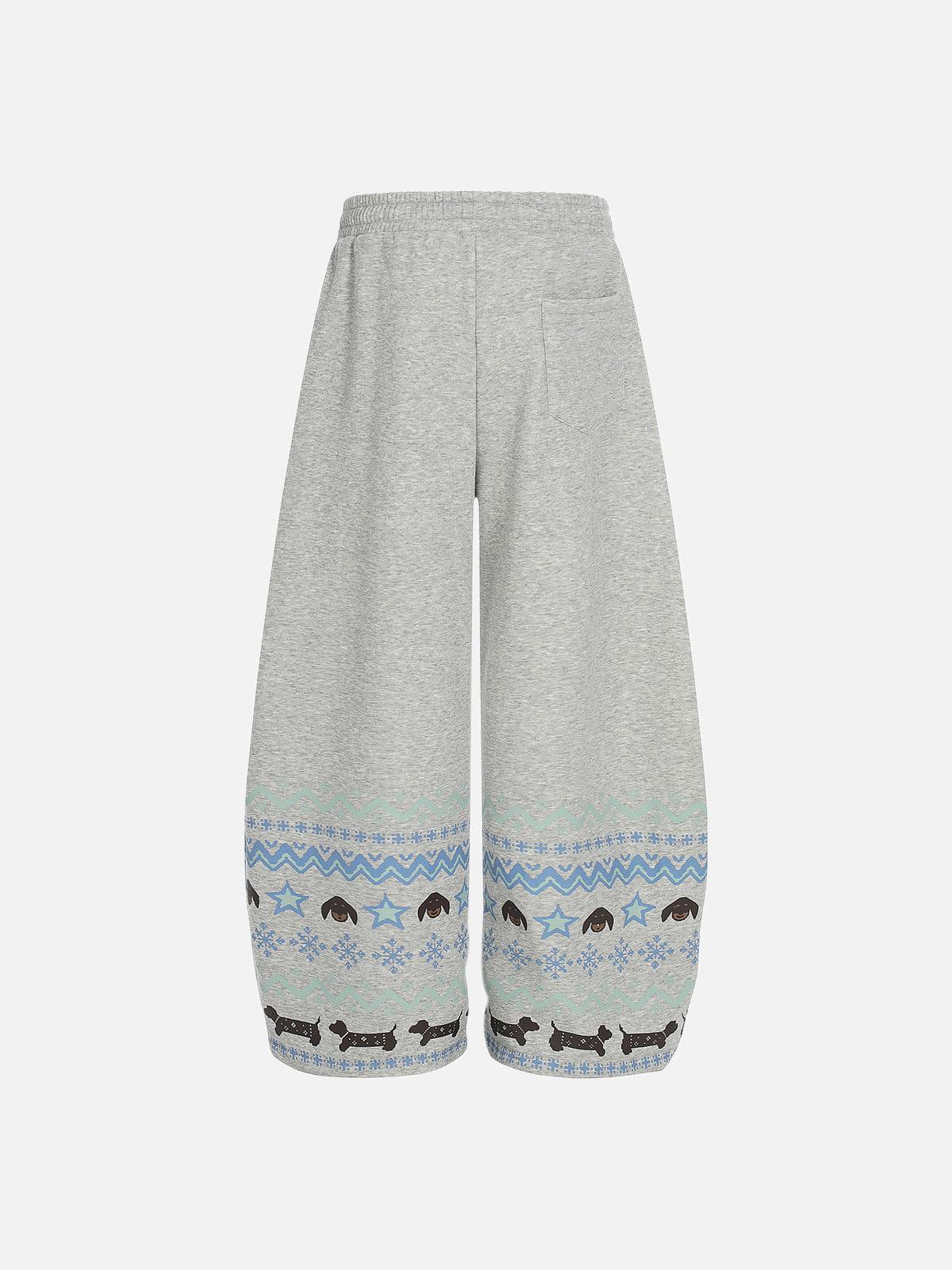 Designed with a baggy barrel silhouette, these sweatpants feature a relaxed volume through the leg with a subtly tapered shape toward the hem, creating a rounded, structured profile. The elastic waistband ensures everyday comfort, while layered graphic bands at the lower leg add depth and visual contrast without overwhelming the design. The overall construction balances exaggerated shape with clean detailing, keeping the look casual and refined for daily wear. Material: 65% Cotton 35% Polyester. Clothing details: Dachshund Graphic. SIZE GUIDE