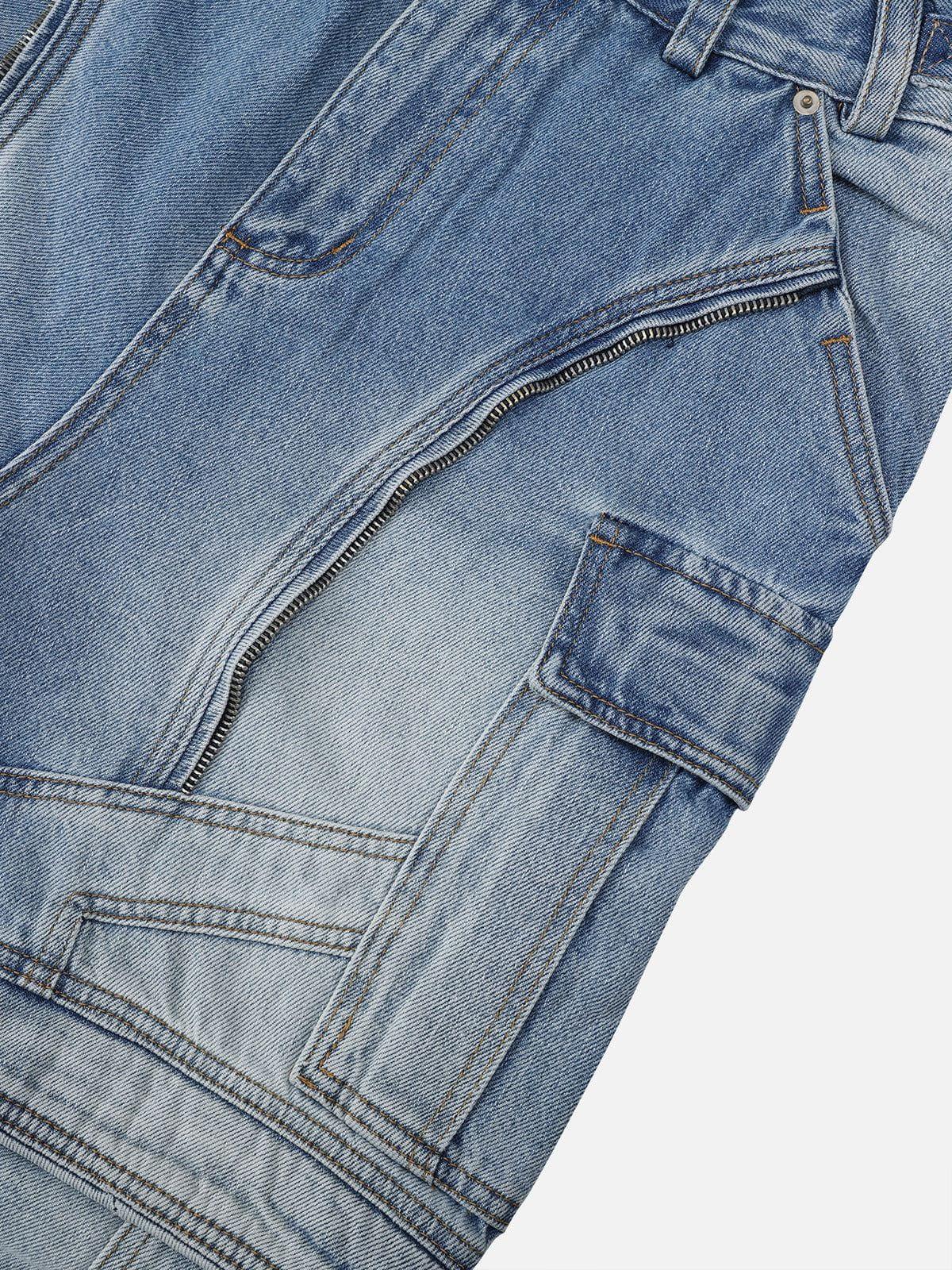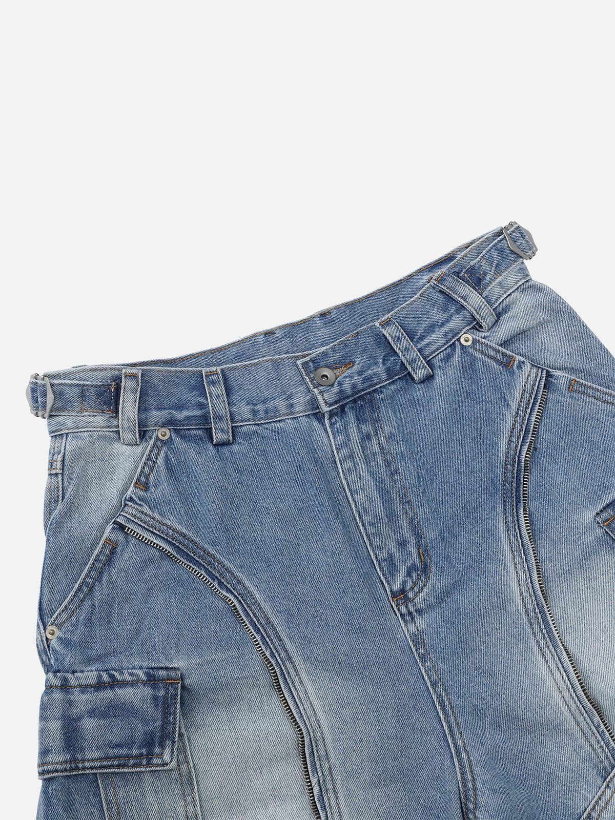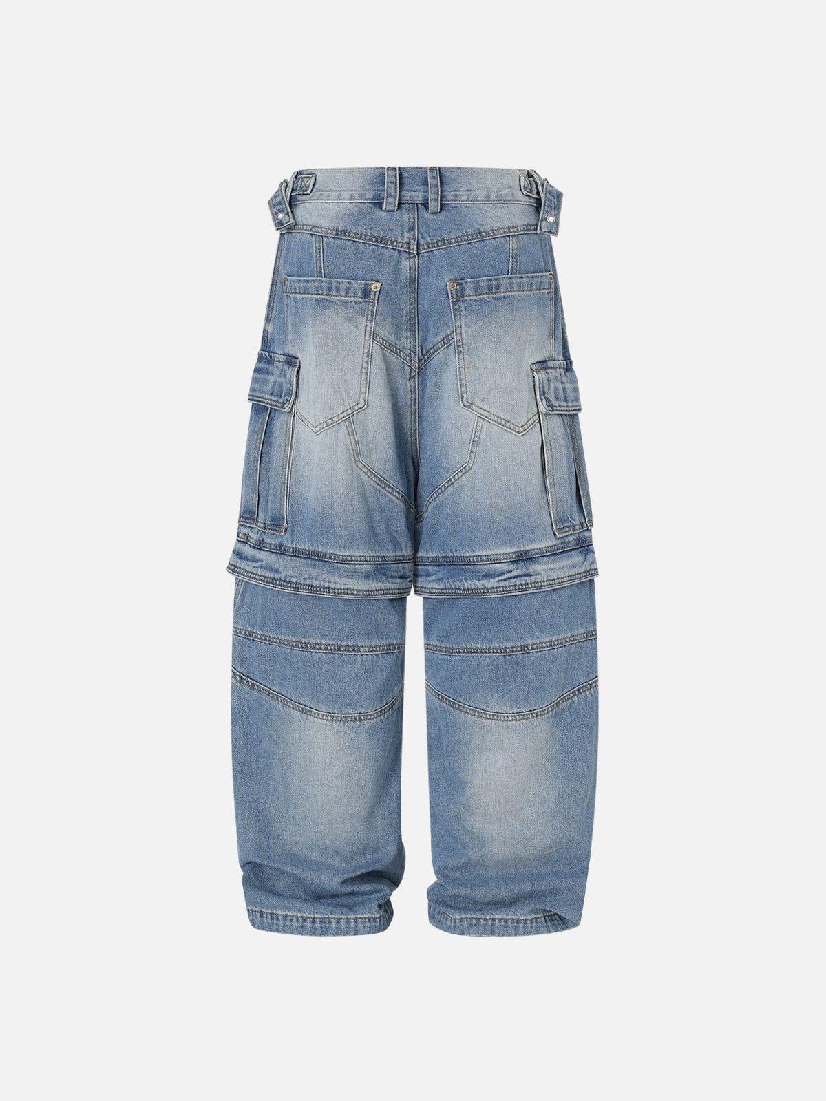 Convertible cargo jeans with a super baggy silhouette and bold washed finish. Articulated seam lines and large pockets add a utility edge. The zip-off design transforms them into shorts for versatile street styling. Material: 96% Cotton, 3% Polyester, 1% Viscose. Clothing details: Multi-Pocket. SIZE GUIDE
