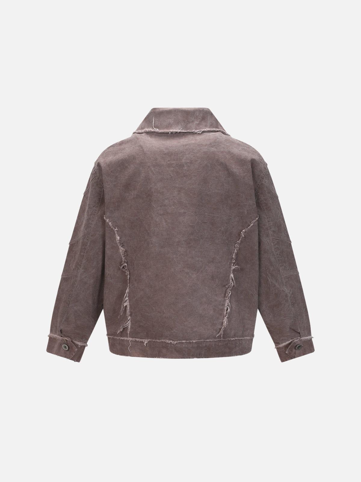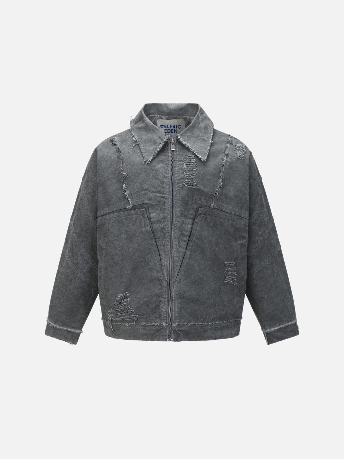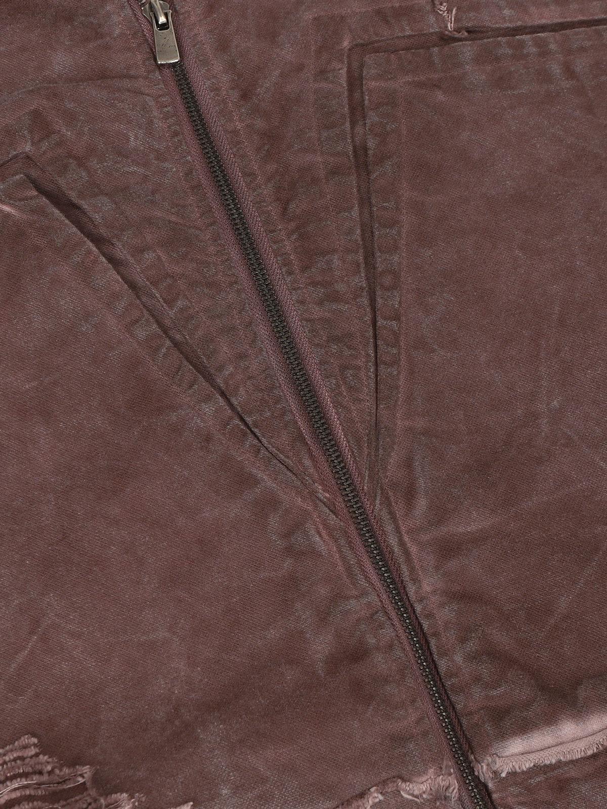 Built with a full zip-up front, this jacket leans into a sporty silhouette with a rugged edge. The washed fabric creates a naturally worn texture, while distressed details and raw seams add depth and attitude. Finished with a stand collar and elastic cuffs, it’s designed for easy layering and everyday movement without losing visual impact. Material: 100% Cotton. Clothing details: Distressed Washed. SIZE GUIDE