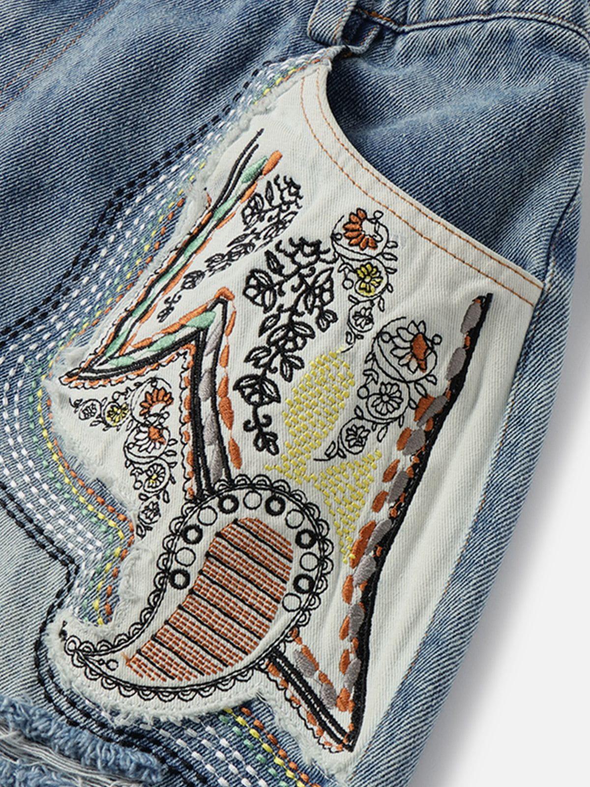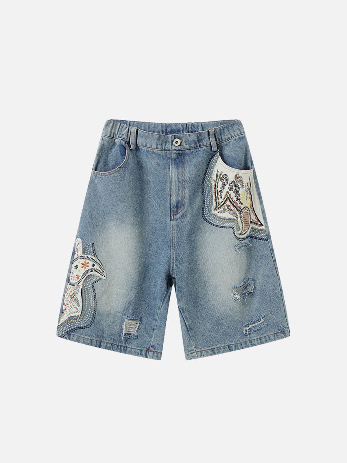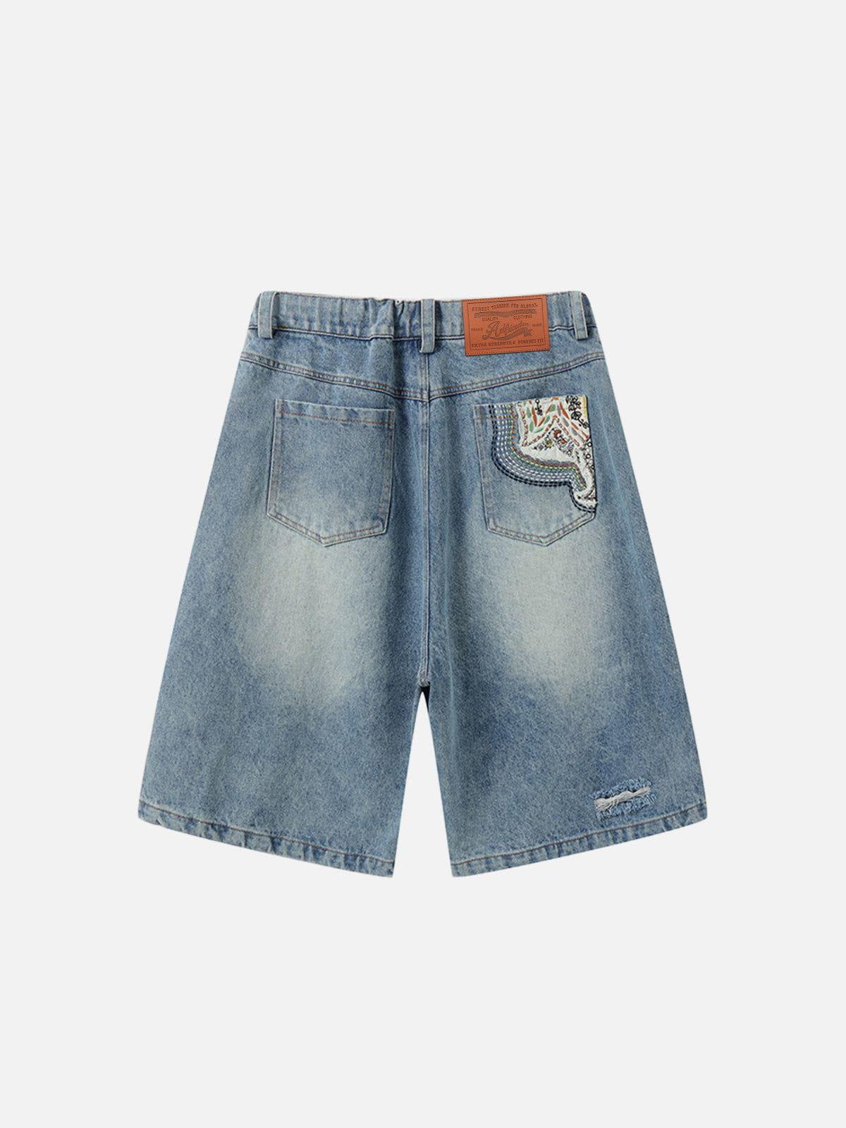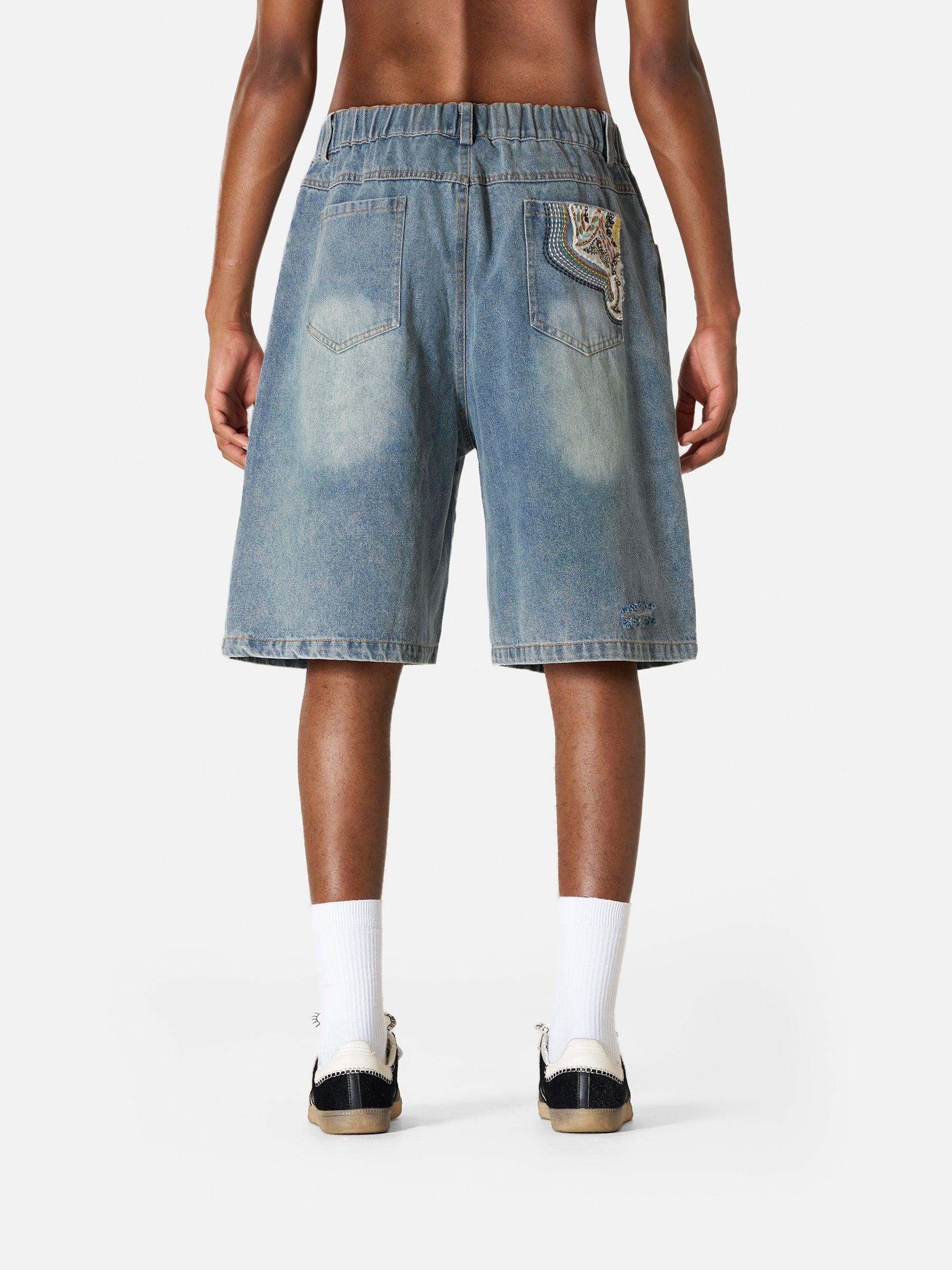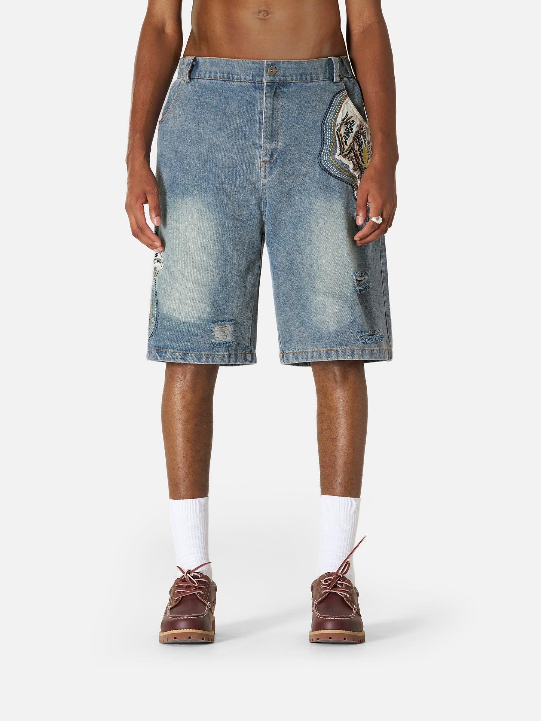 Add a playful touch to your summer look with these jorts! Featuring cute pocket patches, delicate botanical embroidery, and trendy distressed details, they’re perfect for effortless casual vibes. Material: 85% Cotton 15% Polyester. Clothing details: Ethnic Applique. SIZE GUIDE