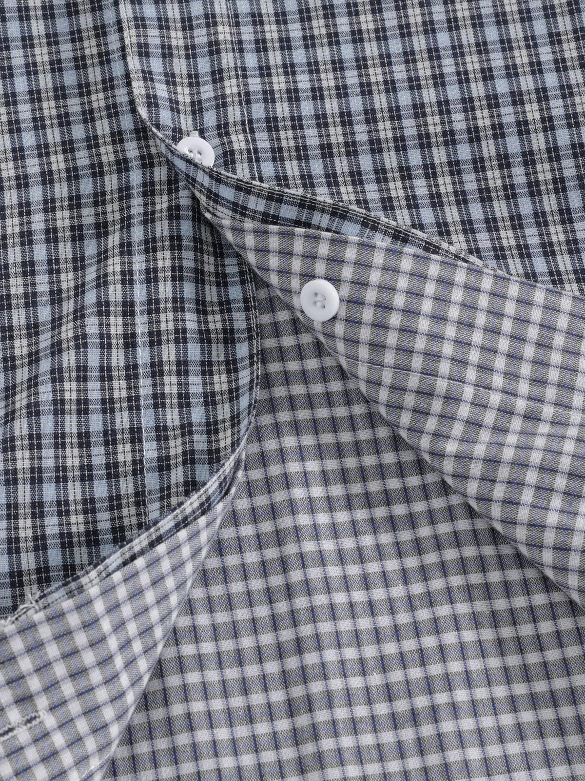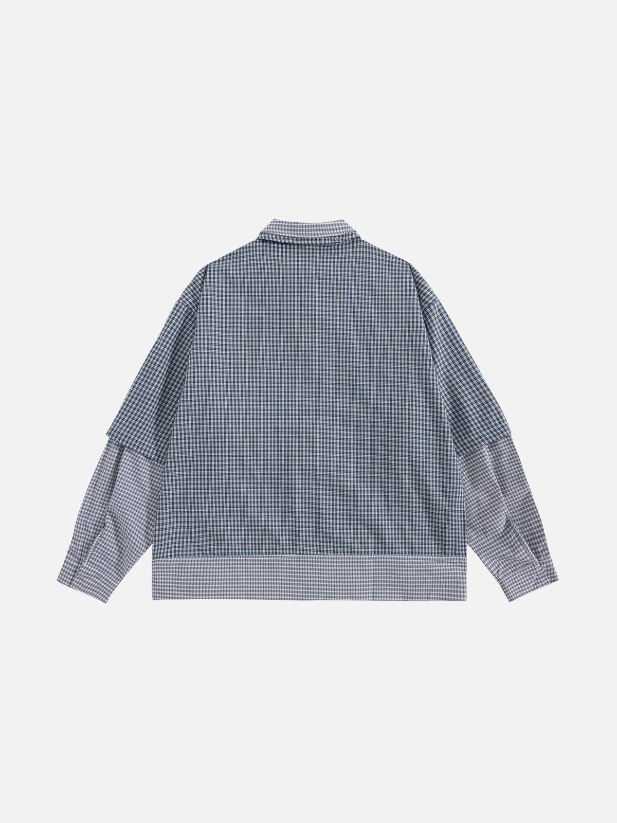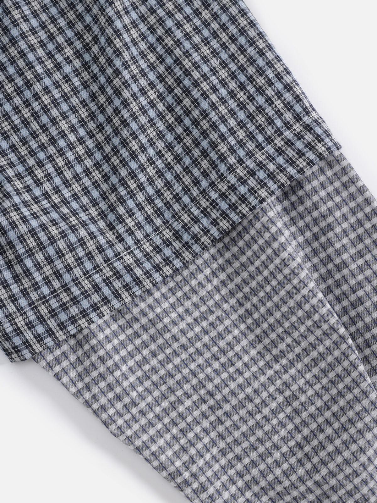 This long sleeve shirt features a faux layered construction that combines contrasting plaid panels into a single cohesive piece. The upper and lower sections use varied check patterns to create subtle visual depth without overwhelming the design. Finished with a classic button-front closure and structured collar, the layered effect is integrated seamlessly through clean stitching and balanced proportions, highlighting the garment’s construction and pattern interplay. Material: 50% Cotton 50% Polyester. Clothing details: Plaid. SIZE GUIDE