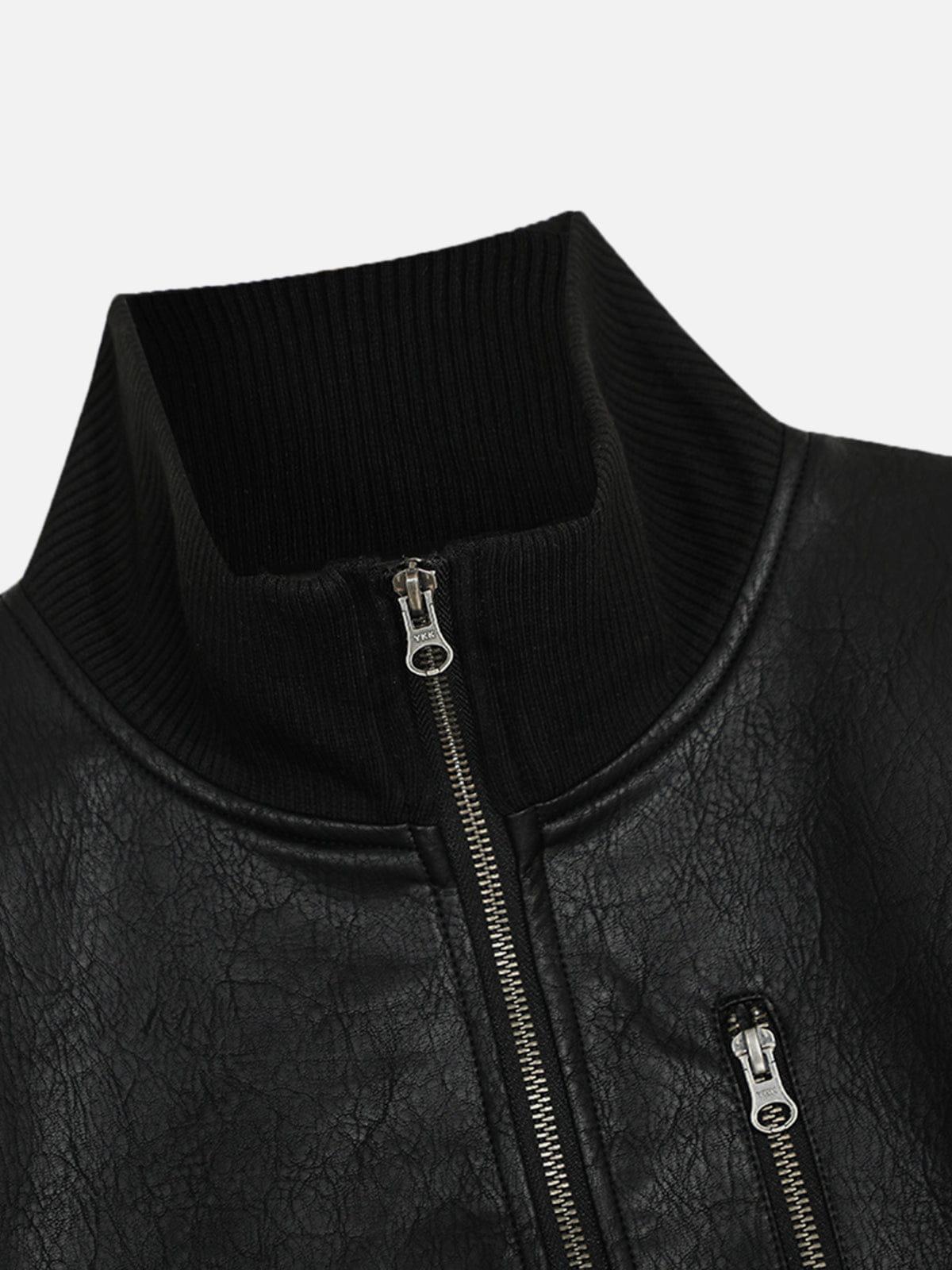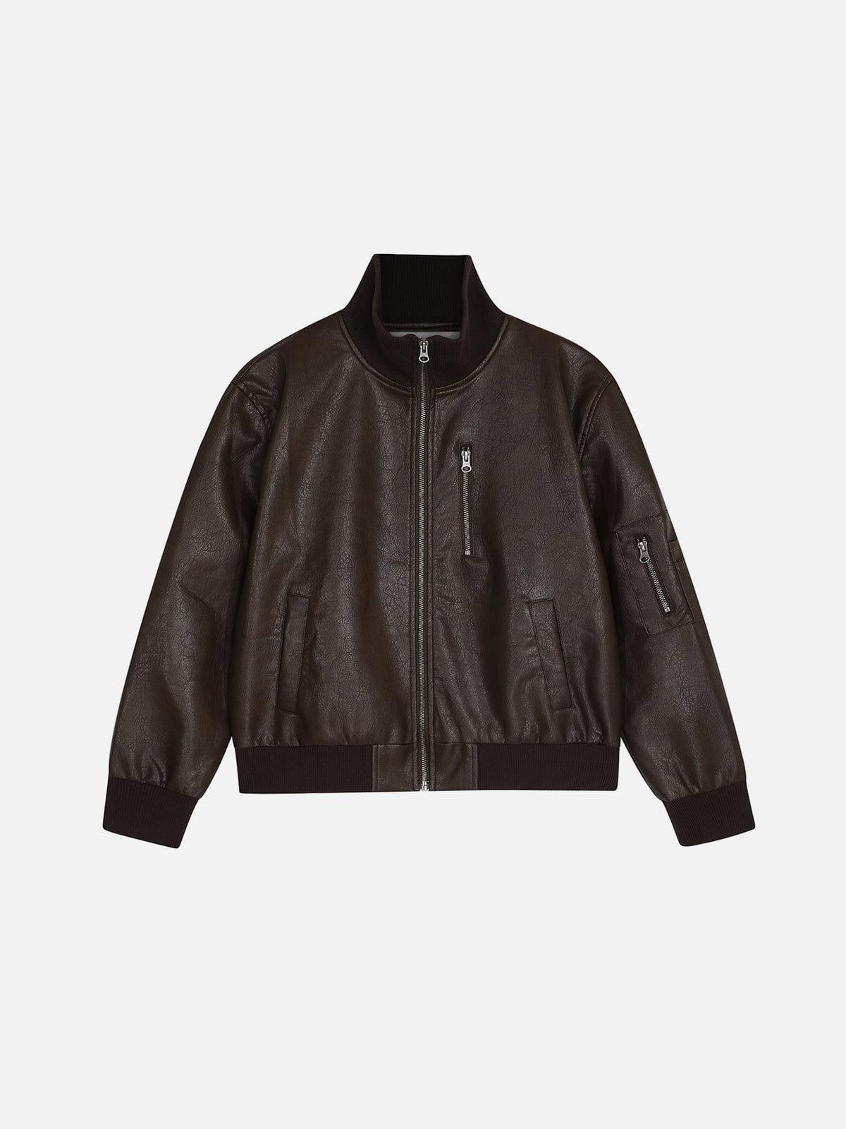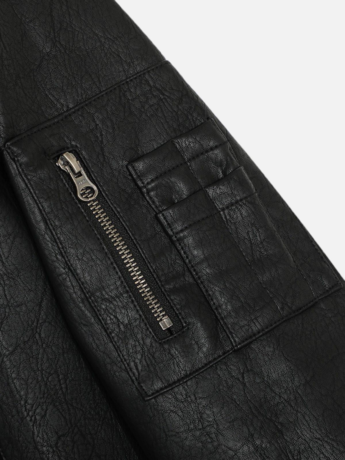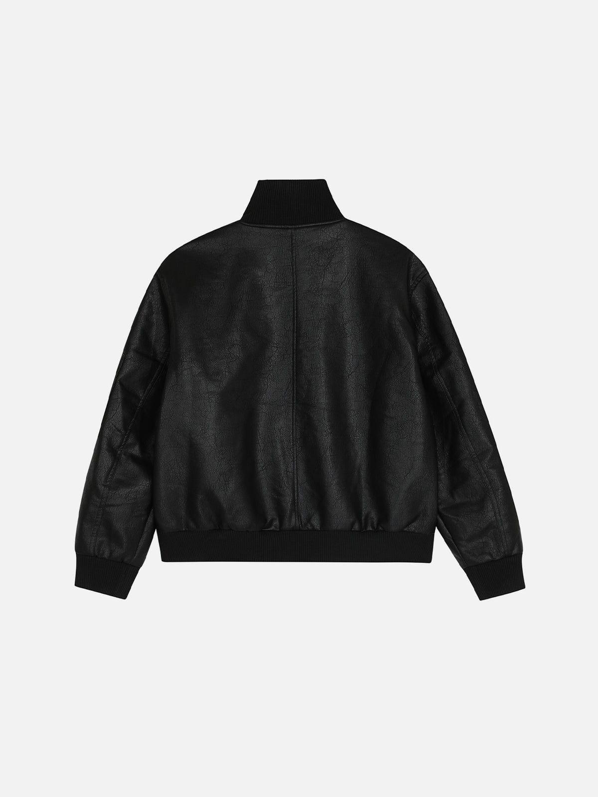 Crafted with a smooth faux leather finish, this bomber jacket brings a clean, modern edge to classic streetwear. The structured silhouette balances toughness and versatility, making it easy to layer over everyday looks while keeping a sharp, confident attitude.Material: 50% Polyurethane 50% Polyester.Clothing details: Faux Leather.SIZE GUIDE