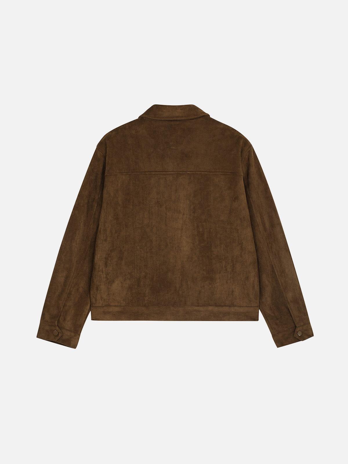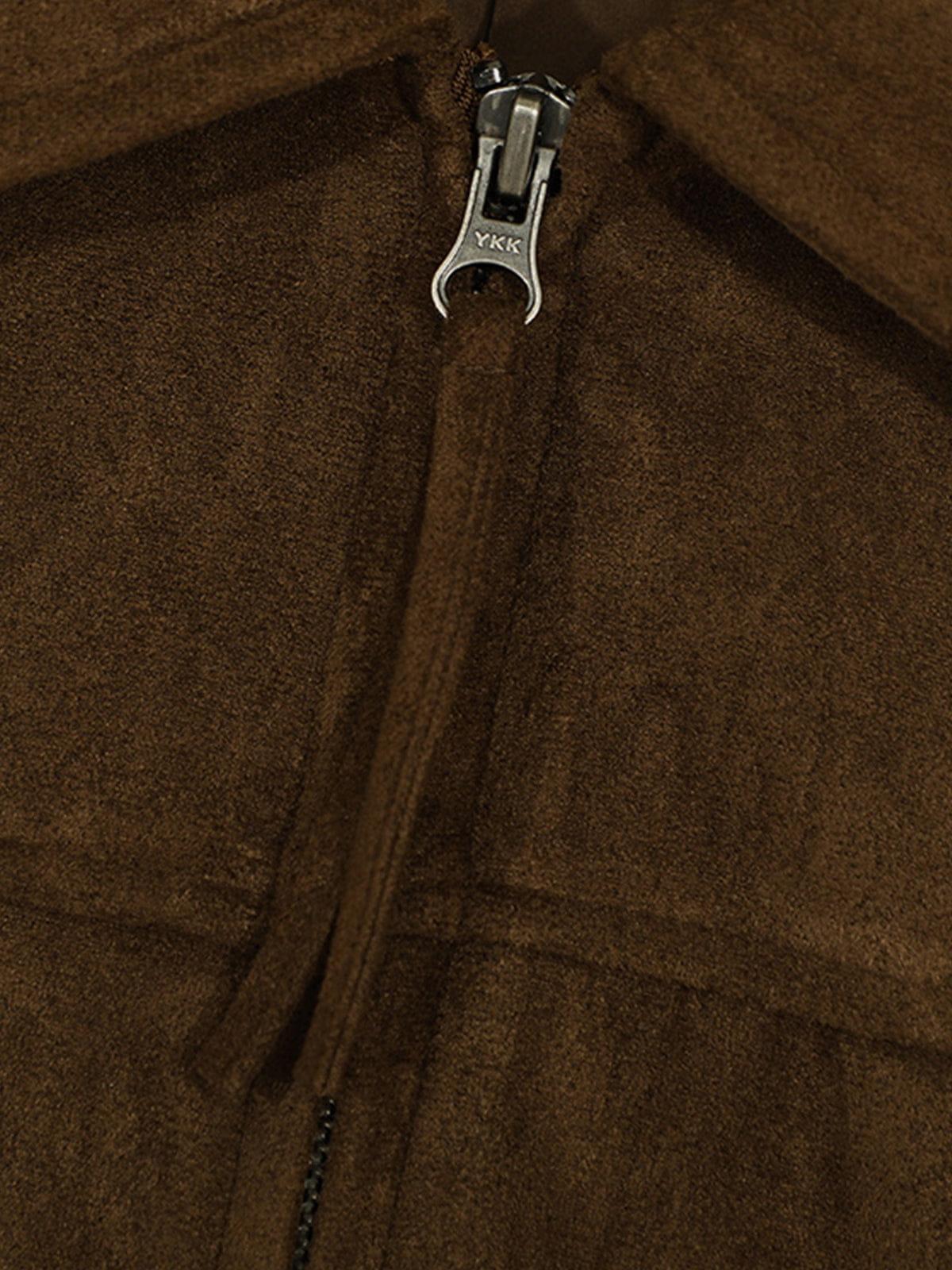 Made with a soft faux suede surface, this zip jacket features a clean collar design and a structured silhouette. The subtle texture variation adds depth, while the full zip closure and streamlined seams keep the look minimal and versatile. Easy to layer for everyday wear without relying on heavy detailing.Material: 95% Polyester 5% Spandex.Clothing details: Faux Suede.SIZE GUIDE