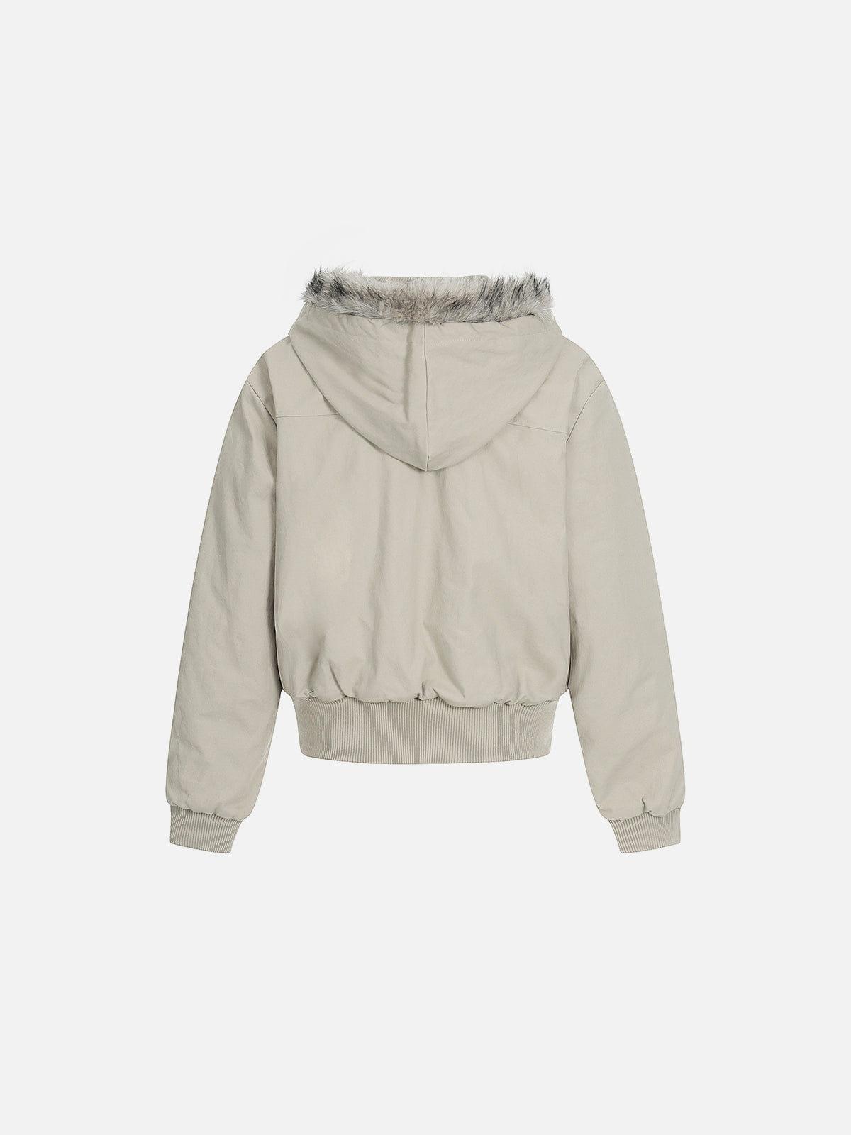This zip-up coat features a plush fur hood that adds warmth and texture to a clean, structured design. Subtle panel lines shape the body naturally, while the relaxed construction keeps it comfortable for everyday layering. Balanced and easy to wear, it delivers a steady street presence without feeling bulky. Material: 100% Cotton. Clothing details: Fur Hooded. SIZE GUIDE