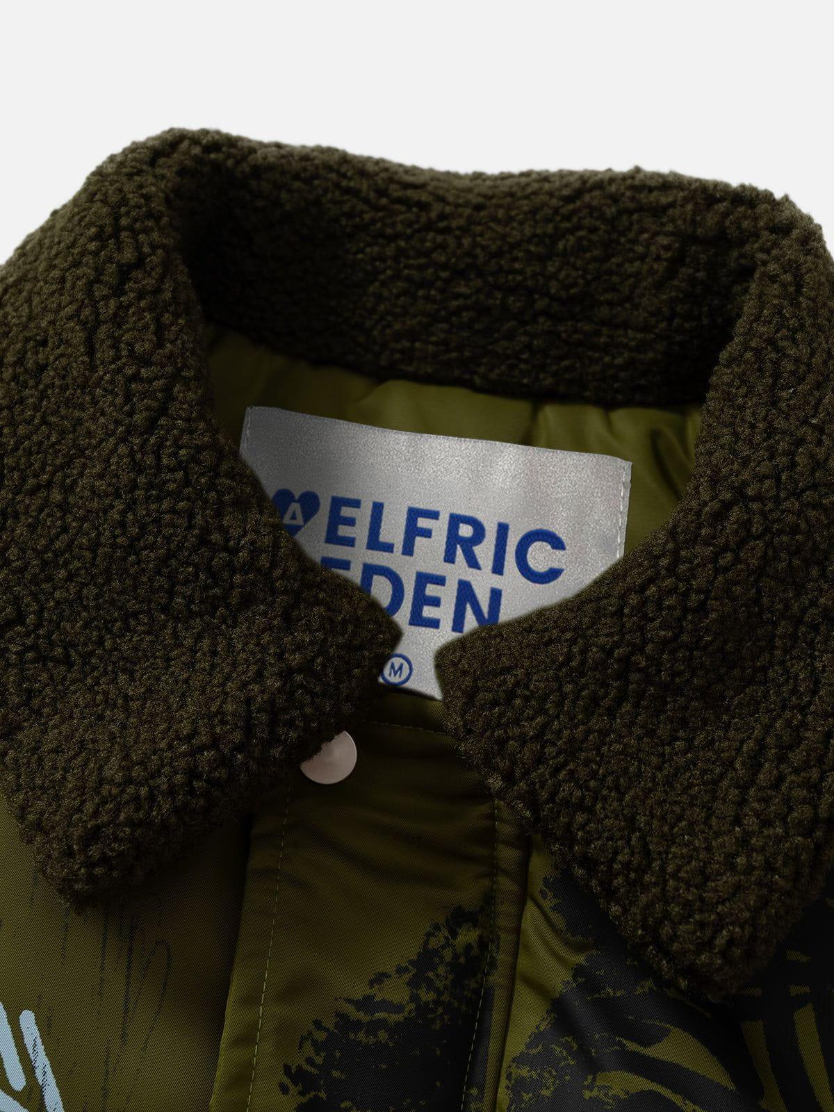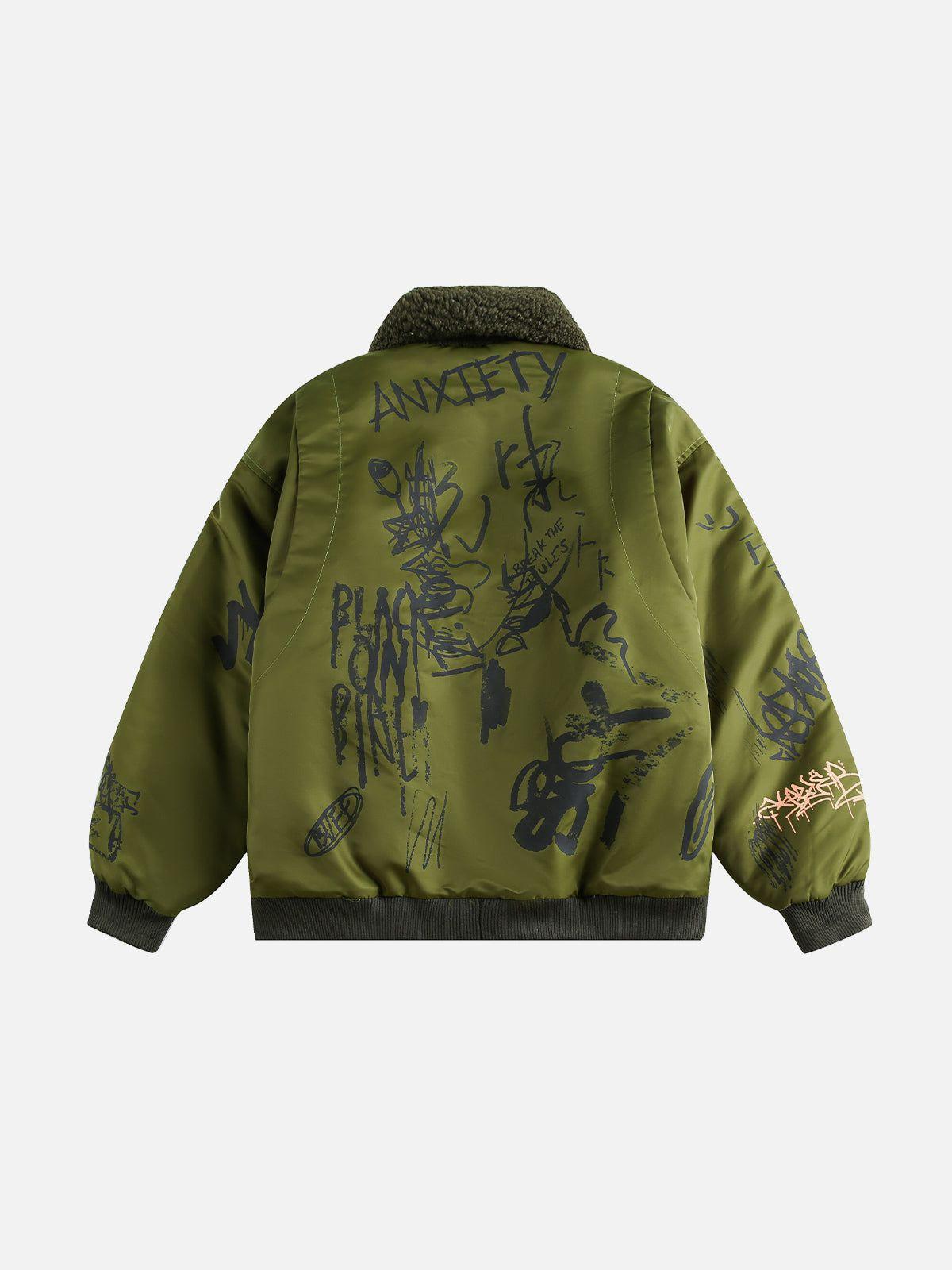The Graffiti Sherpa Collar Coat showcases bold graffiti graphic paired with a soft sherpa collar for a distinctive urban edge. Crafted with attention to detail, it delivers a unique blend of warmth and street-inspired attitude. Material: 100% Nylon. Clothing details: Sherpa Collar, Graffiti Graphic. SIZE GUIDE