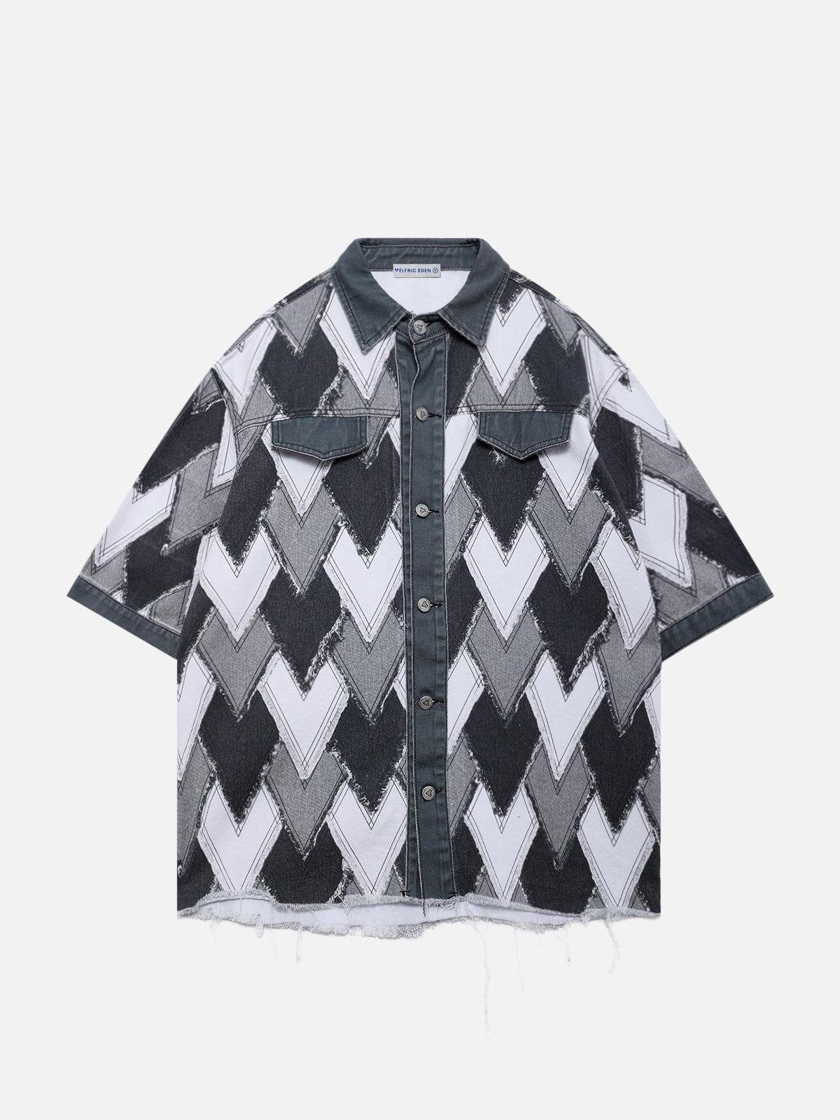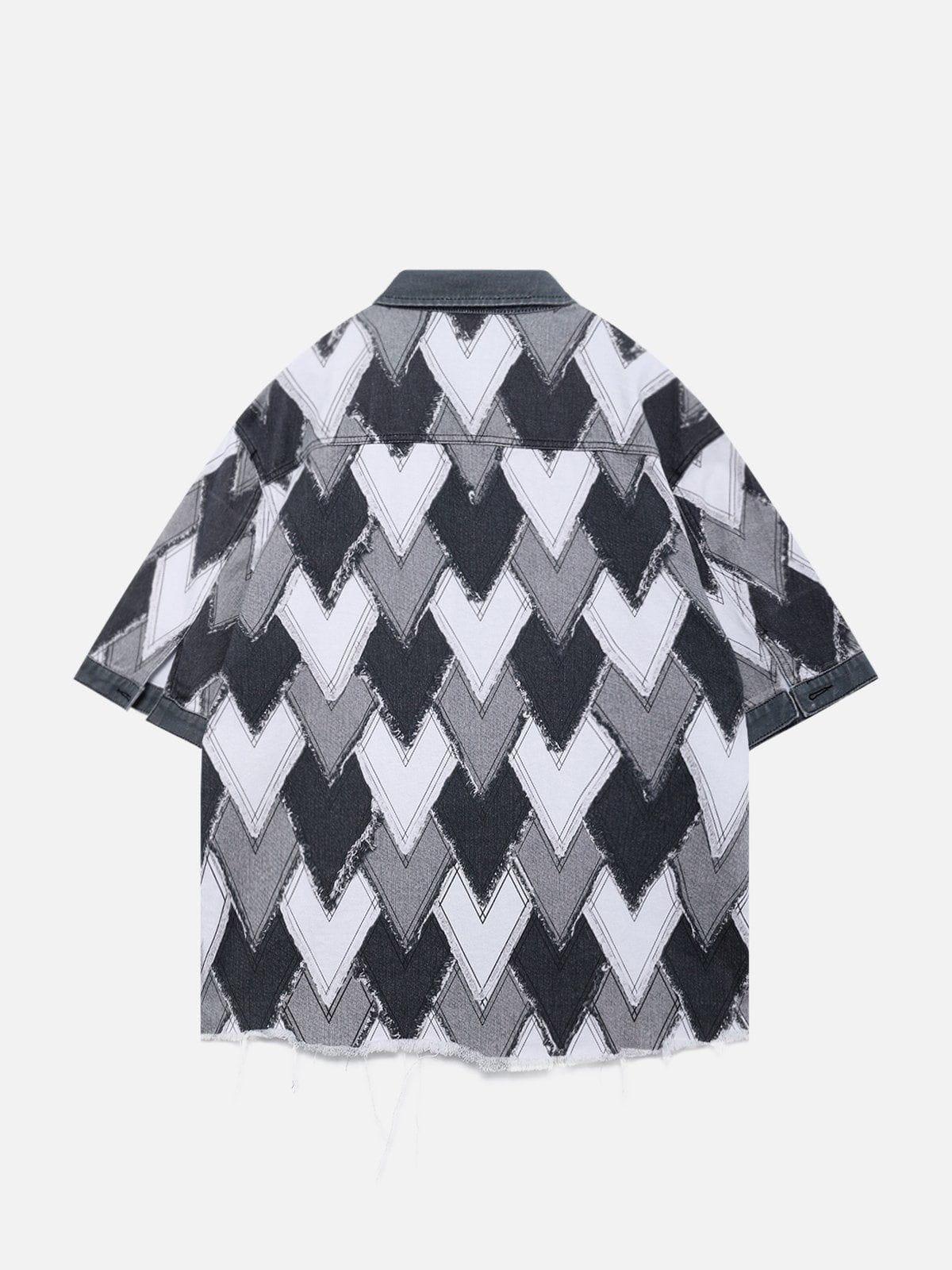 This denim-style shirt features an all-over heart-shaped patchwork design, with playful tassel details dancing around the edges, telling a story about freedom and pursuit. Embark on a dream-chasing journey with it, making every day full of passion and motivation. Material: 100% Cotton. Clothing details: Fringe. SIZE GUIDE