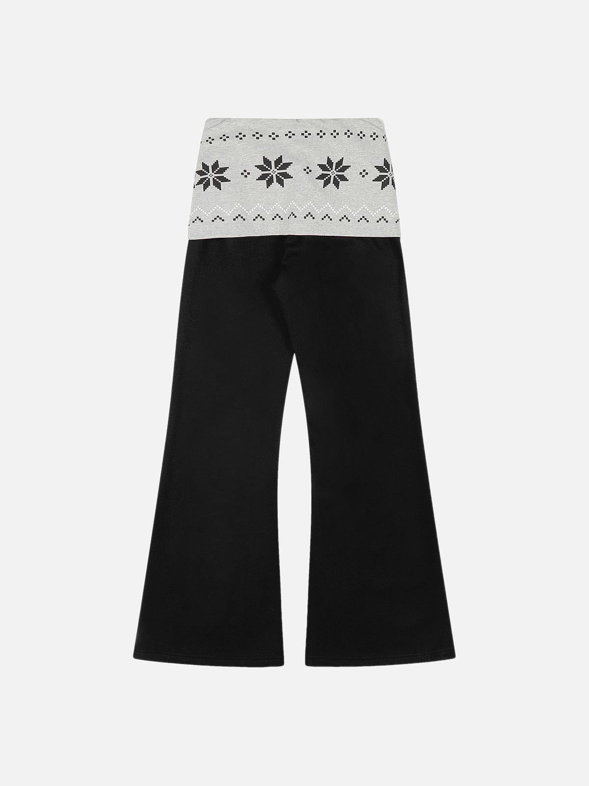 Designed with a relaxed baggy silhouette, these sweatpants feature a soft knit foldover waistband with a winter-inspired geometric pattern, creating a clear contrast in texture and structure. The wide-leg drape keeps the fit easy and fluid, while the folded waist detail adds visual layering and a subtle statement to everyday styling. Material: 60% Polyester 40% Cotton. Clothing details: Foldover Waist. SIZE GUIDE