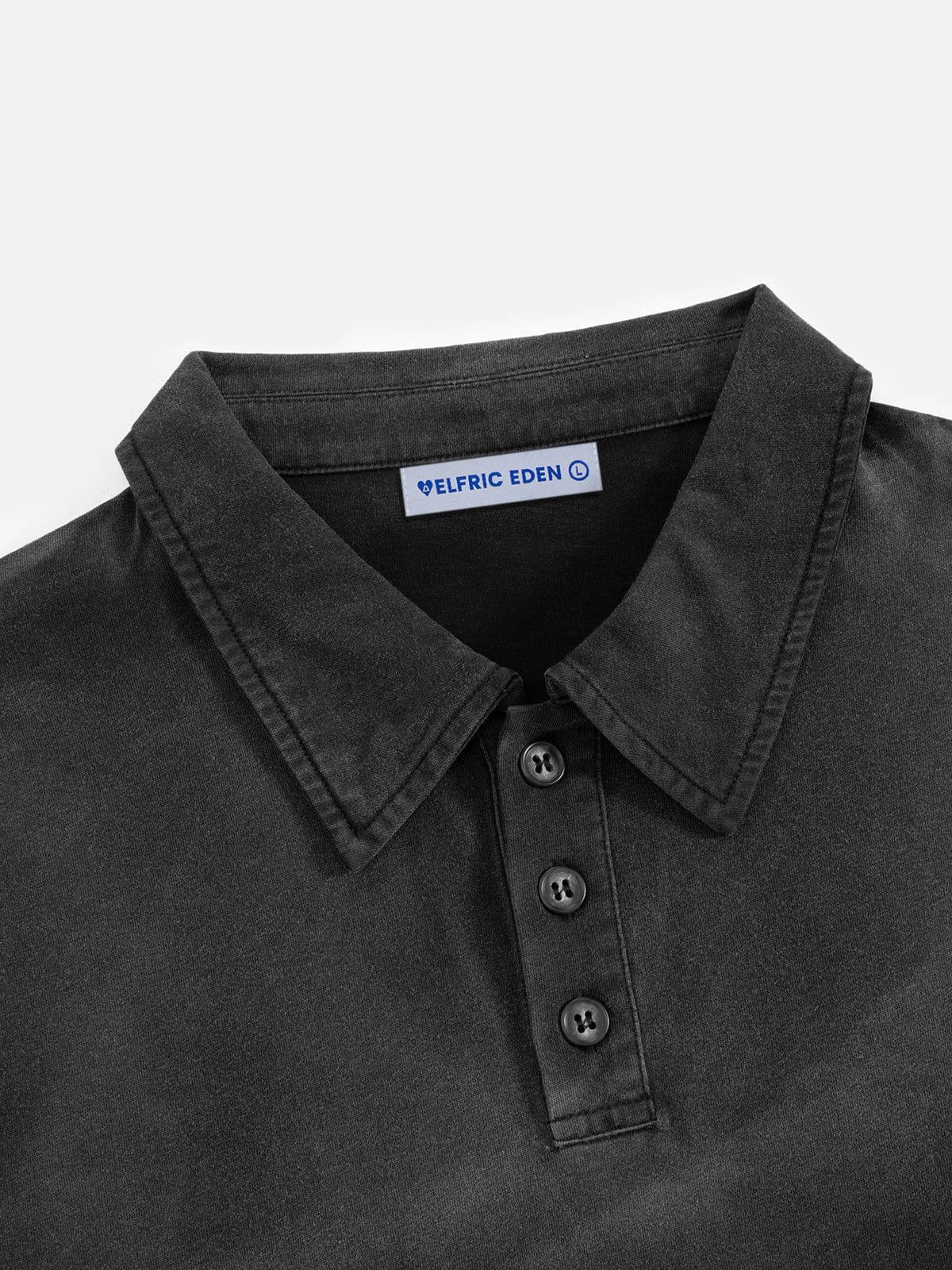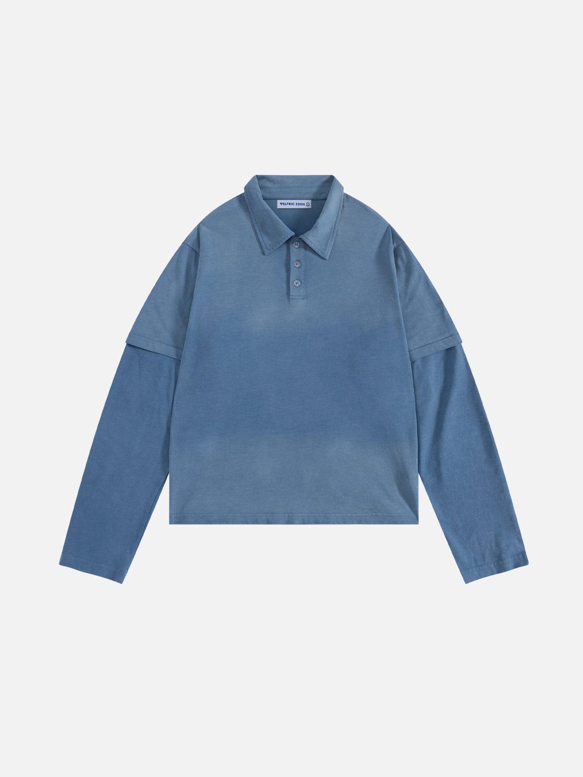 Designed with a layered construction, this long sleeve tee features a short-sleeve polo-style outer layer paired with an integrated inner sleeve. The washed finish creates a soft, worn-in texture, while the button placket and relaxed proportions give it a clean, everyday structure suitable for standalone wear or layering.Material: 100% Cotton.Clothing details: Washed.SIZE GUIDE