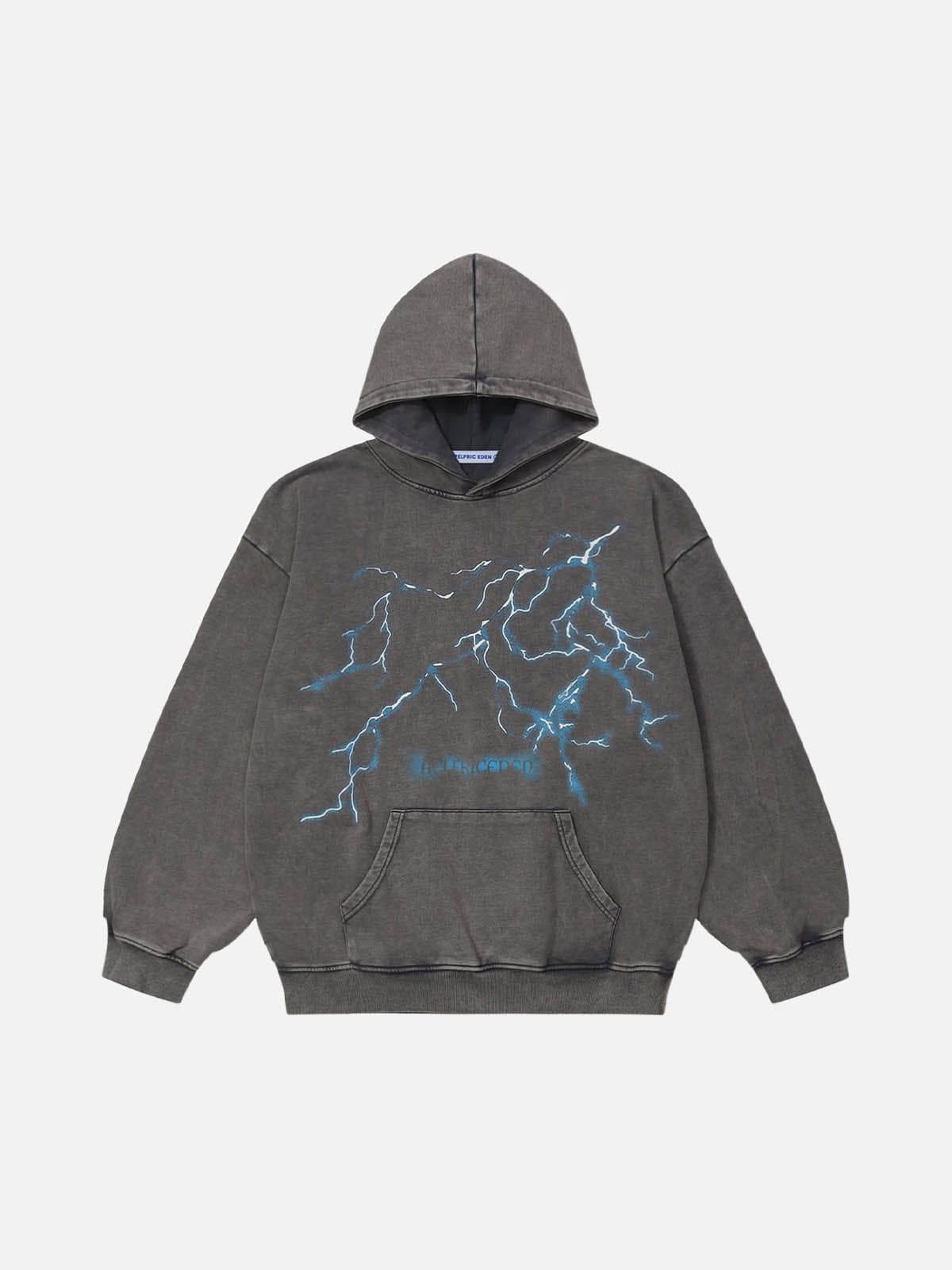 Our signature lightning ⚡️ bolt imprint takes center stage, the intricate detailing and dynamic design. Undergoes a meticulous water-washing process, resulting in a textured, lived-in appearance. Material: 100% Cotton. Clothing details: Lightning Print, Washed Technology. SIZE GUIDE