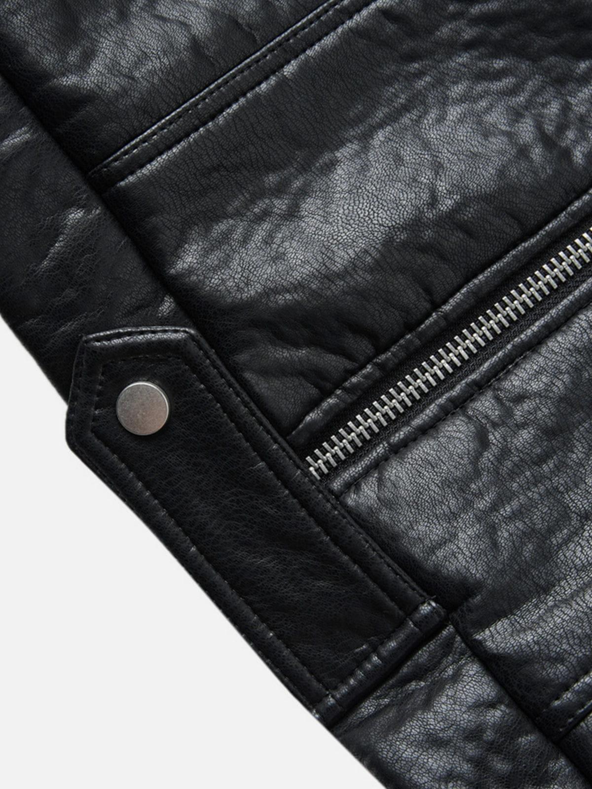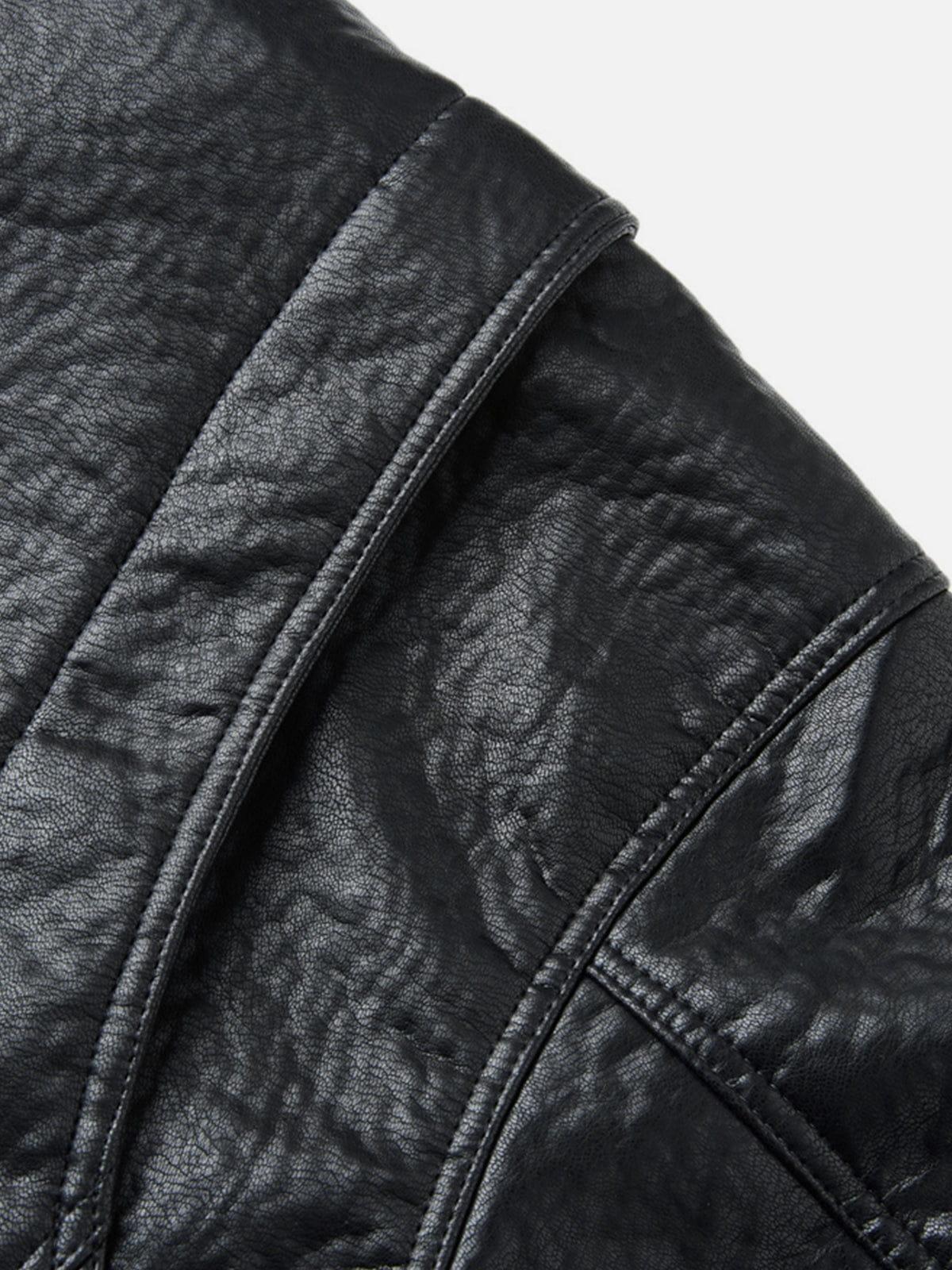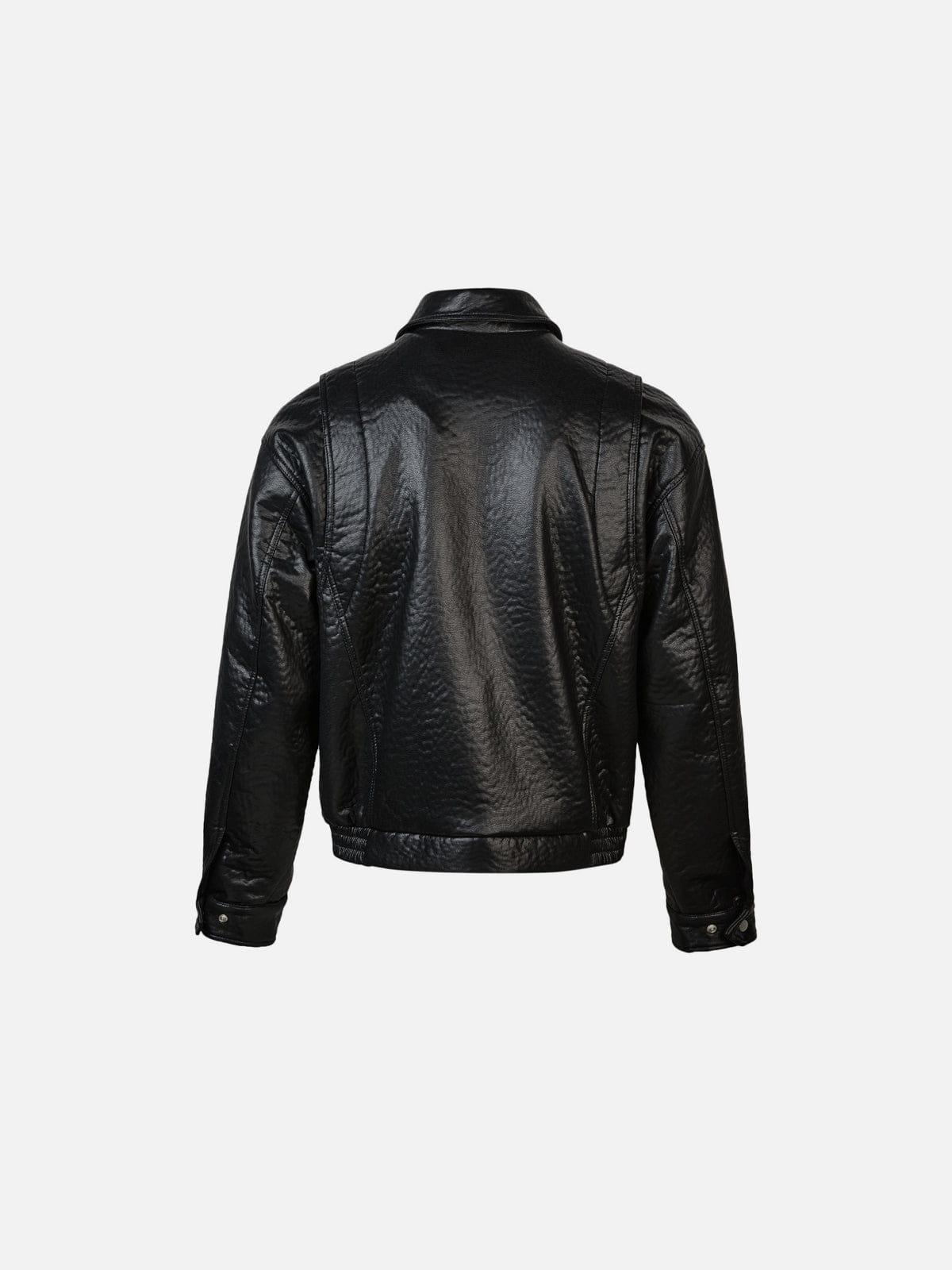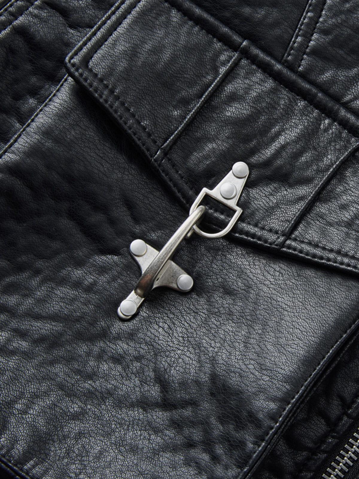 Sleek yet bold, this faux leather jacket stands out with oversized flap pockets and signature metal toggle hardware that adds a utilitarian edge. The structured silhouette and subtle sheen elevate everyday fits, making it an easy statement layer with attitude. Material: 100% Polyester. Clothing details: Metal Toggle, Big Pocket. SIZE GUIDE