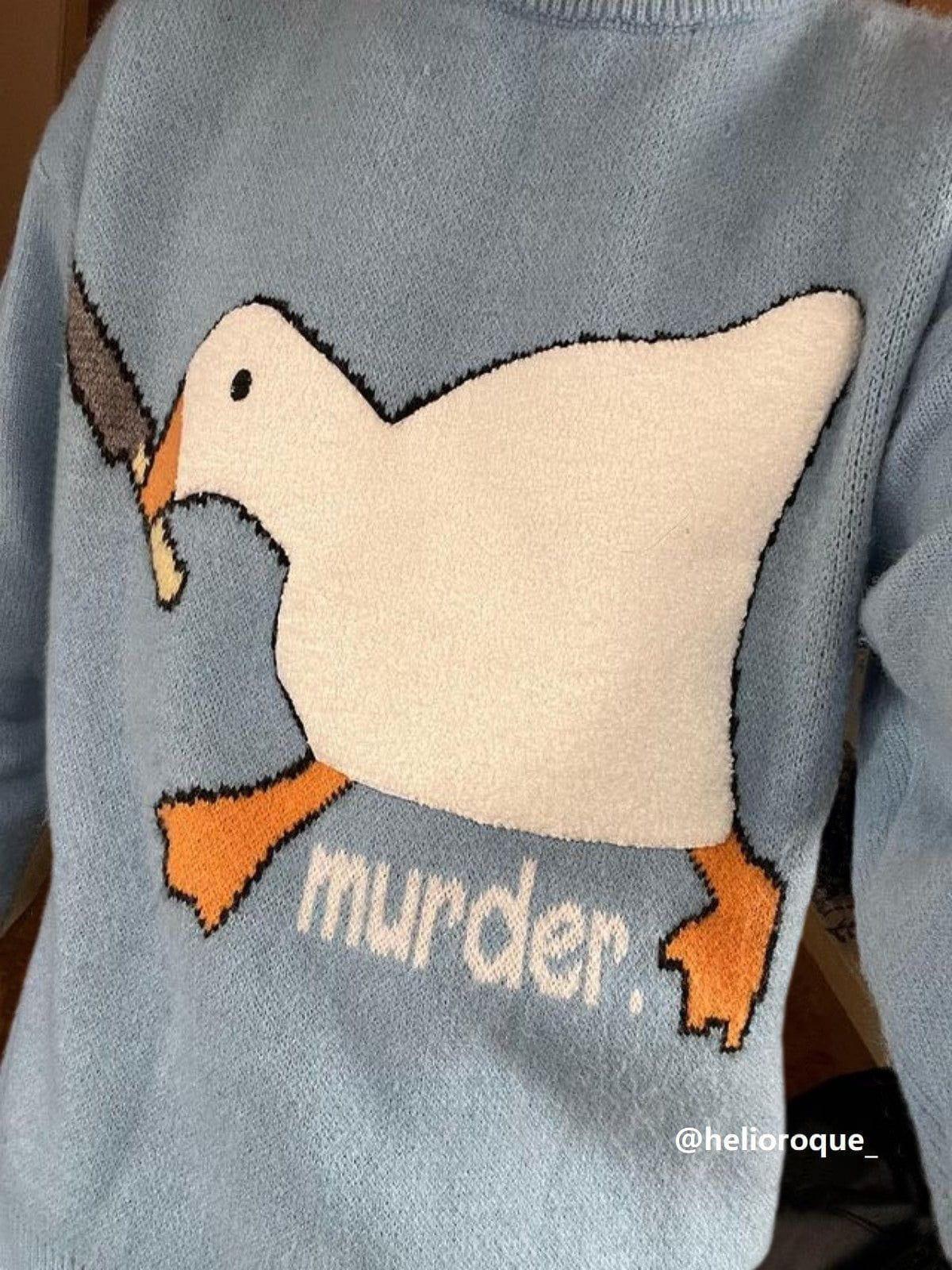It's time to hit refresh on your sweater inventory! This Cute Murder Goose Pattern Knit Sweater brings you a strong fashion trend. With the combination of funny goose patterns and comfort, whether you are a fashion match or a daily commute. This sweater will be your best choice. Product specifications: Produced by top brand partner suppliers. Three screening and review processes to ensure product quality. Material: Acrylic(52%), Nylon(28%), Polyester (20%) Clothing details: Cute Murder Goose. MODEL INFO Female 5'4 (162cm) 110 lbs (50kg) Size: S (Loose Style) Male 5'10 (178cm) 150 lbs (68kg) Size: L (Loose Style) SIZE GUIDE