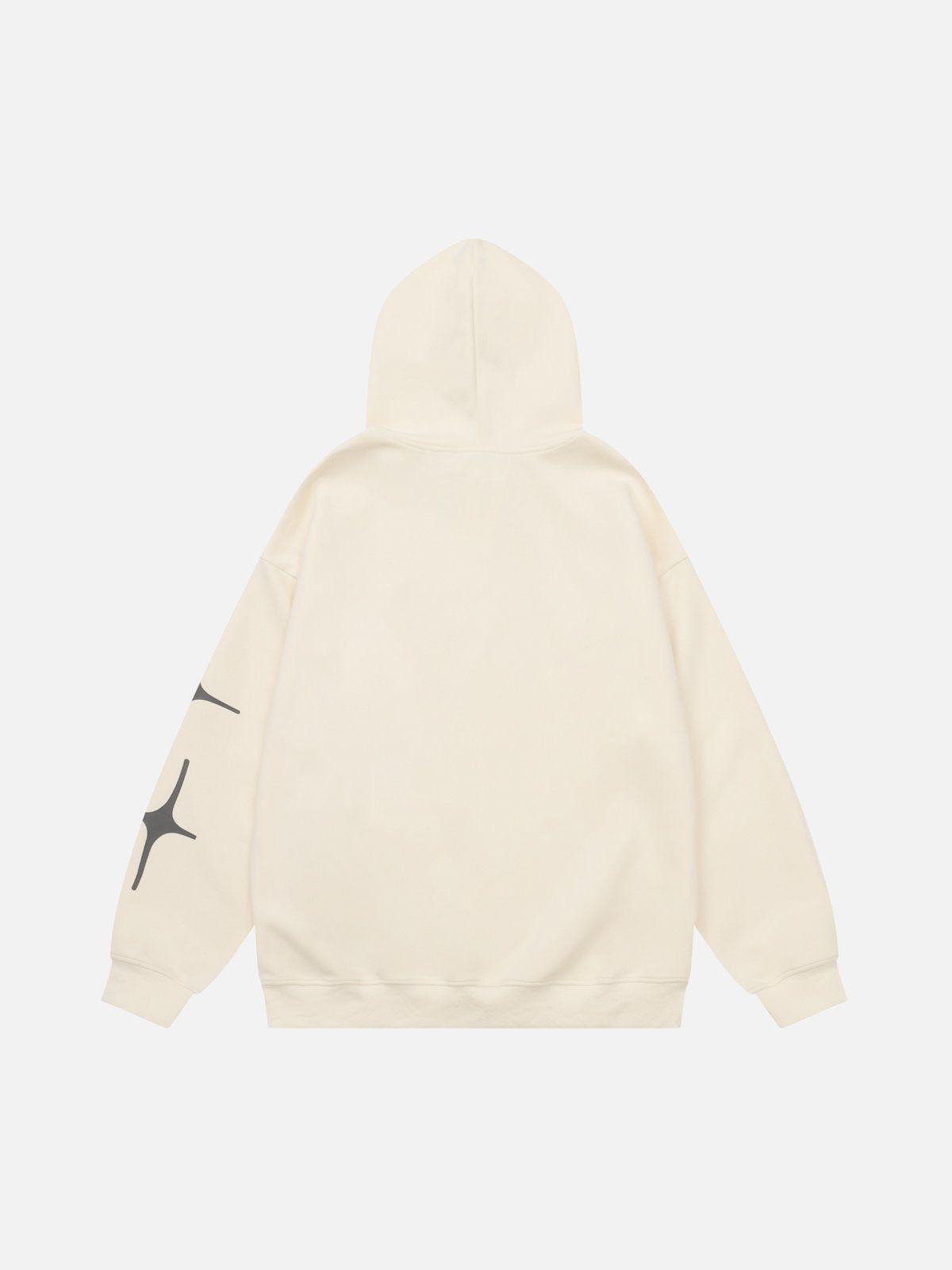This hoodie features a sleek star print that stands out against its minimalist base. The oversized fit and soft fabric provide casual comfort, while bold sleeve details add a modern edge. Perfect for effortless streetwear style. Material: 65% Cotton 35% Polyester. Clothing details: Graphic. SIZE GUIDE