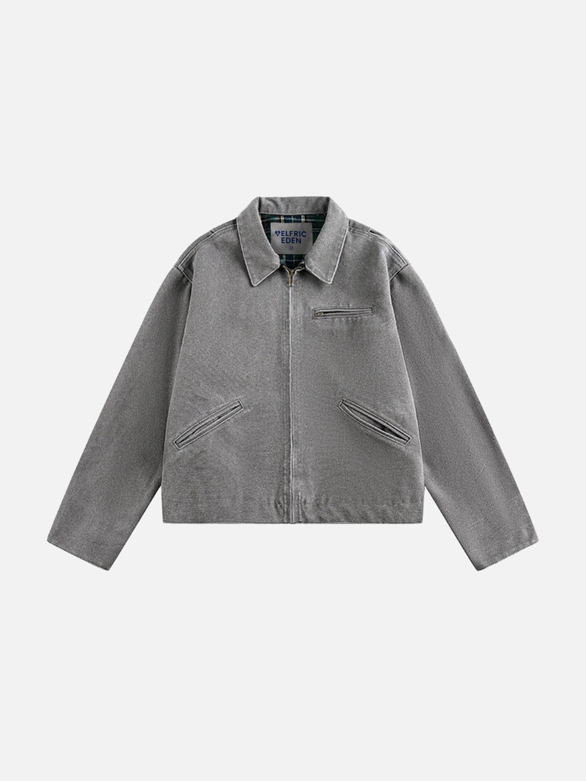 Designed with a contrast panel construction, this zip up jacket features a clean front with angled zip pockets and a structured collar. The back panel adds subtle layering to the silhouette, while the full zip closure keeps the look practical and easy to wear. A straightforward outer layer suited for everyday rotation. Material: 60.9% Polyester, 33.3% Cotton, 5.8% Regenerated Fiber. Clothing details: Washed. SIZE GUIDE