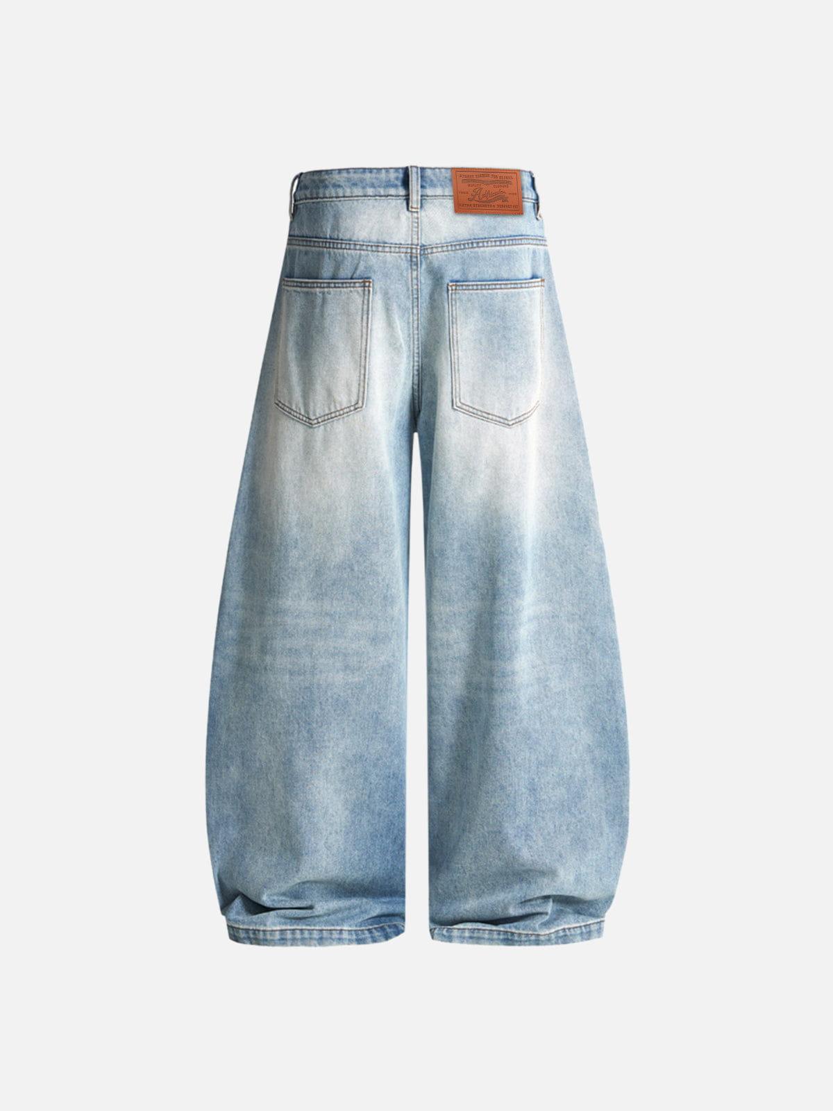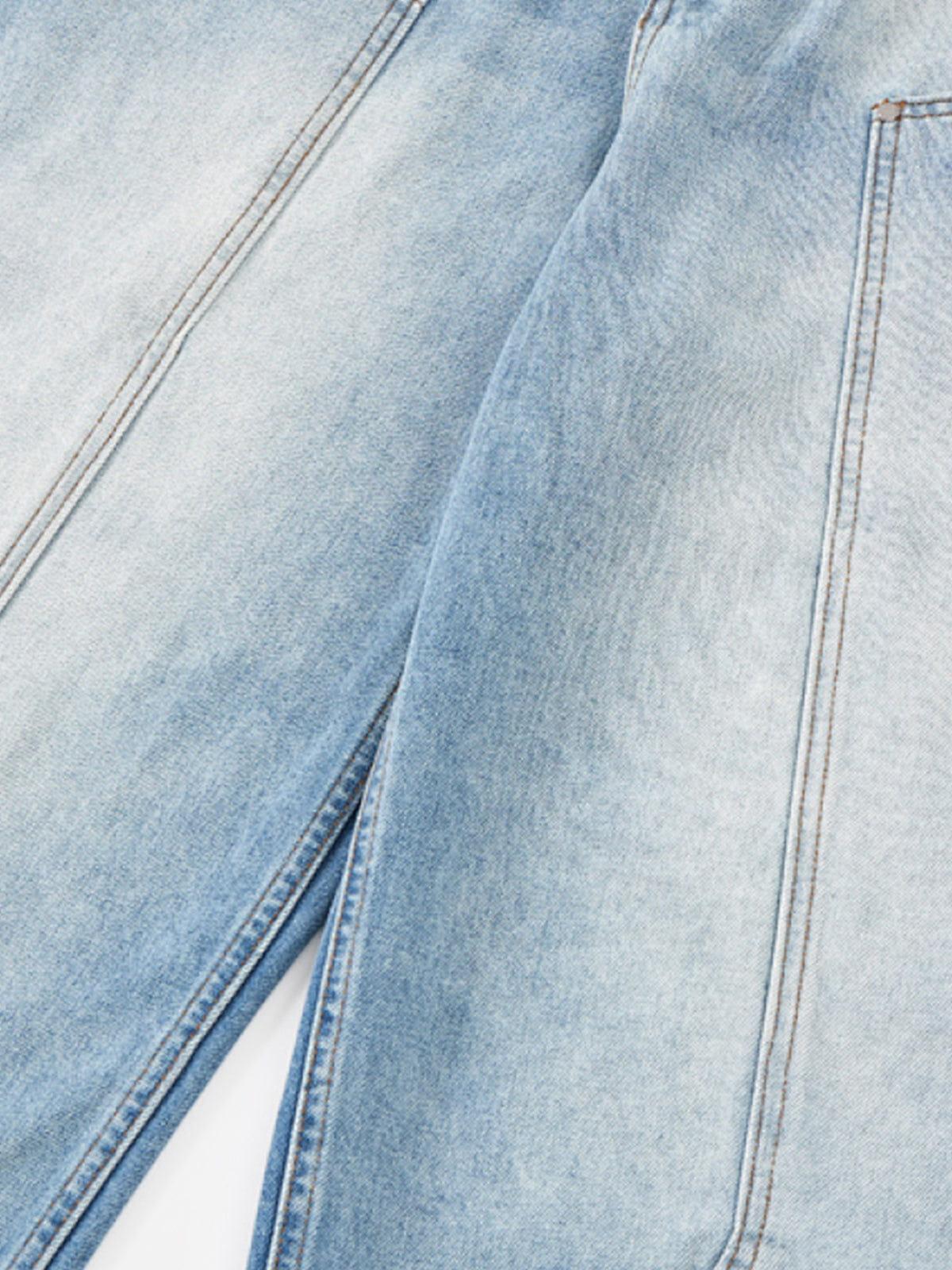 Built with a baggy barrel silhouette, these jeans feature curved seam panels that create a rounded shape and controlled volume through the leg. The washed denim finish delivers a soft, worn-in appearance, while the subtly tapered profile keeps the silhouette structured without feeling heavy. Designed for everyday wear with a distinct, sculpted visual presence. Material: 77.7% Cotton, 12.2% Polyester, 10.1% Regenerated Fiber. Clothing details: Seam Panel. SIZE GUIDE