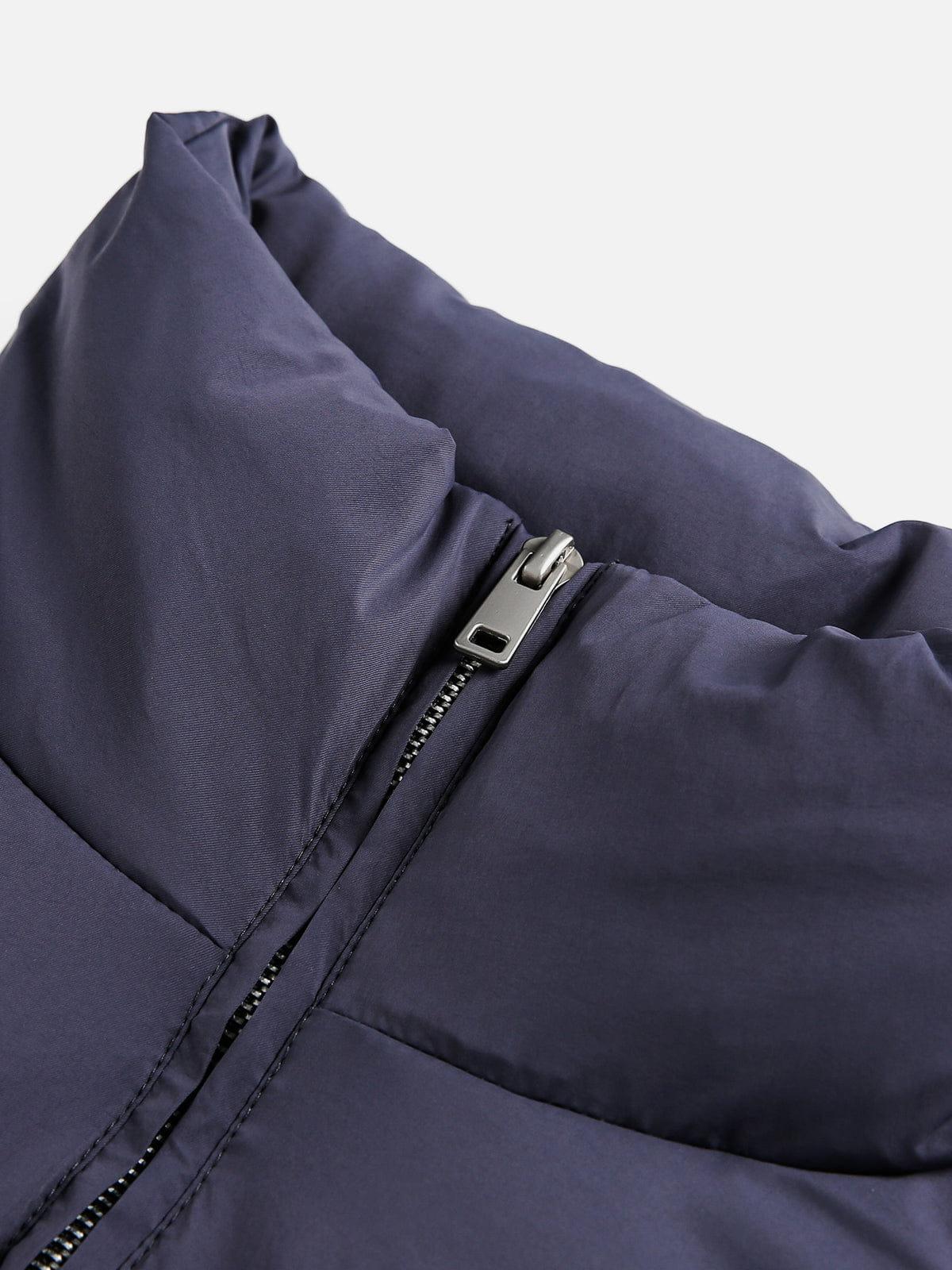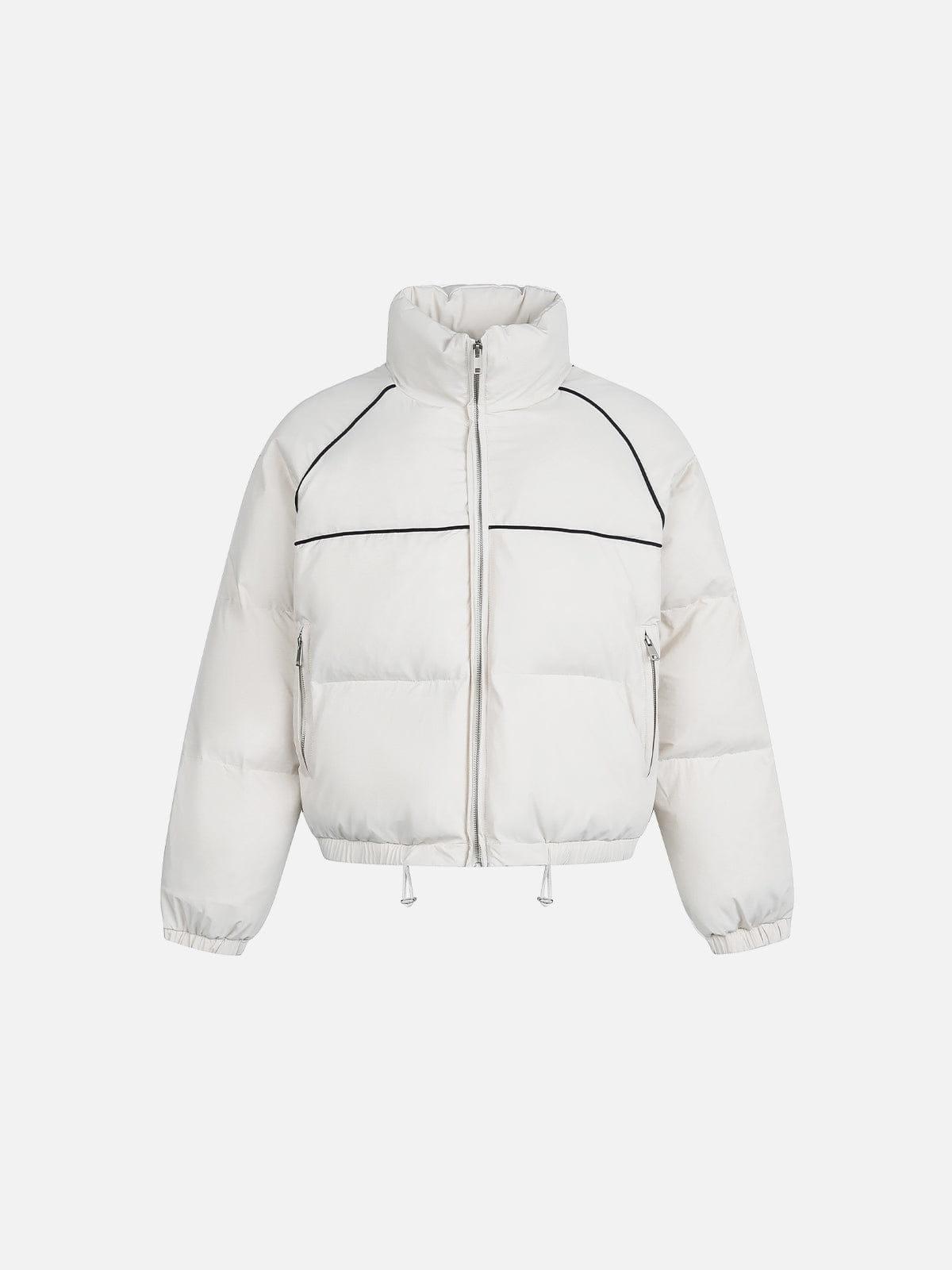 The Stand Collar Boxy Coat features sleek color-blocking line details that add structure and visual depth. Its clean stand collar and relaxed boxy silhouette create a refined balance between modern minimalism and streetwear edge. Material: 100% Nylon. Clothing details: Stand Collar, Color Blocking Line. SIZE GUIDE