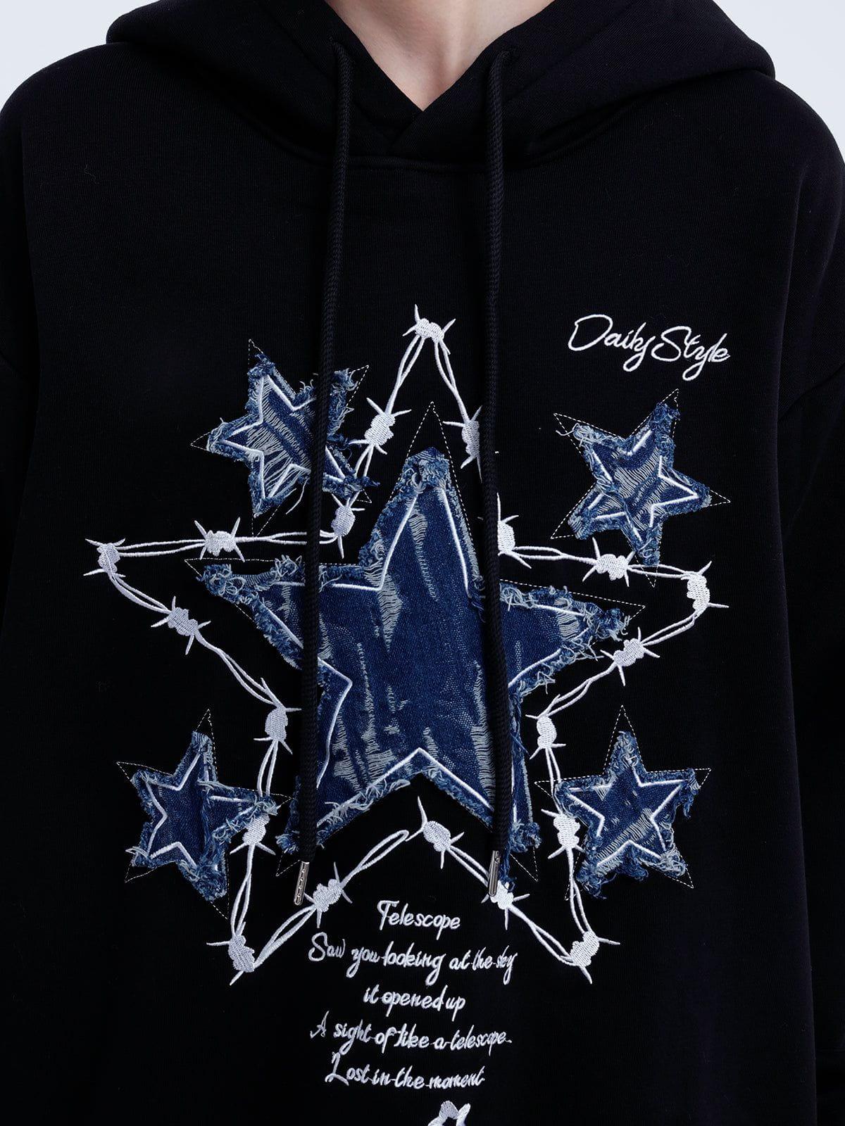 Embrace the cosmos with a central star surrounded by a constellation of smaller stars, creating an enchanting design. Crafted for comfort and style, this hoodie is a stellar addition to your wardrobe. Material: 75% Cotton 25% Polyester. Clothing details: Embroidery Thorny Star. 在 Instagram 查看这篇帖子 ‘k’ (@kayla_wiggins) 分享的帖子 @caydenvinson_ hoodie from @aelfricedenofficial #fitcheck #goodvibes ♬ original sound - Aidenandrade SIZE GUIDE