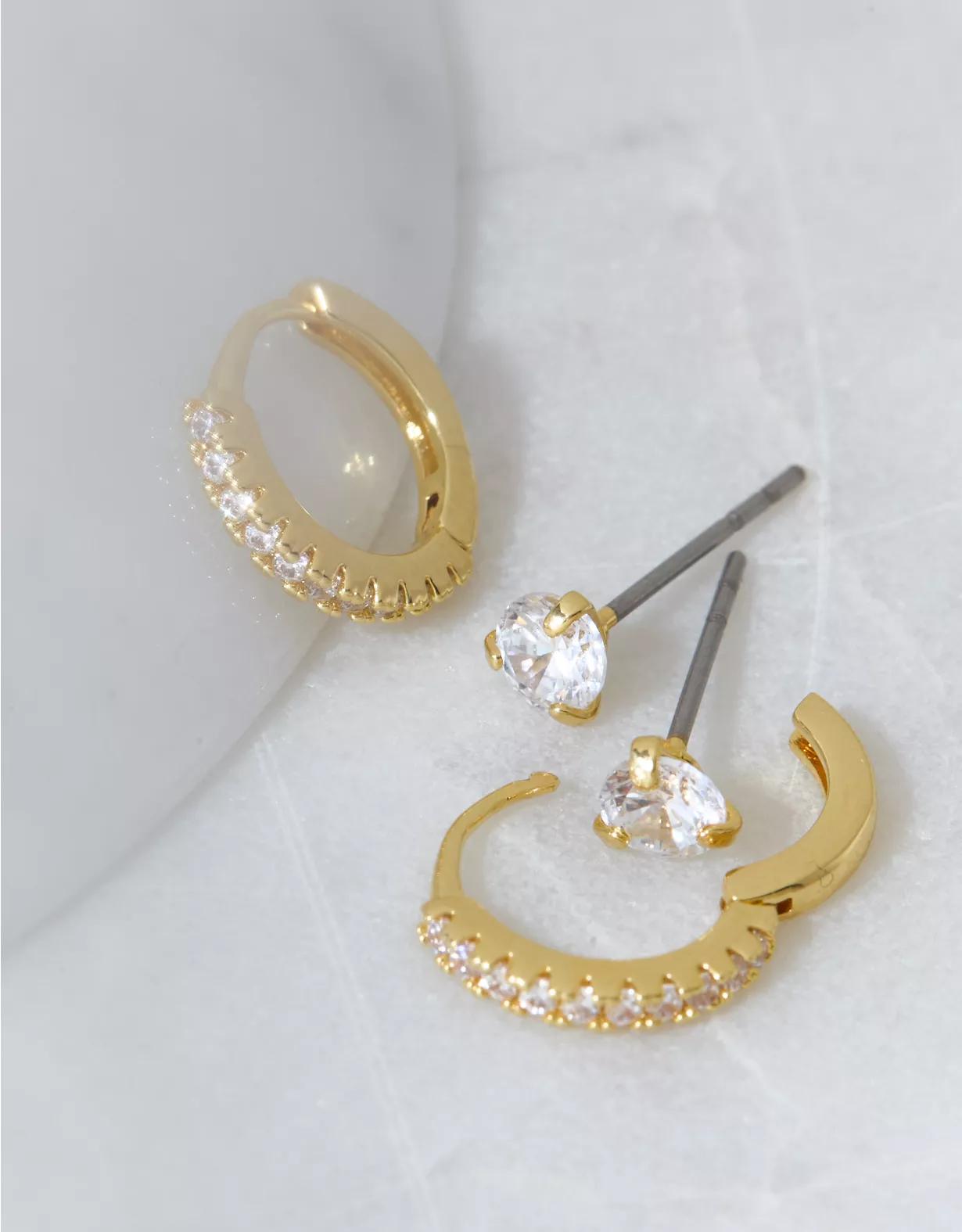 AEO Keepers Collection 14K Gold-Plated Stud & Pavé Hoop Earrings 2-Pack