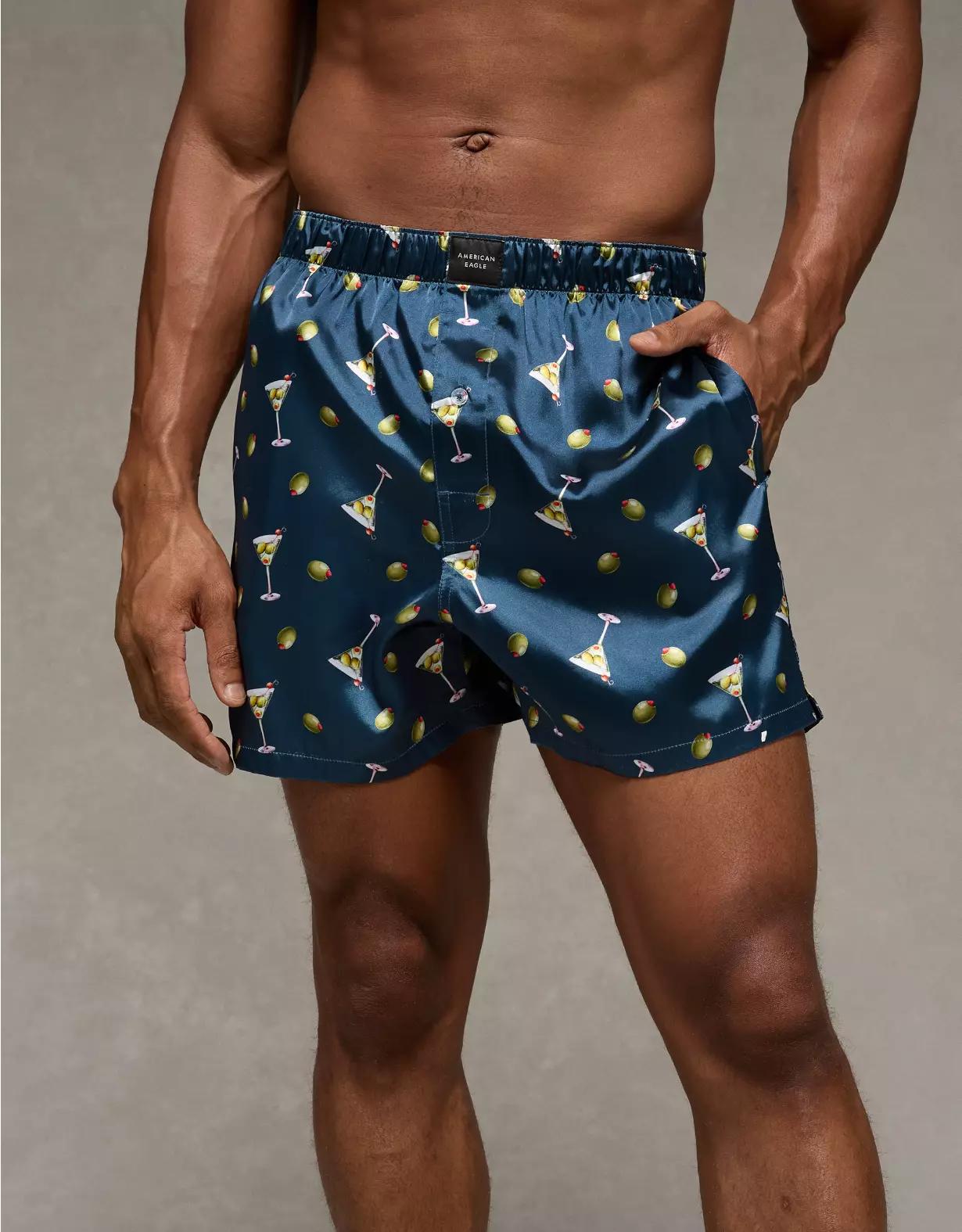 AEO Mens Solid Satin Pocket Boxer Short Mens