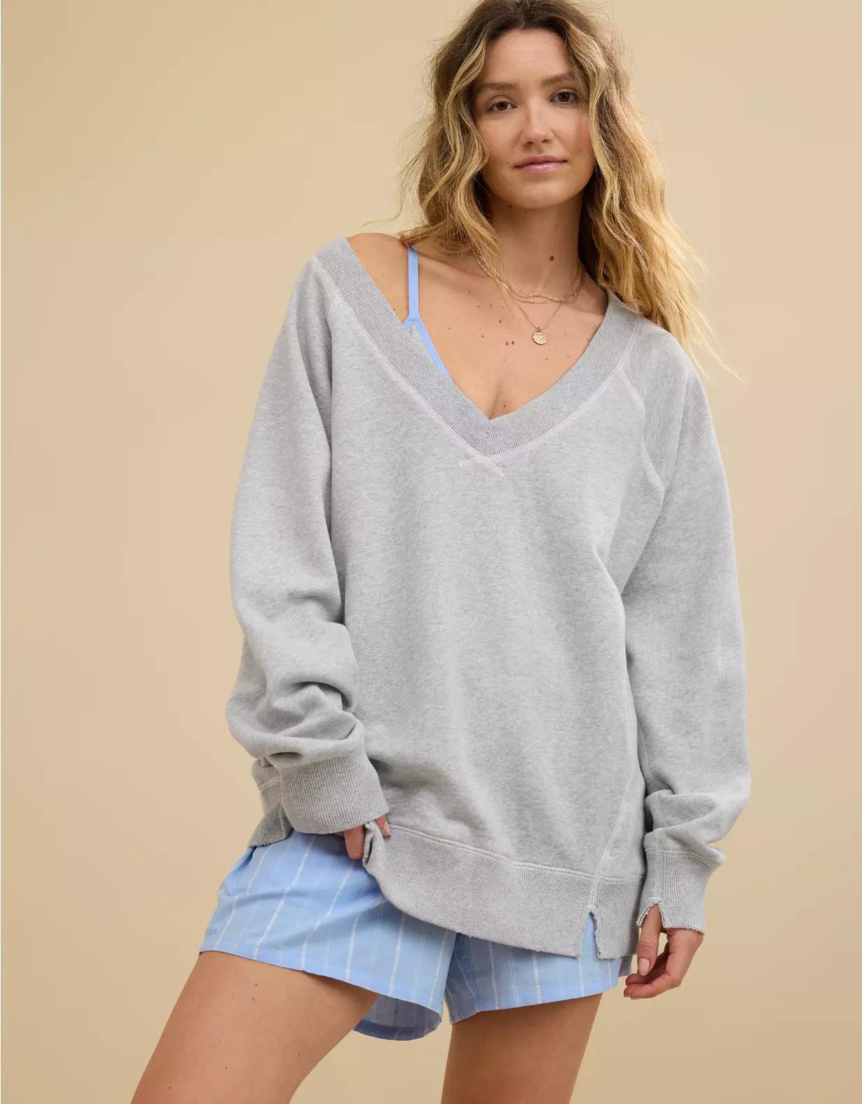The big love is back in its iconic double v-neckline, now with a super cozy drape and a textural & light fleecy update. We added deets to obsess over, too!
