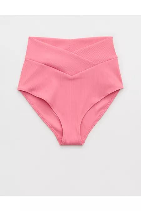 Aerie High Rise Full Coverage Crossover Ribbed Bikini Bottom Women's