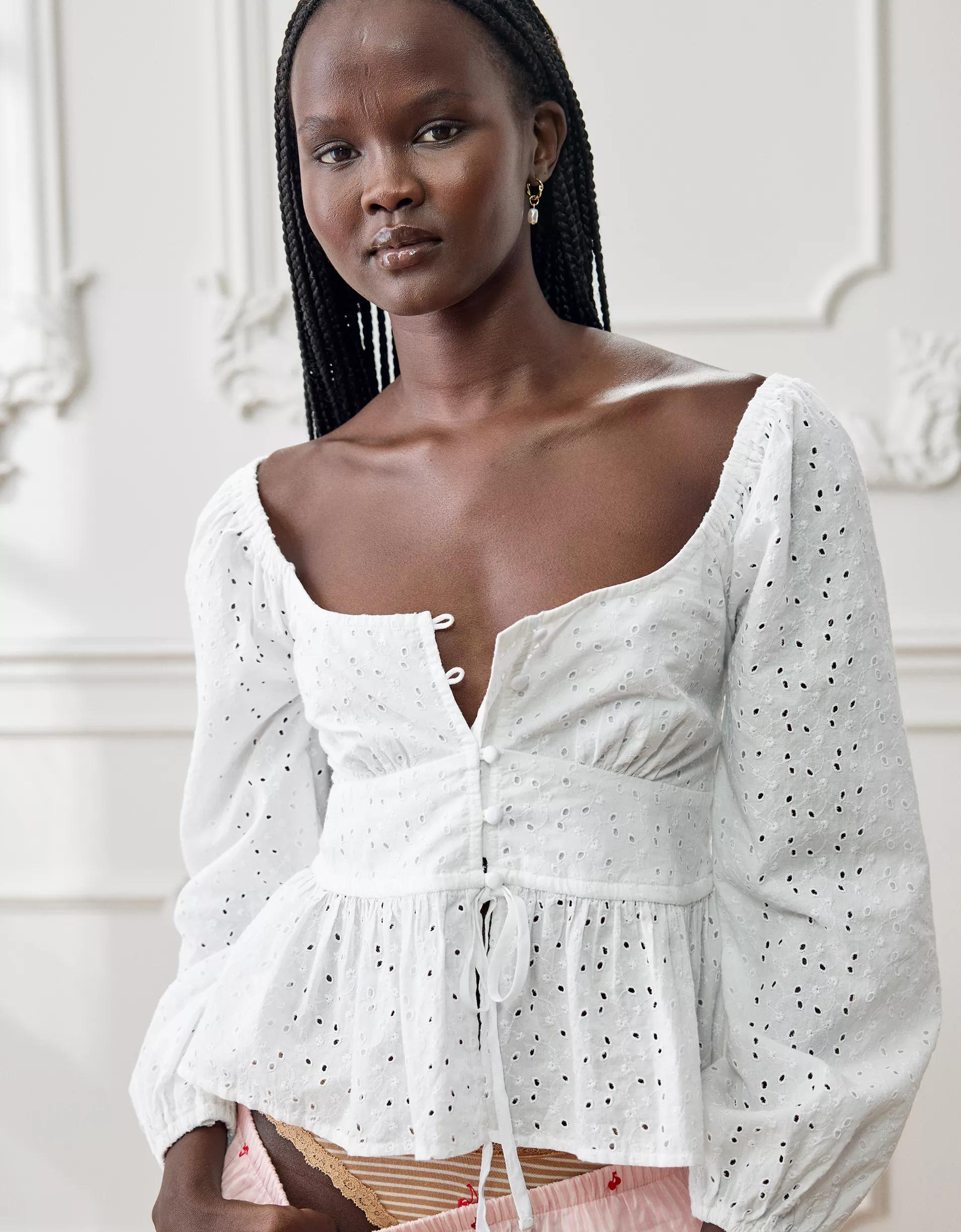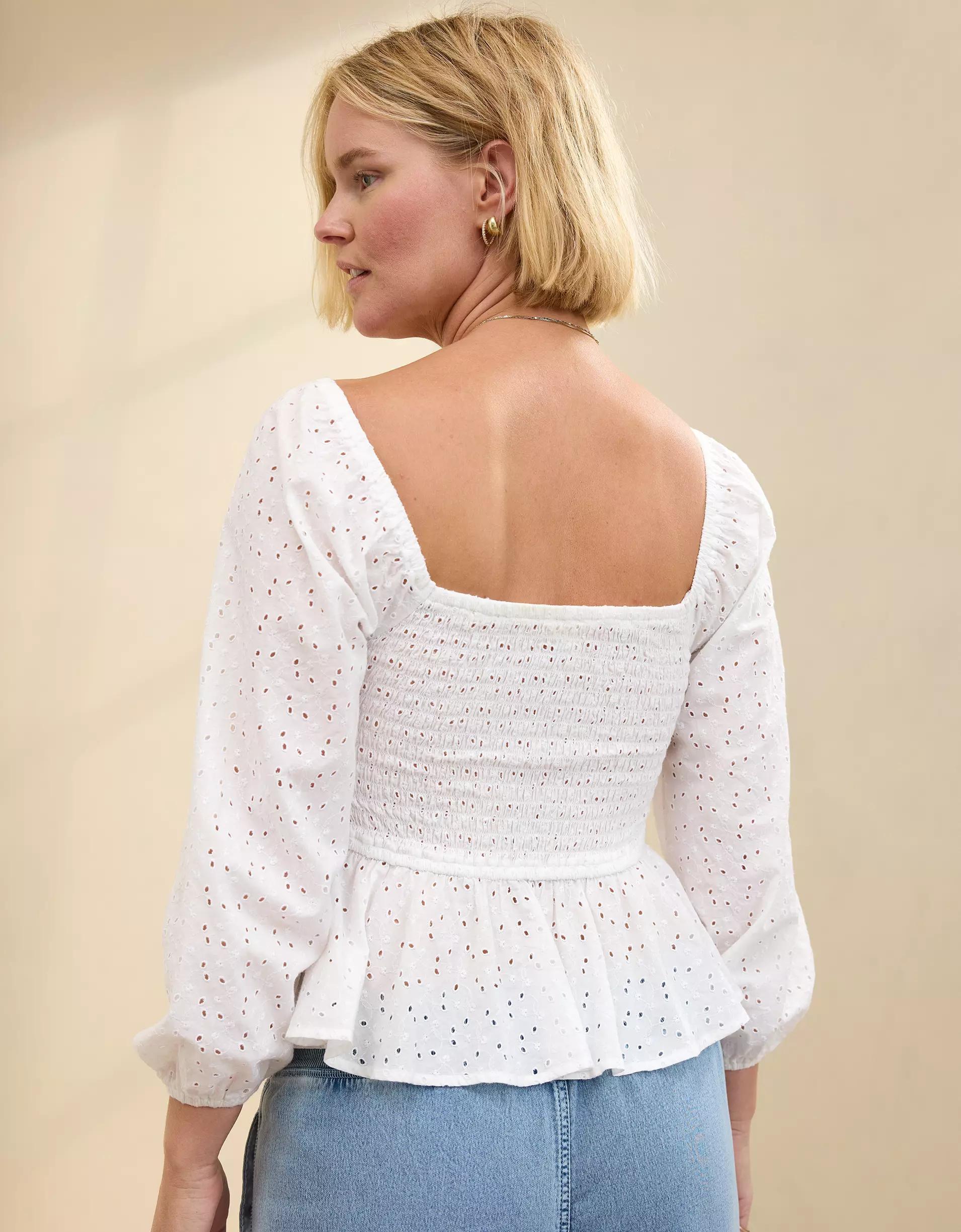 Aerie Long Sleeve Crochet Button Down Shirt Women's