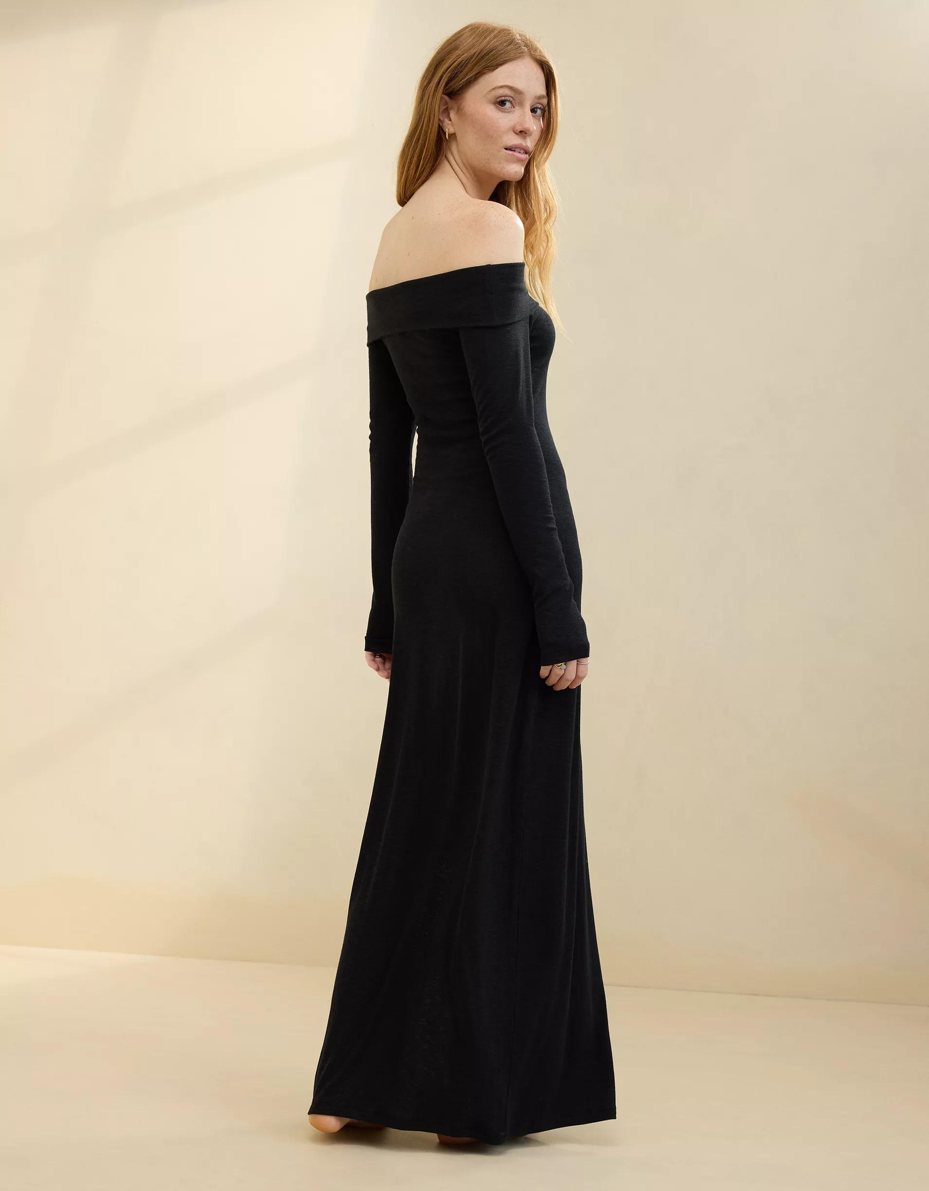 Elevated Everyday Off Shoulder Maxi Dress Black