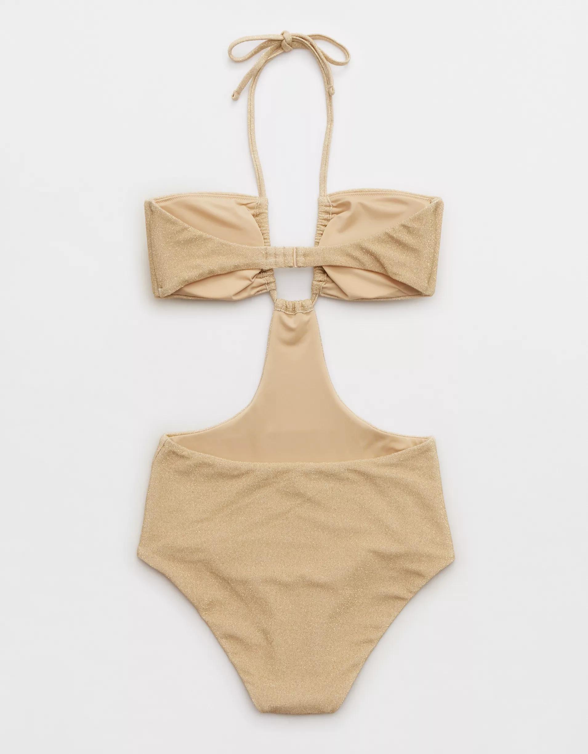 Aerie Sparkle Halter Cutout One Piece Swimsuit