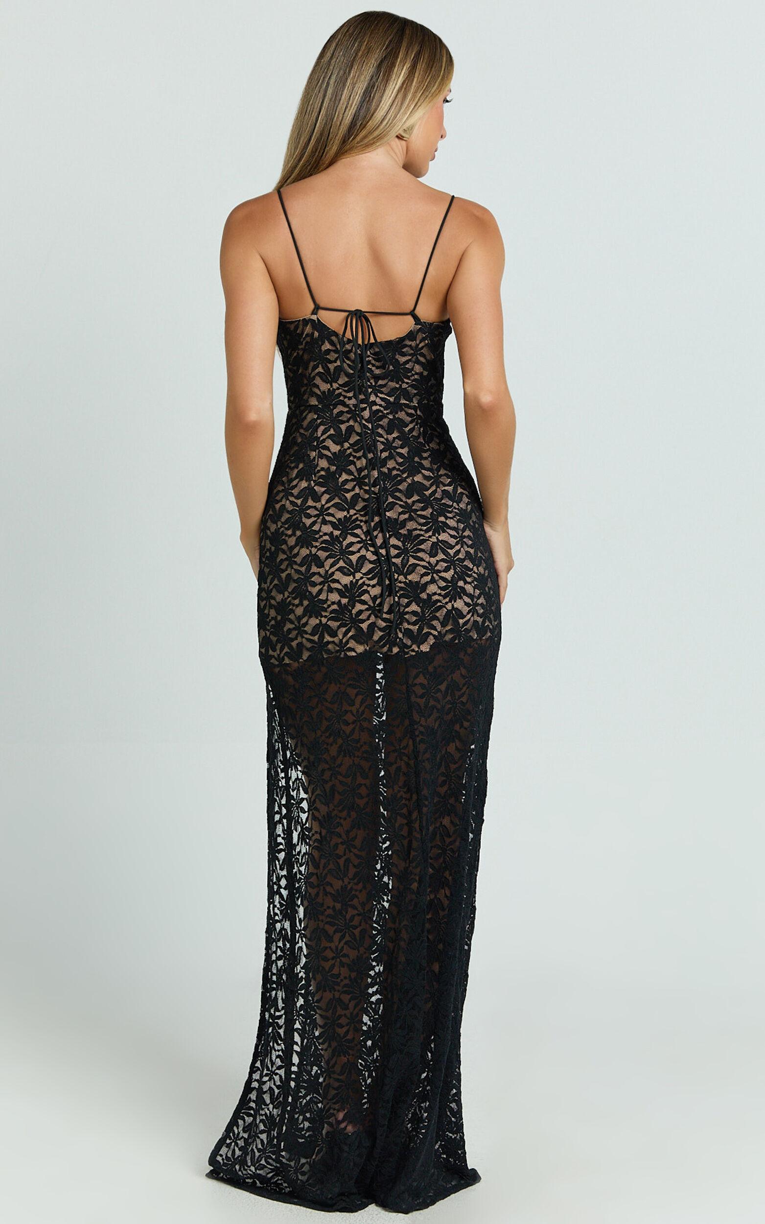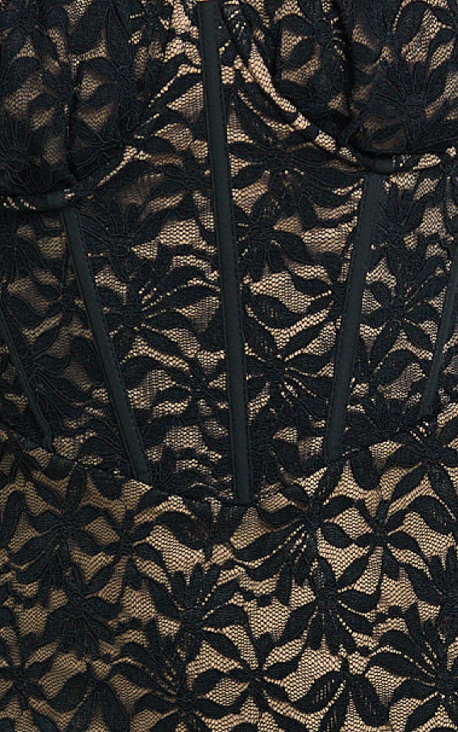 Discover the perfect look in our Aerilyn Maxi Dress - a masterpiece that embodies sophistication and empowerment, crafted for the fearless woman ready to own any room she steps into. This Lace Corset Front Fit And Flare Dress in Black is not just a piece of clothing; it's a statement of elegance and strength, designed to celebrate you in every form.Product Details:Zips detailInner liningLeg splitFitted dressesLace fabricSweetheart necklineParty Night wearMaxi lengthSleevelessPolyester materialSize and FitSize S / 8 length: 138cm / 54.33inMaterial and CareMain Fabric: 95% Polyester, 5% Spandex Lining: 92% Polyester, 8% SpandexLow Stretch