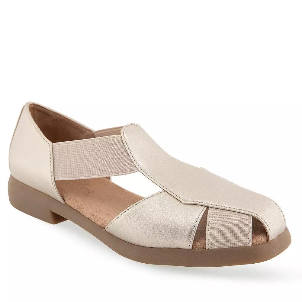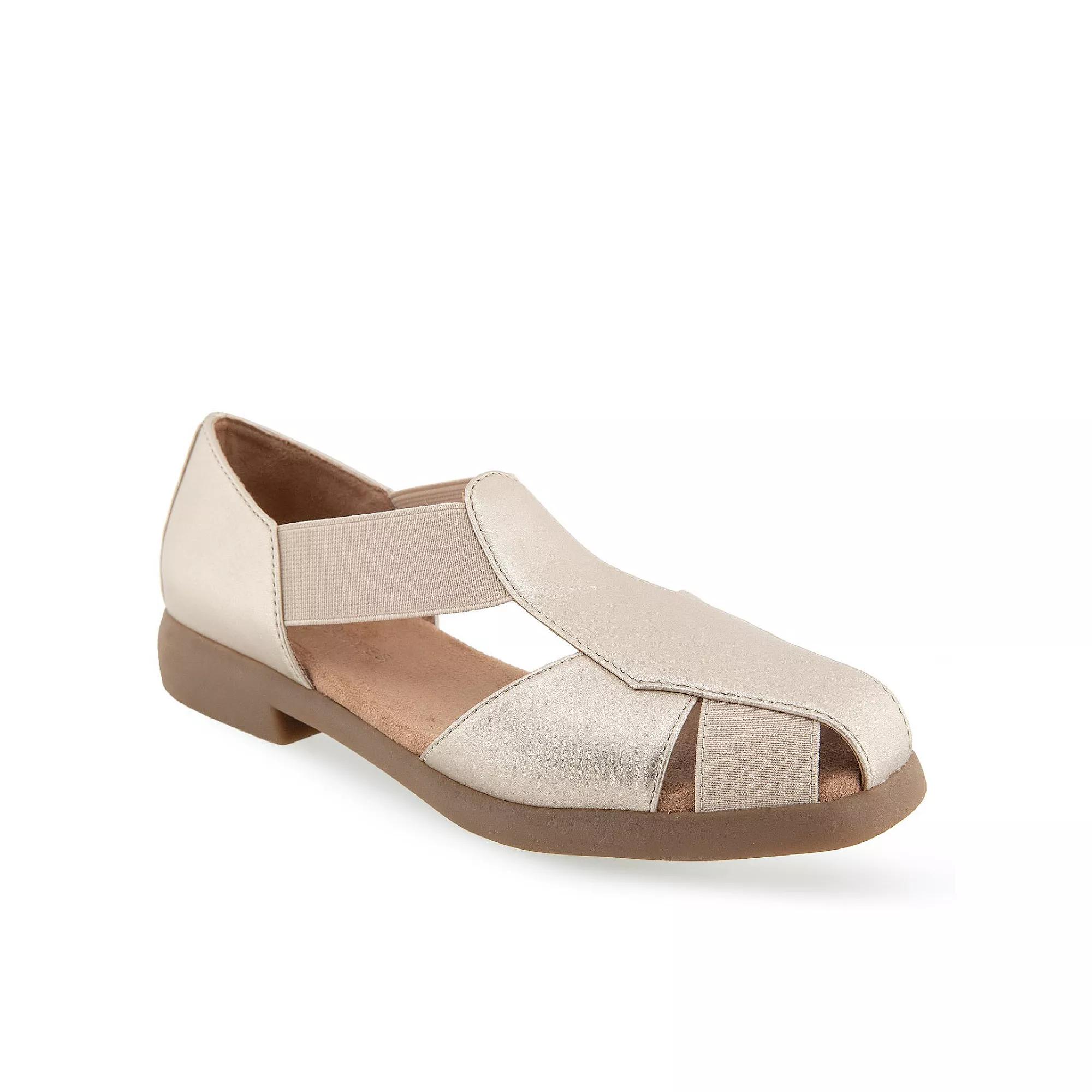 Update your wardrobe with these Aerosoles 4Give womens casual sandals. Click this FOOTWEAR GUIDE to find the perfect fit and more! Update your wardrobe with these Aerosoles 4Give womens casual sandals. Click this FOOTWEAR GUIDE to find the perfect fit and more! FEATURES Stretchy elastic band design Foam footbed for all day comfort Slip-on for easy on and offDETAILS Synthetic upper and lining Rubber midsole and outsole Almond toe Slip-on Foam footbed 1-in. heel Spot clean Imported Size: 9. Color: Soft Gold Pu. Gender: female. Age Group: adult.