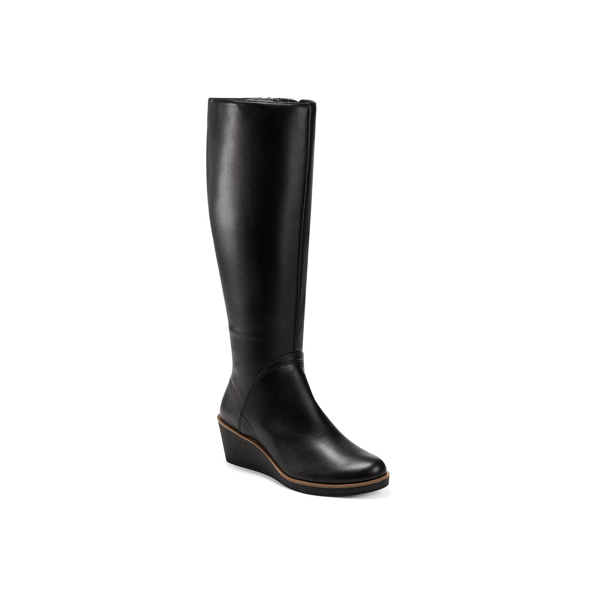These Aerosoles Binocular women's wedge knee-high boots are a comfortable alternative to traditional heeled boots. And they're stylish, too. Click this FOOTWEAR GUIDE to find the perfect fit and more! - https://www.kohls.com/feature/shoesizeguide.jsp. BOOT FEATURES: Wedge heel for comfort, Stretchy, form-fitting material for style. BOOT CONSTRUCTION: Synthetic upper, Microfiber lining, Rubber outsole. BOOT DETAILS: Round toe, Zipper closure, 2.25-in. heel, 0.5-in. platform, 16.25-in. shaft, 16-in. circumference. Size: 7. Color: Black. Gender: female. Age Group: adult. Material: FAUX LEATHER.