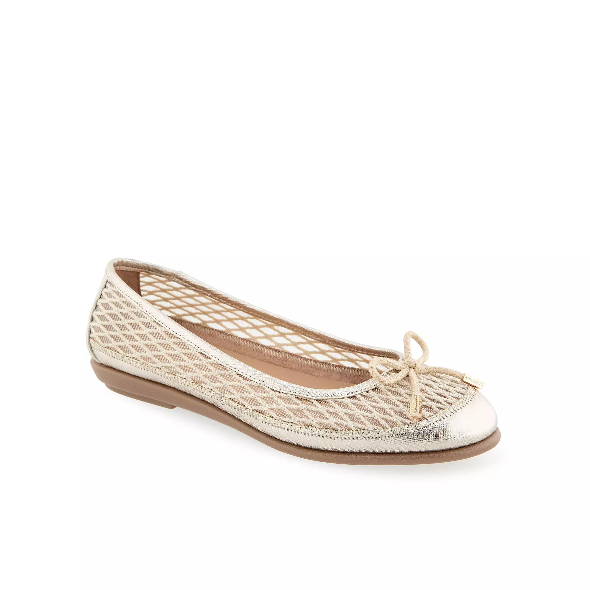 The Aerosoles Bria Women's Mesh Ballet Flats combine a sleek, breathable design with unmatched comfort, making them perfect for all-day wear. Their versatile look effortlessly elevates any outfit, ensuring you always step out feeling confident and chic. Click this FOOTWEAR GUIDE to find the perfect fit and more! - https://www.kohls.com/feature/shoesizeguide.jsp. FEATURES: Aerosoles Women's BRIA Mesh Ballet Flat combines comfort and elegance, Stitch 'N Turn provides a broken-in feel, and the bow detail on breathable mesh makes it perfect with skirts for a polished look, The Diamond Flex Outsole offers grip, while the Ortholite Foam Insole cushions each step. DETAILS: Mesh fabric upper, Synthetic lining, Thermoplastic rubber outsole, Round toe, Slip-on, Foam footbed, Spot clean, Imported. Size: 9. Color: Gold. Gender: female. Age Group: adult. Material: OTHER MATERIAL.