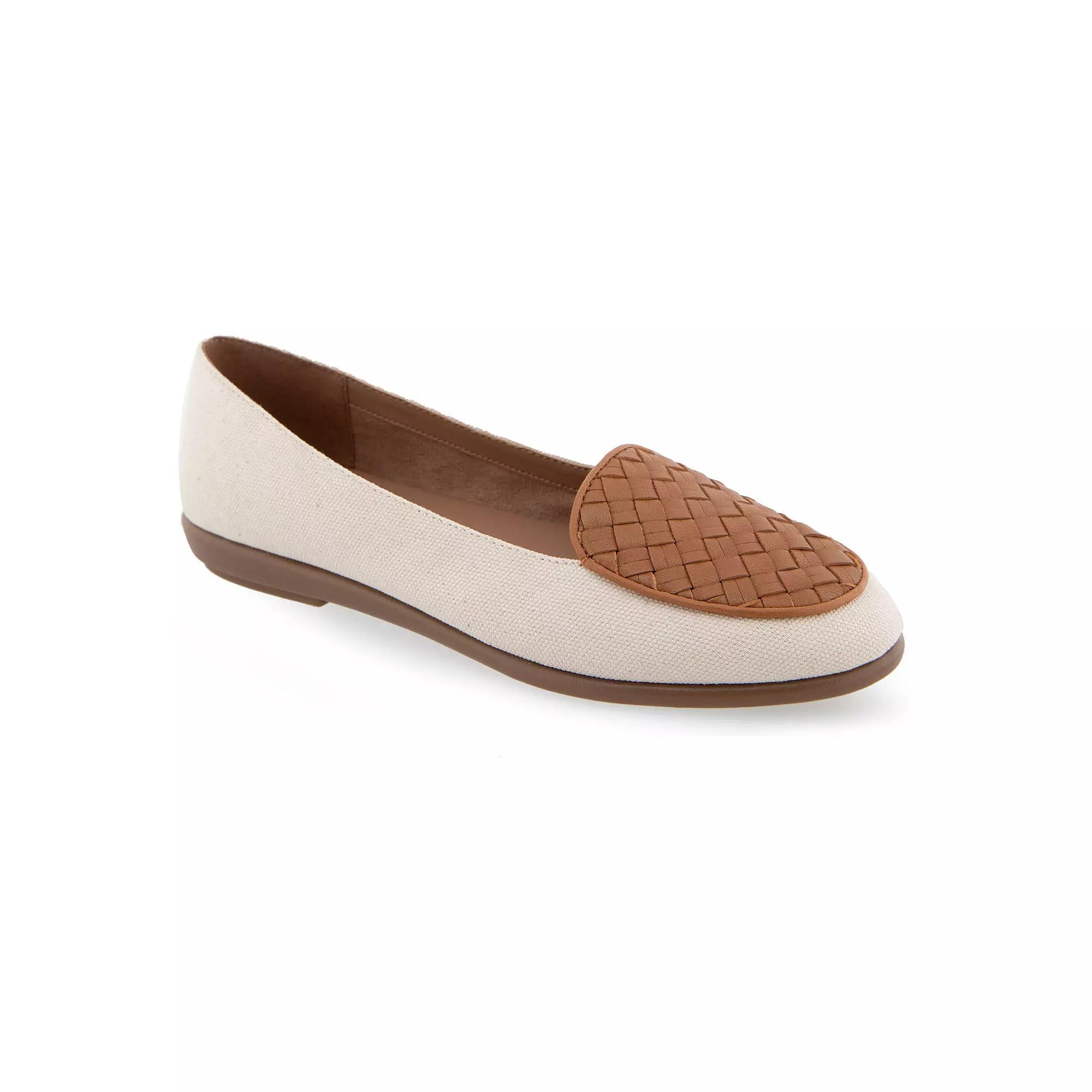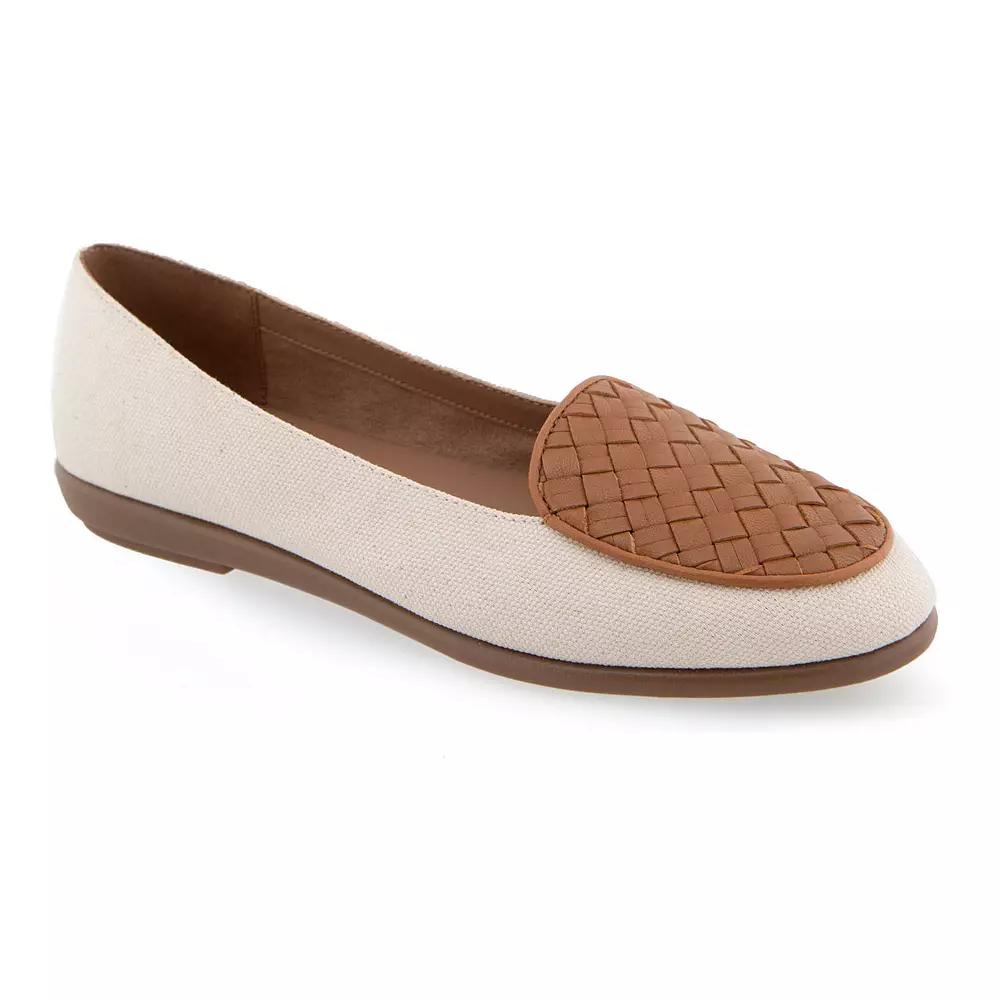 Step into comfort and style with these Aerosoles Brielle women's loafers. Click this FOOTWEAR GUIDE to find the perfect fit and more! - https://www.kohls.com/feature/shoesizeguide.jsp. FEATURES: Woven detail upper, Foam footbed for all day comfort, Durable rubber outsole, Slip-on for easy on and off. DETAILS: Canvas fabric upper, Synthetic lining and midsole, TPR outsole, Round toe, Slip-on, Foam footbed, 0.5-in. heel, Spot clean, Imported. Size: 7.5 Wide. Color: Natural Light Blue. Gender: female. Age Group: adult.